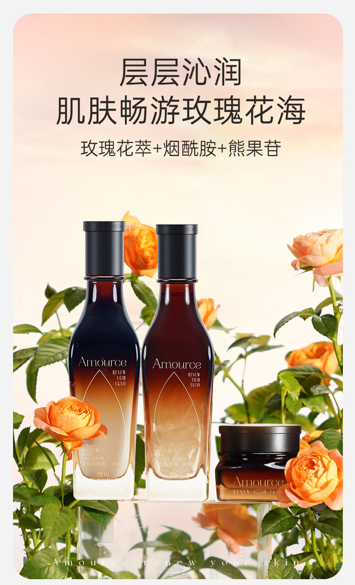 艾玛丝玫瑰绽颜套装 (沁白水120ml+玫瑰乳液120ml+玫瑰霜50g+玫瑰精油10ml)