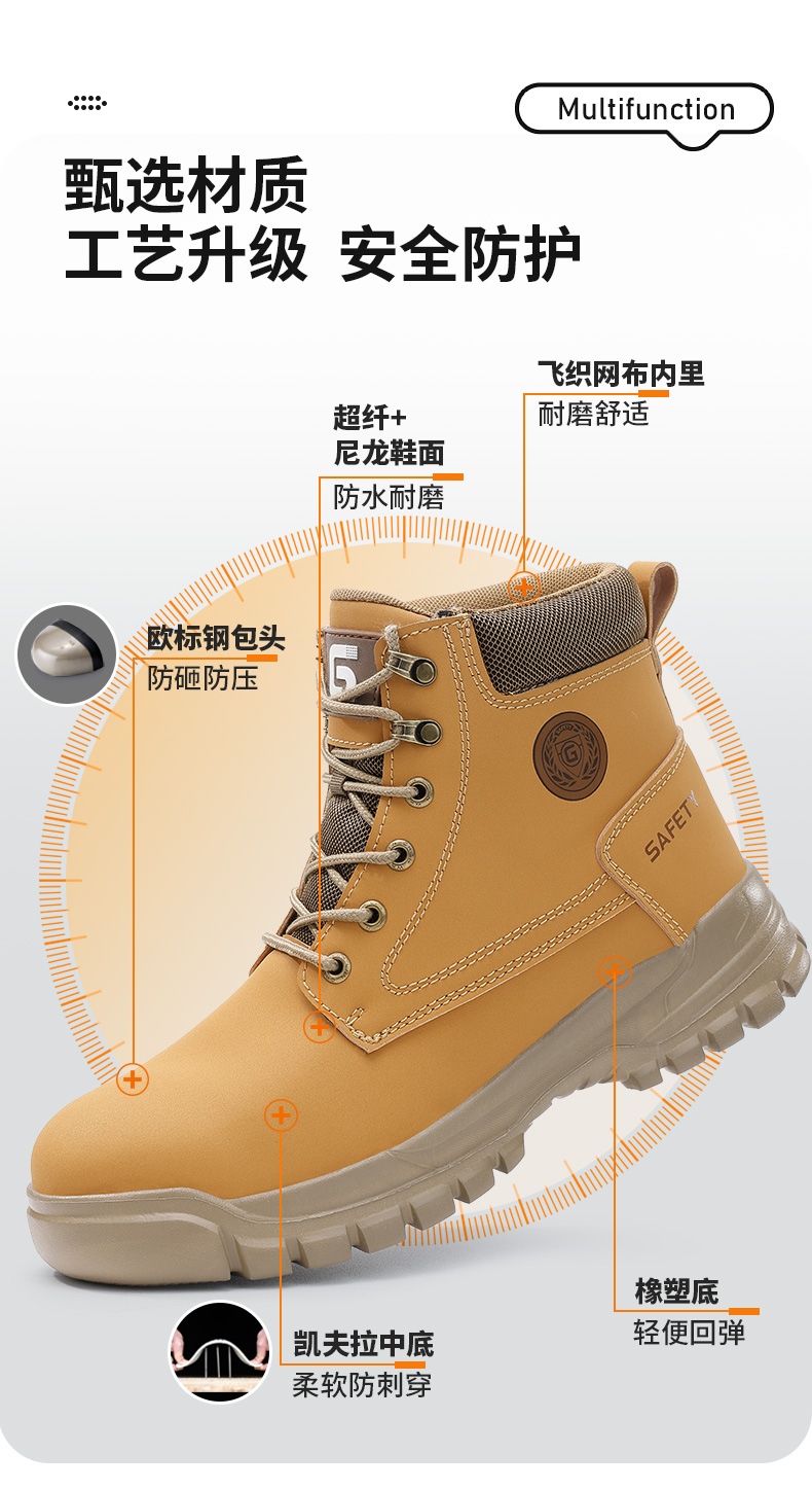 劳保鞋男防砸防刺高帮靴子橡塑底四季款钢包头轻巧