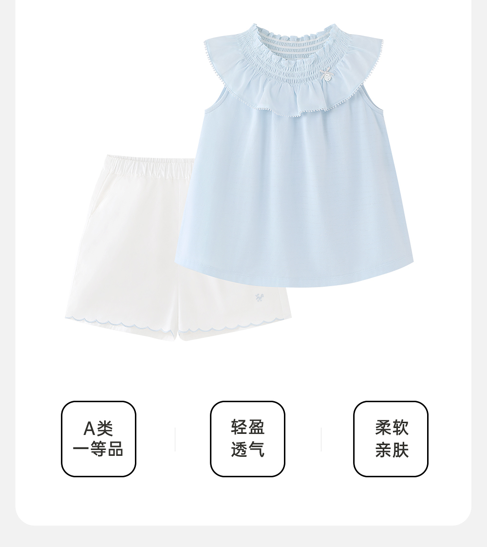 【商场同款】英氏儿童套装夏季透气休闲衣裤套女童背心中裤套装
