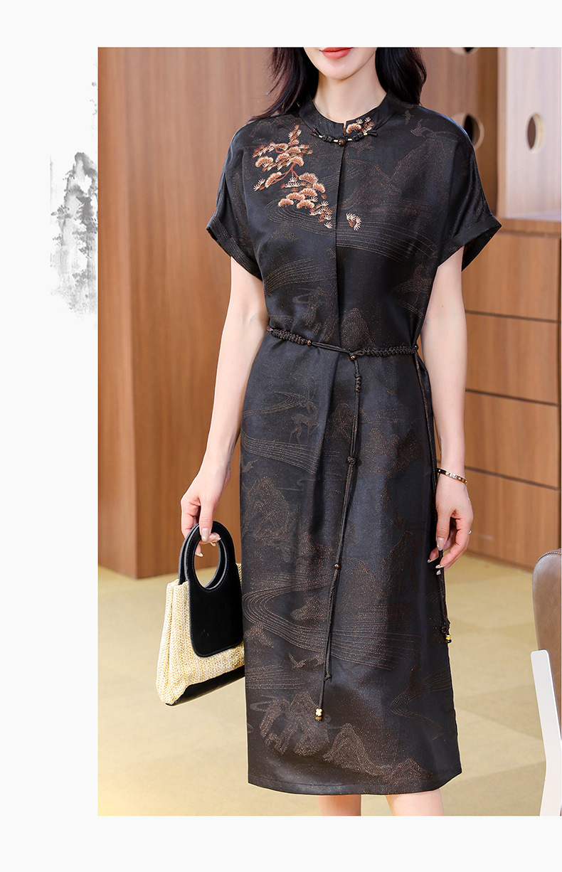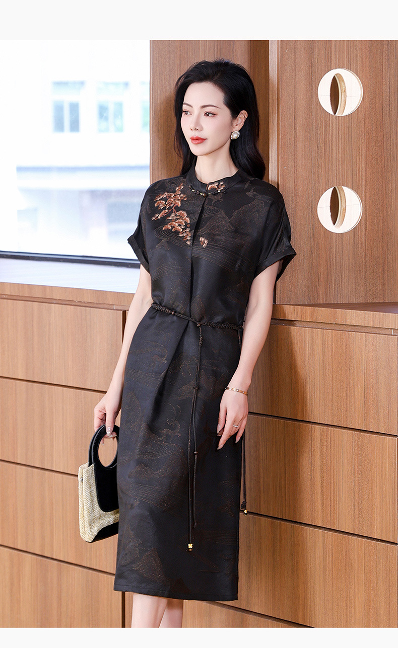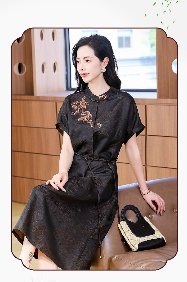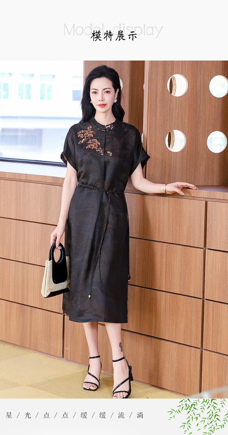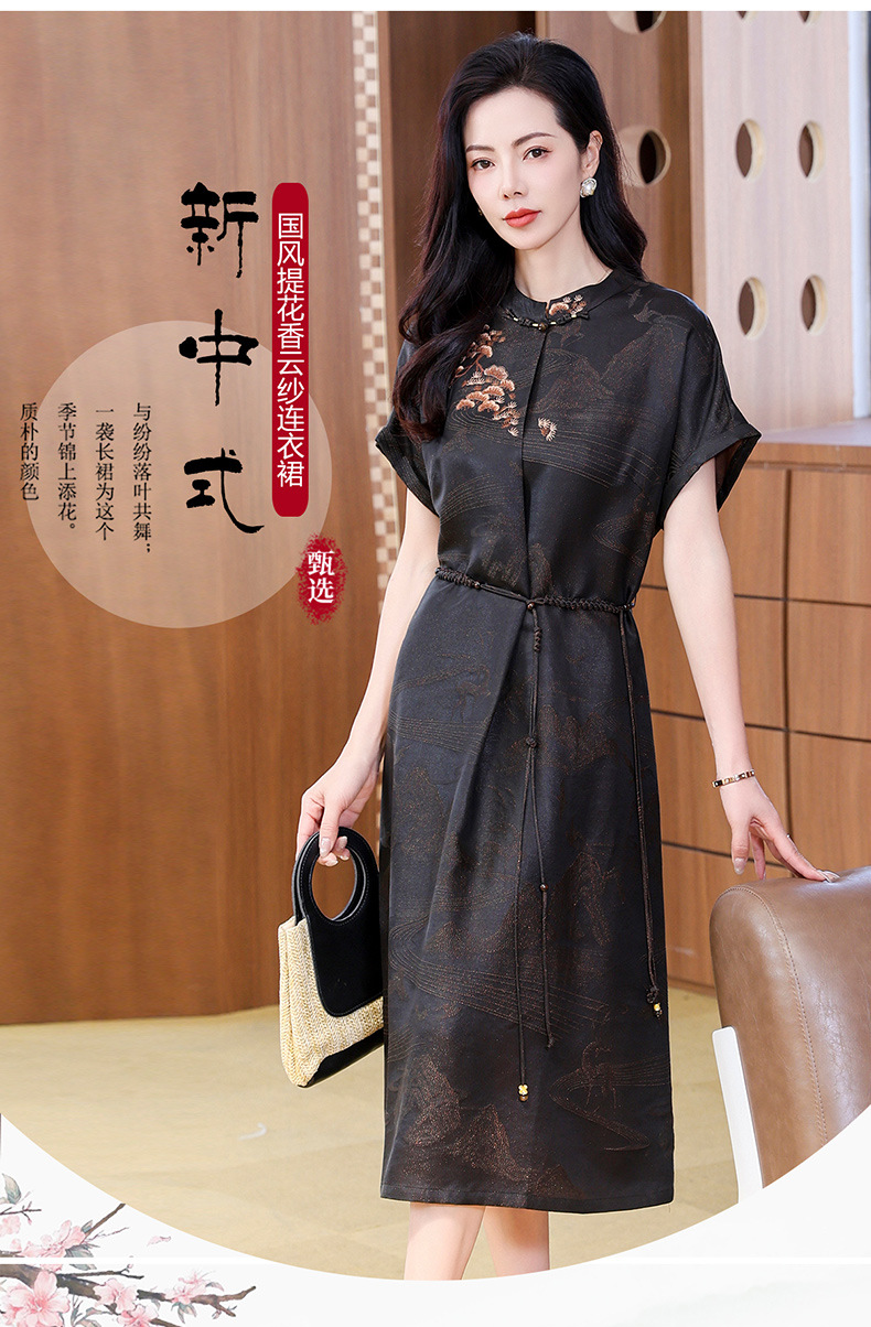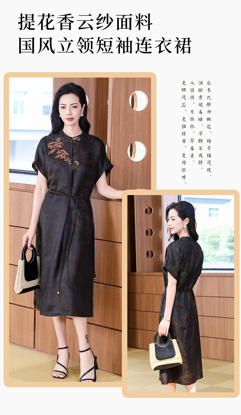 丁摩提花香云纱连衣裙新款立领刺绣新中式气质真丝桑蚕丝裙AL221932