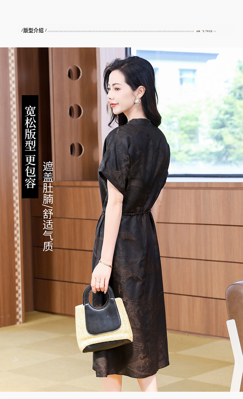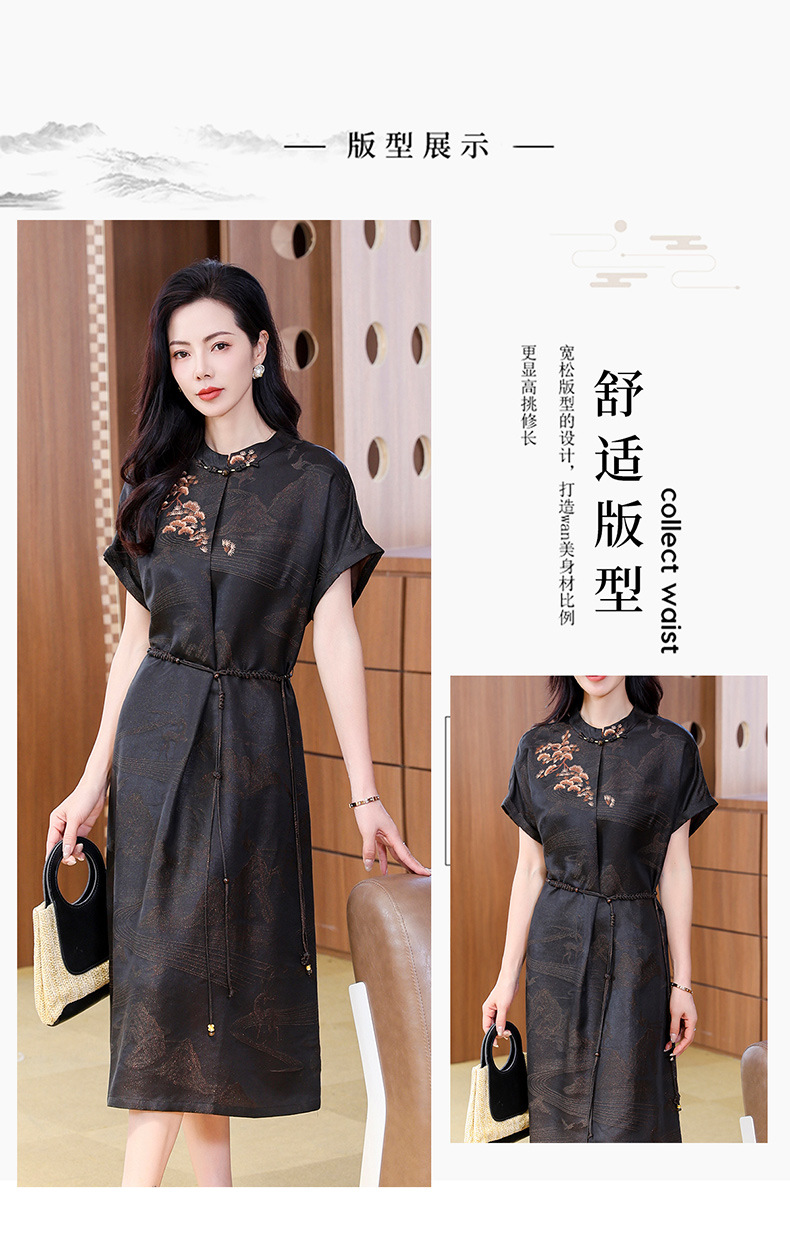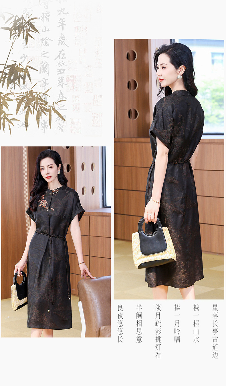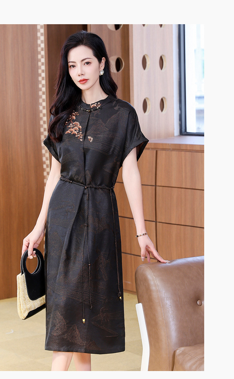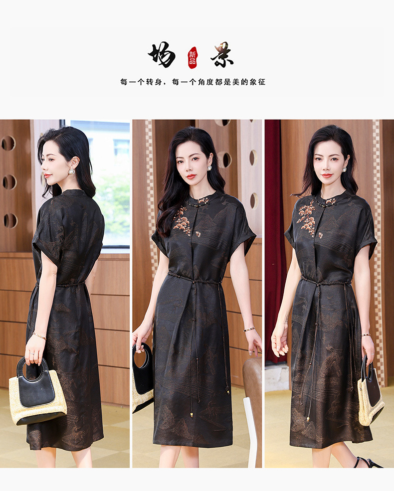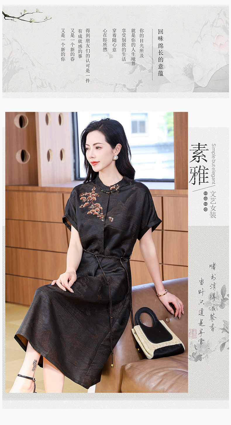 丁摩提花香云纱连衣裙新款立领刺绣新中式气质真丝桑蚕丝裙AL221932