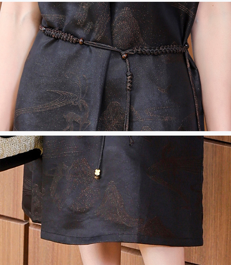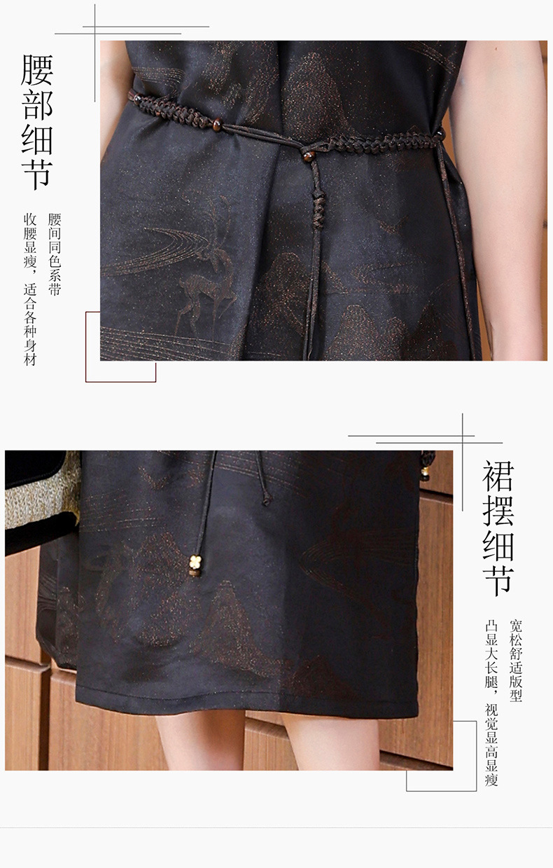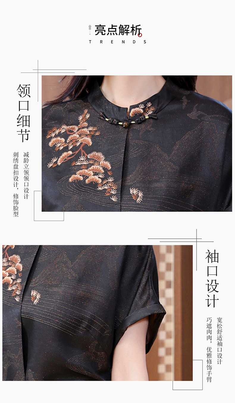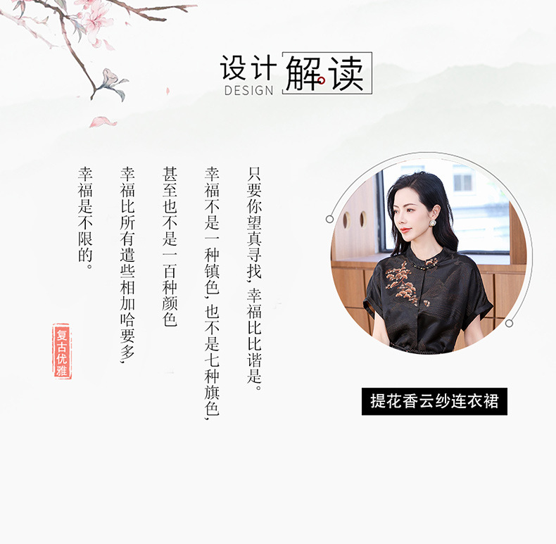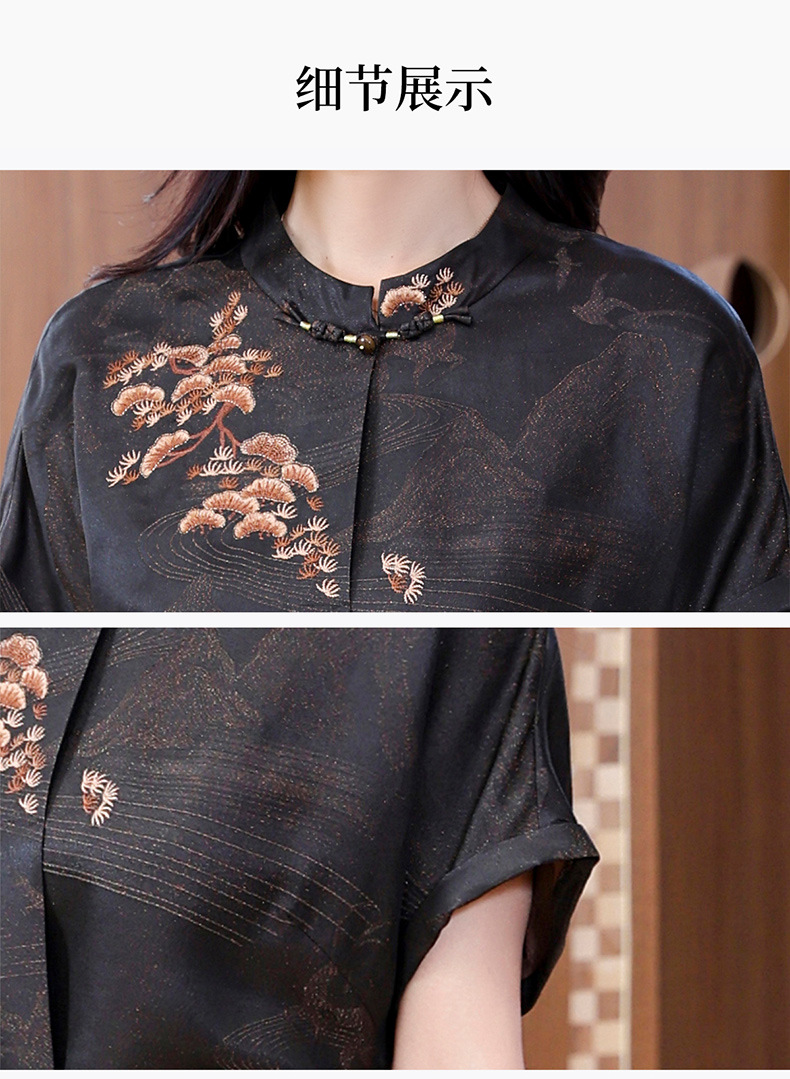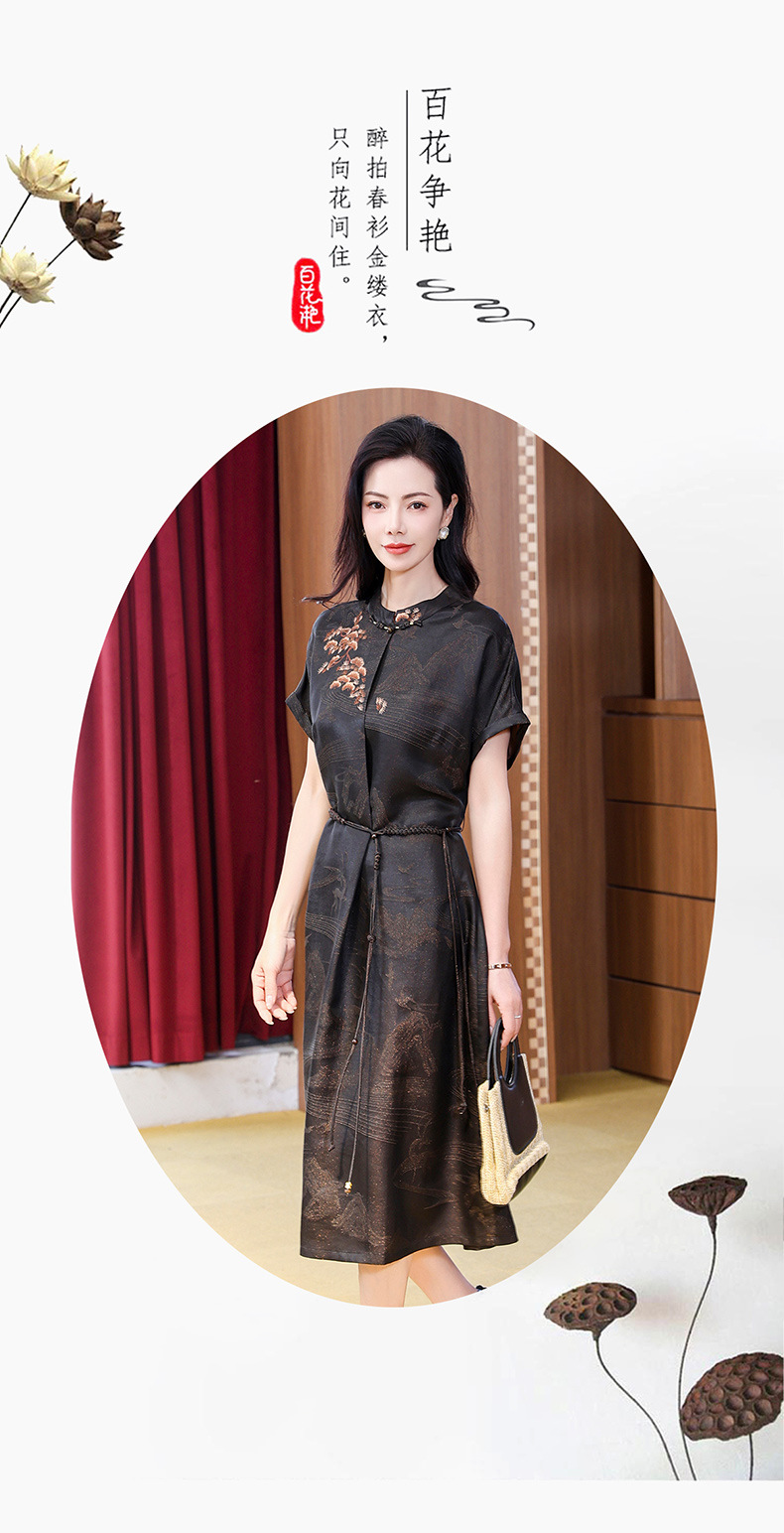 丁摩提花香云纱连衣裙新款立领刺绣新中式气质真丝桑蚕丝裙AL221932