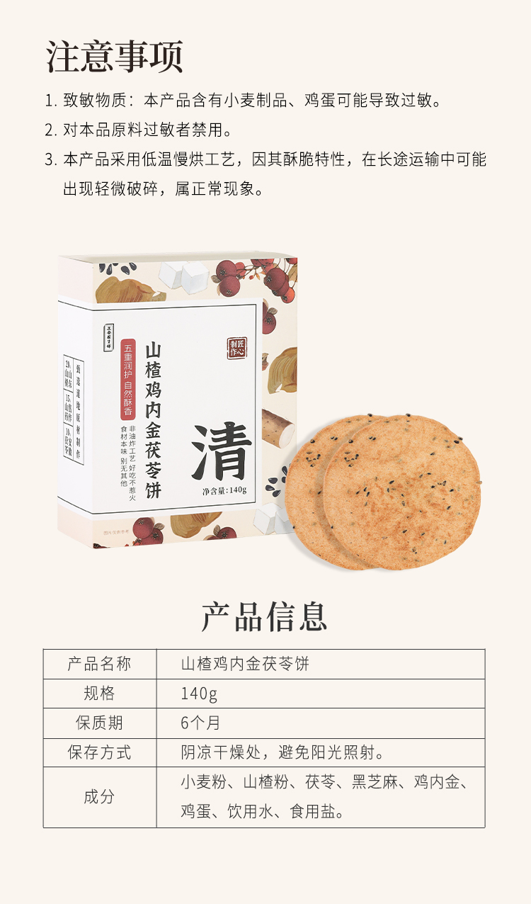 【预售】正安 山楂鸡内金茯苓饼 五重润护自然酥香 助力好吸收干饭倍儿棒 健康零食 140g/盒