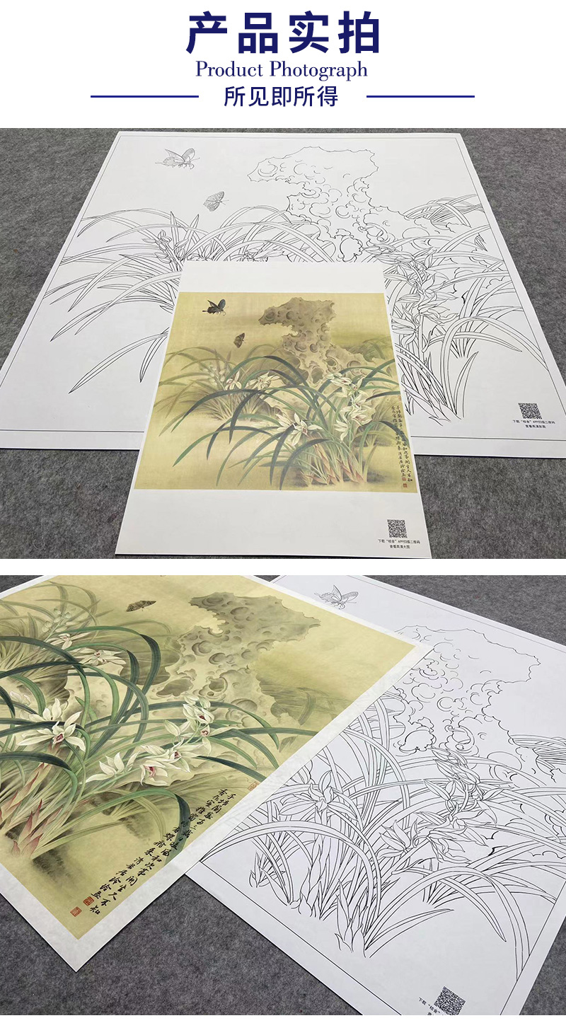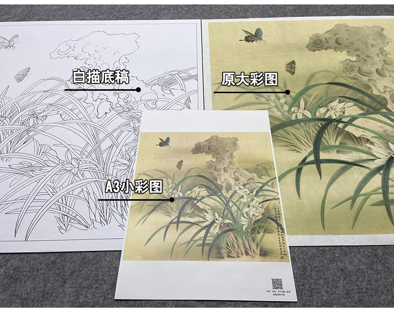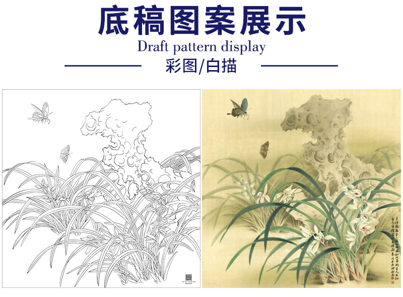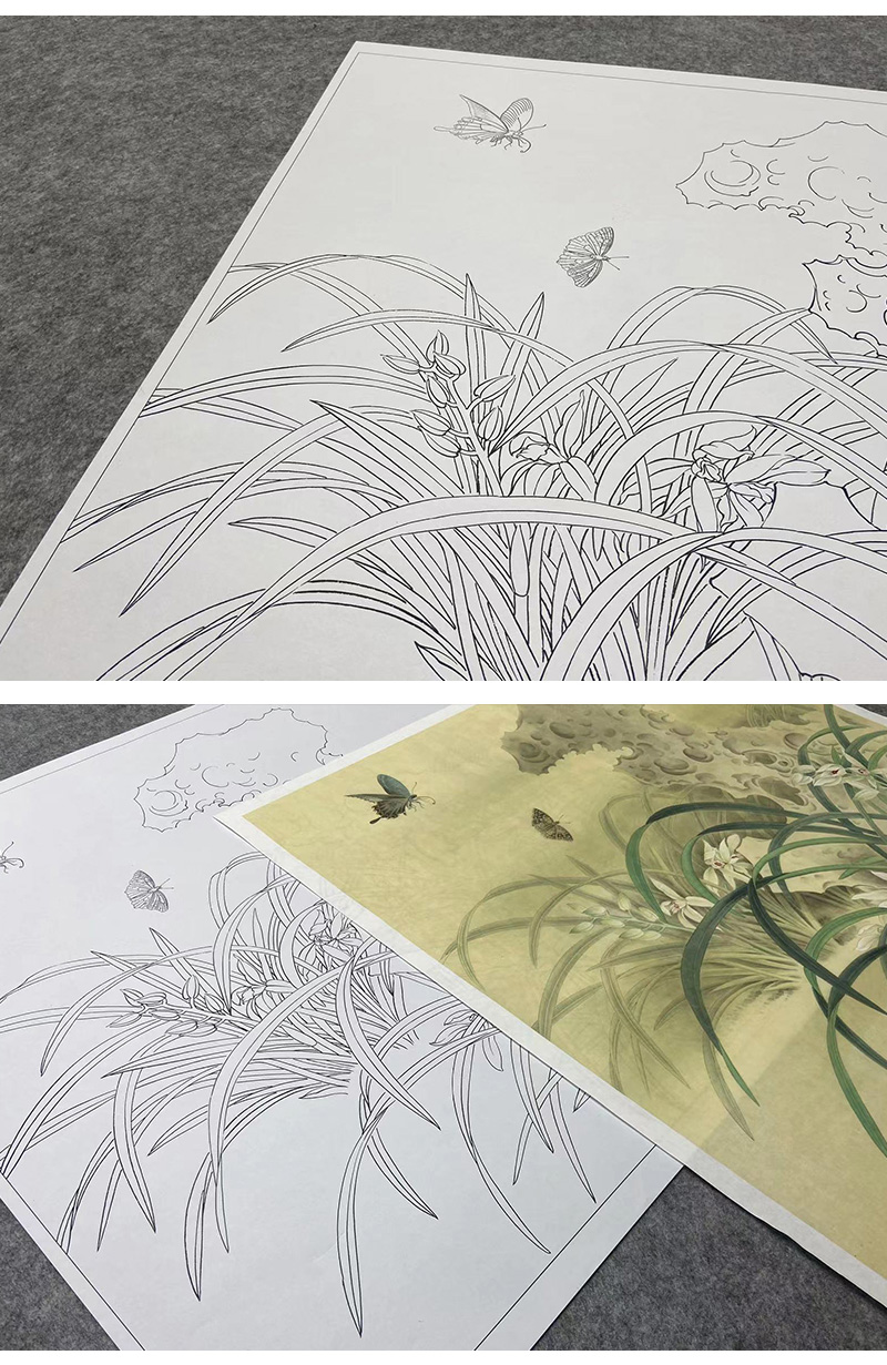 【大彩图】郑玲玲工笔画白描底稿小品《风吹香蕊蝶飞来》蝴蝶兰花临摹勾线花鸟线稿ZLA1