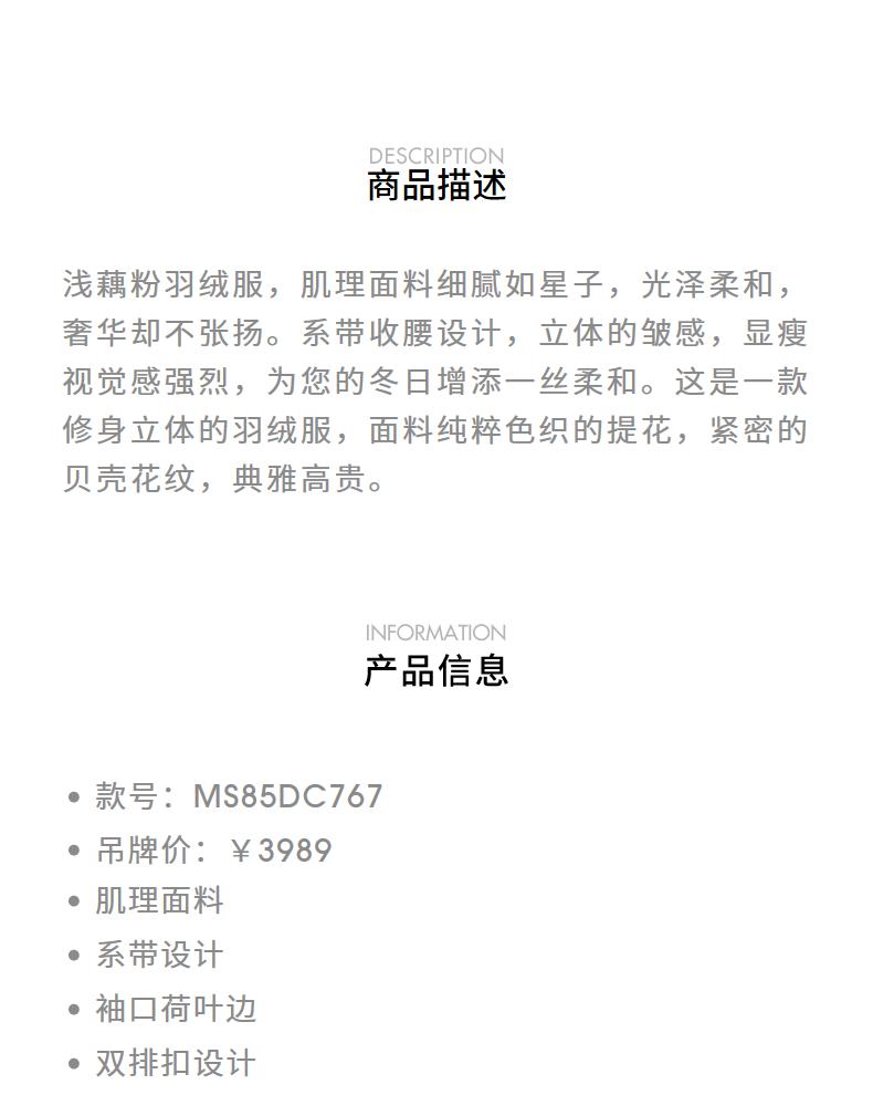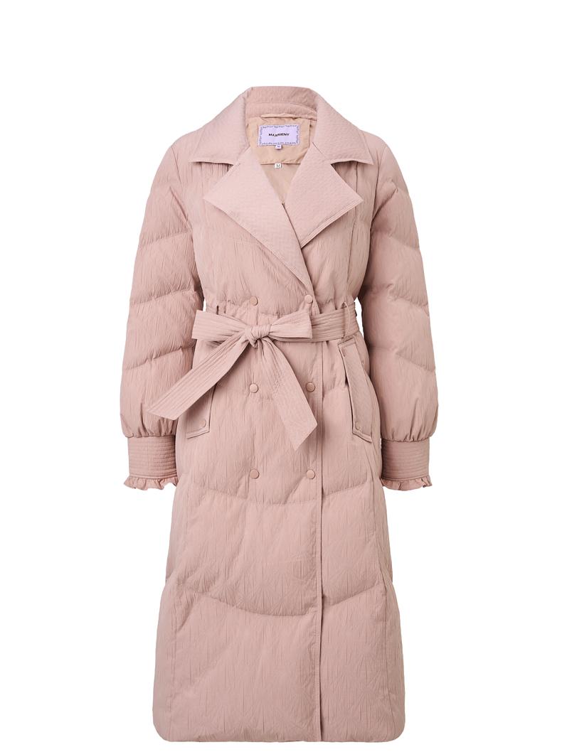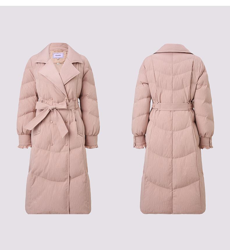 MAXRIENY精致优雅感系带收腰羽绒服女24冬肌理感保暖外套中长款(货号:MS85DC767)