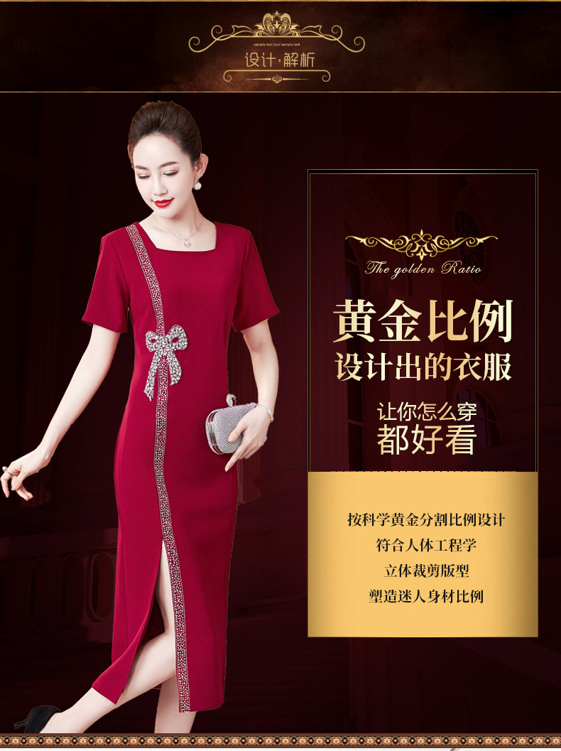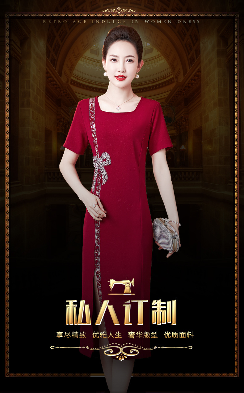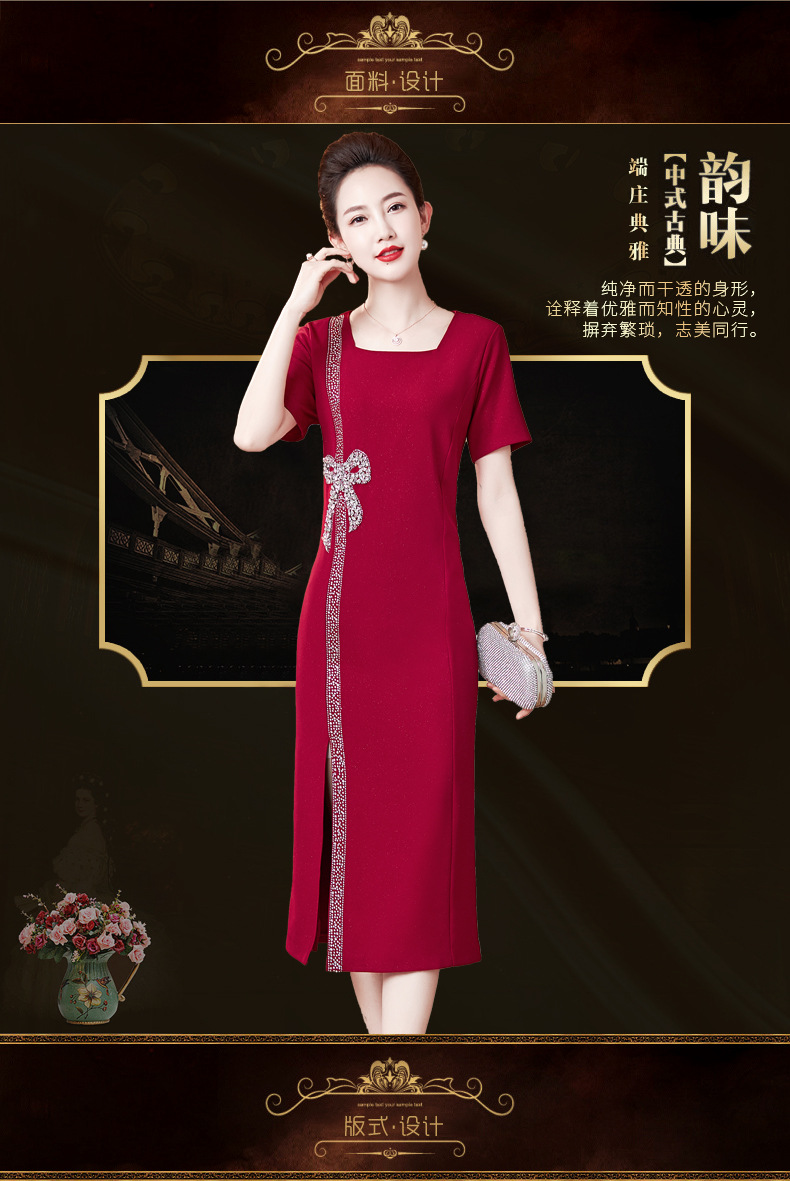 LC-2240新款连衣裙旗袍改良版喜婆婆婚宴礼服中长款连衣裙夏