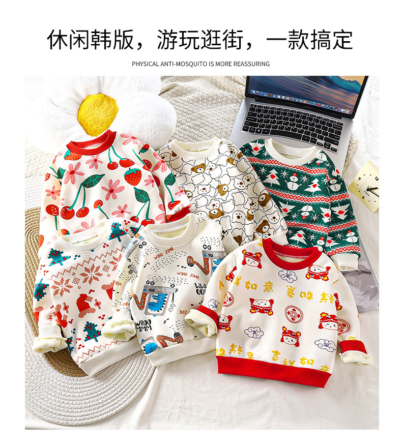 【休闲韩版,游玩逛街,一款搞定】儿童毛衣秋冬新款 男童宝宝加绒加厚 女童外套长袖卫衣童装-QQ