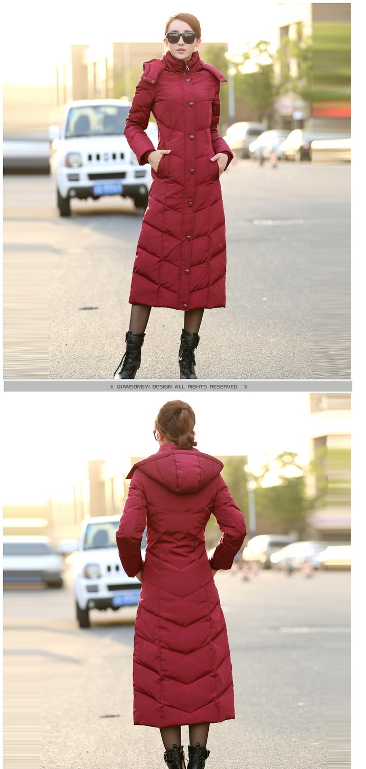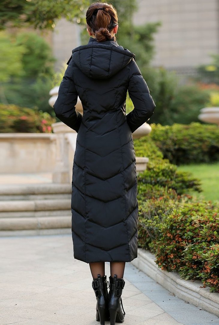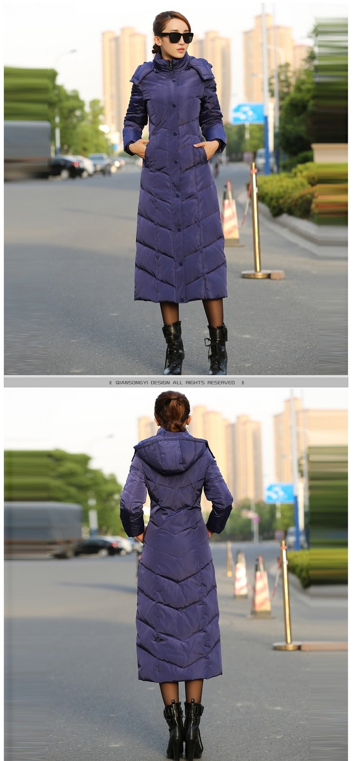 YR-MSLP211230新款时尚优雅气质修身过膝长款白鸭绒羽绒服外套