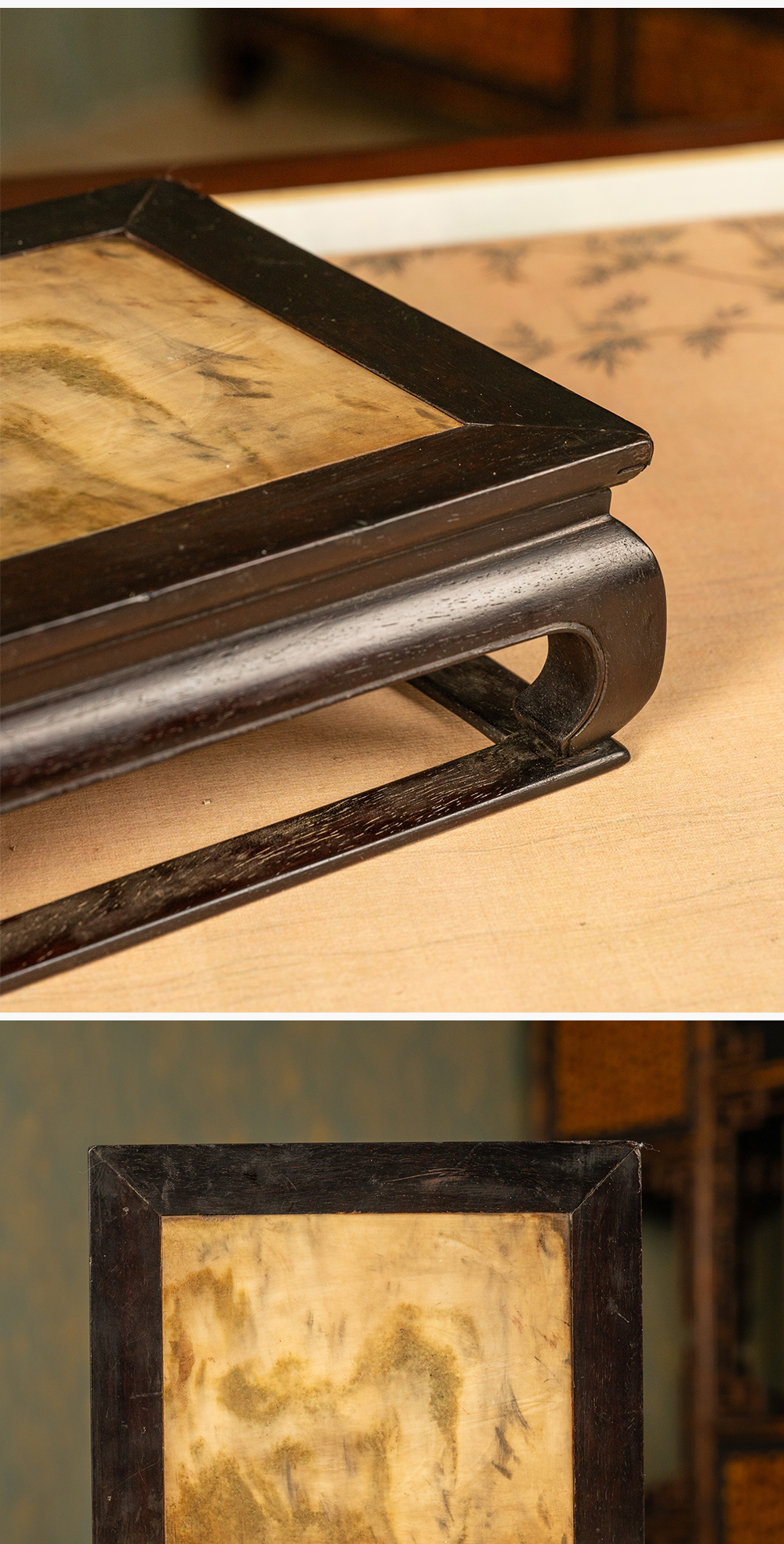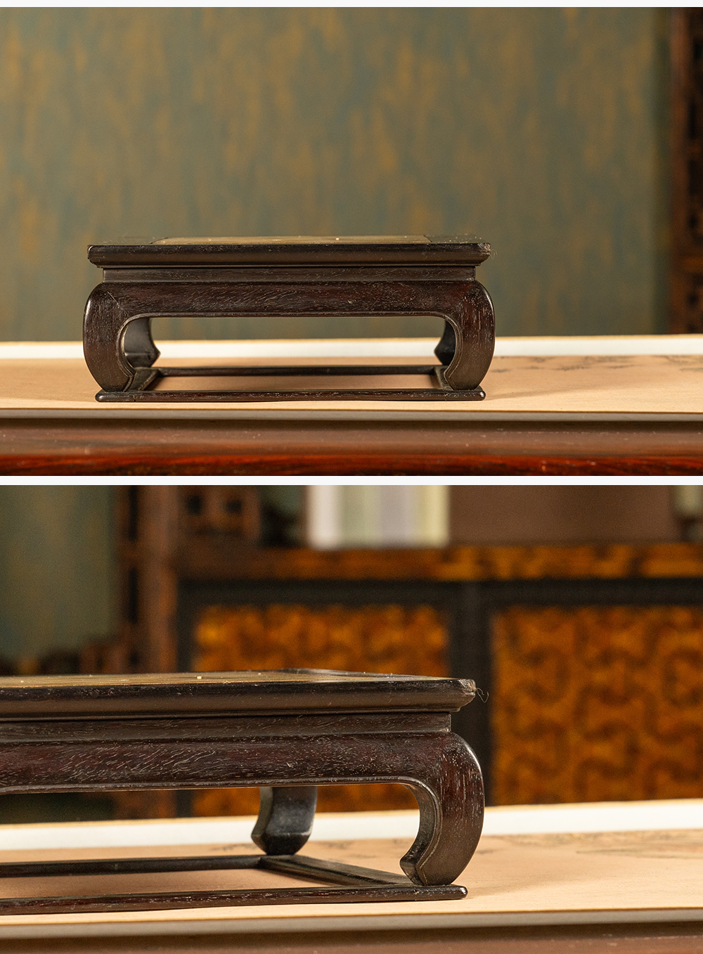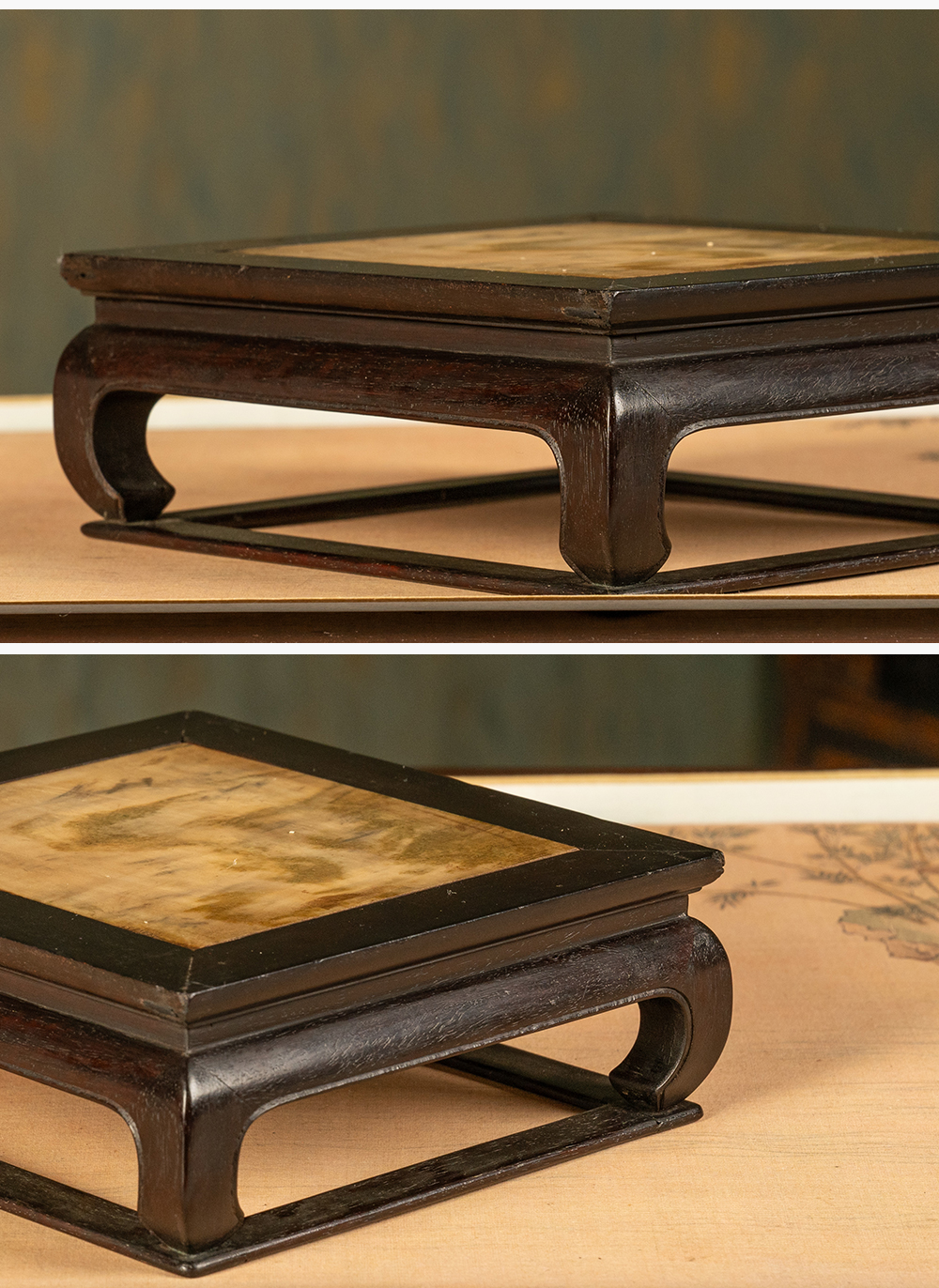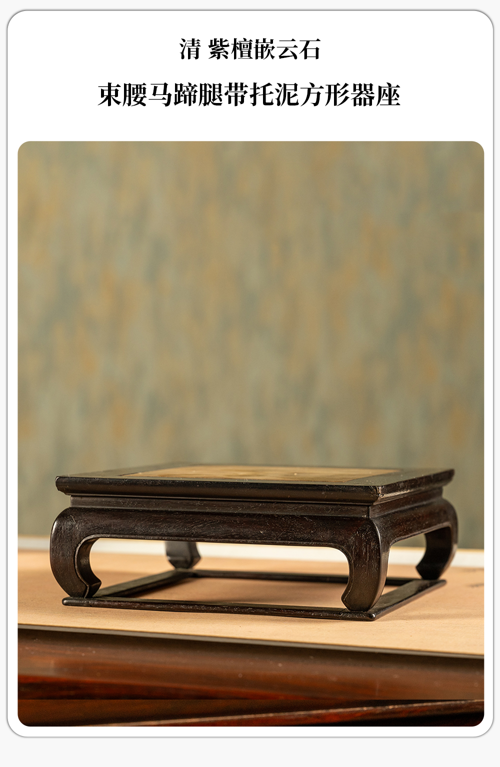 清 紫檀嵌云石束腰马蹄腿带托泥方形器座