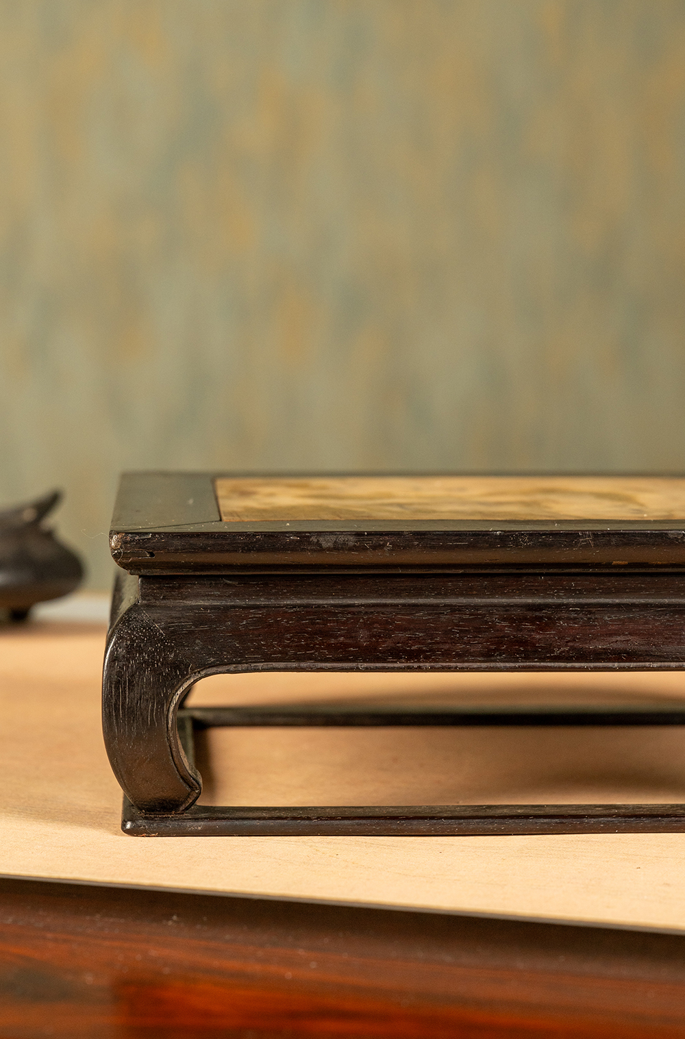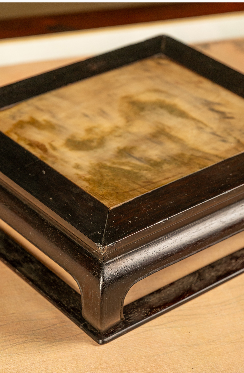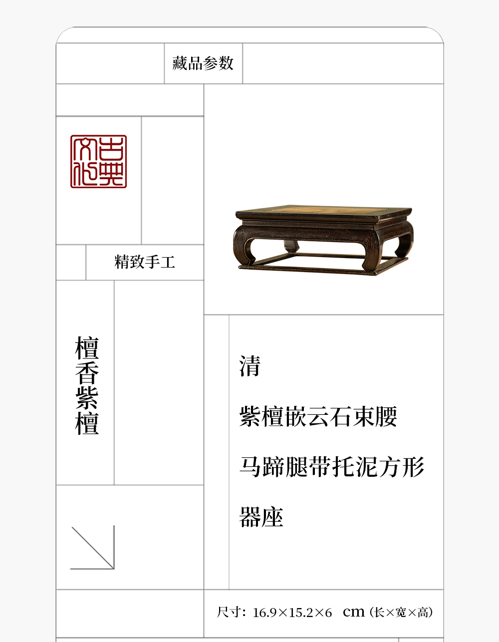 清 紫檀嵌云石束腰马蹄腿带托泥方形器座