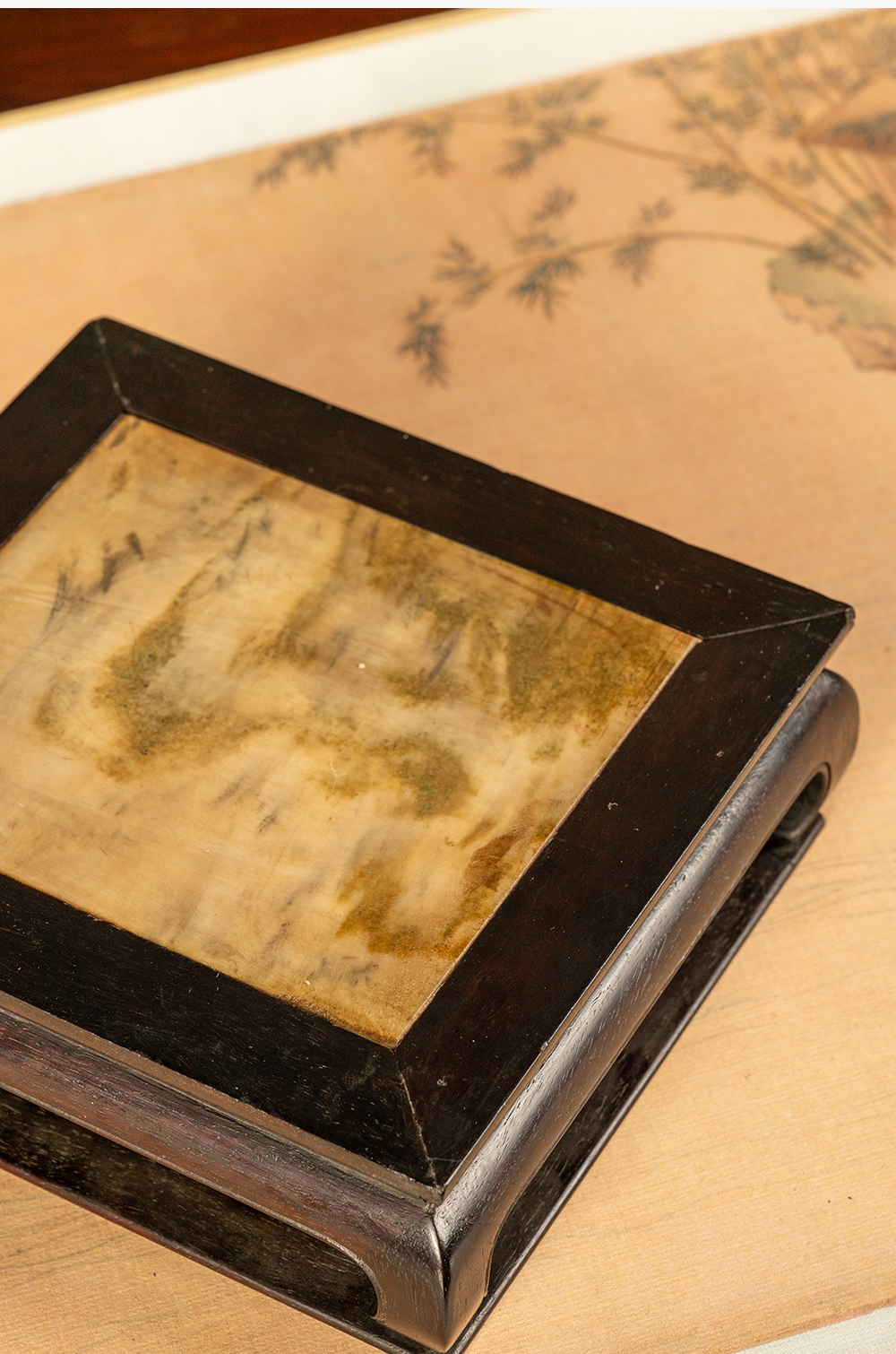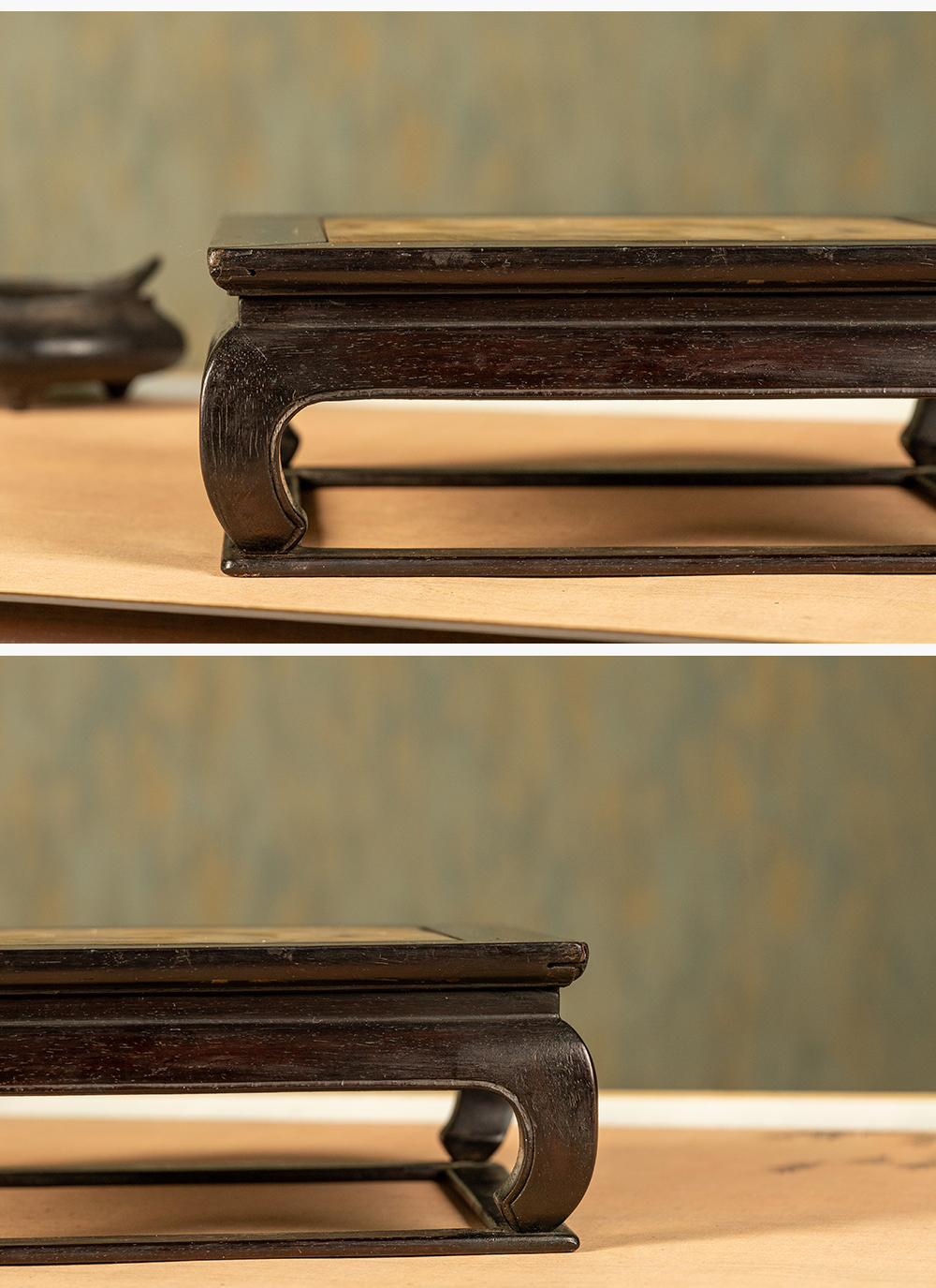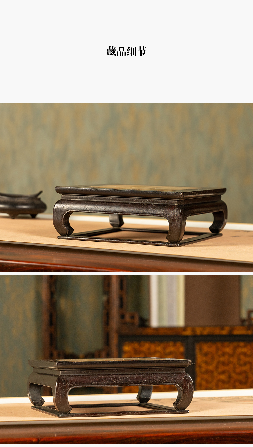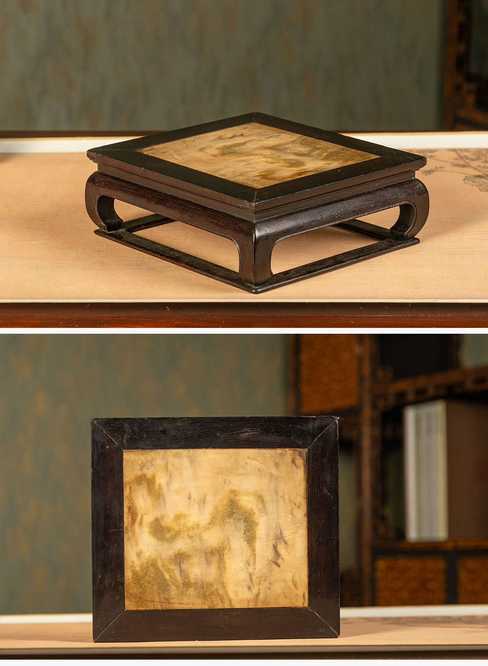 清 紫檀嵌云石束腰马蹄腿带托泥方形器座