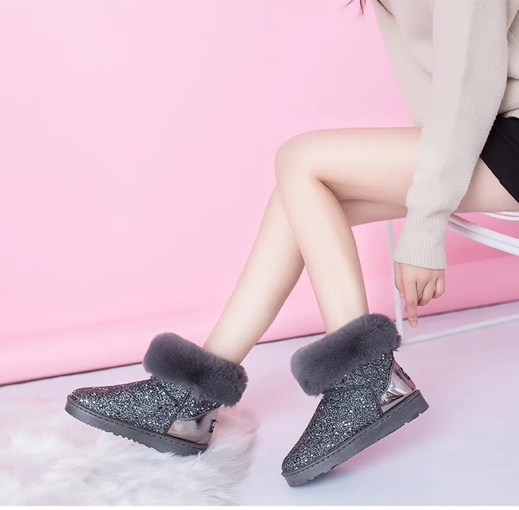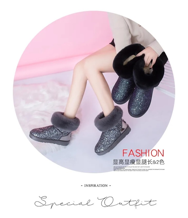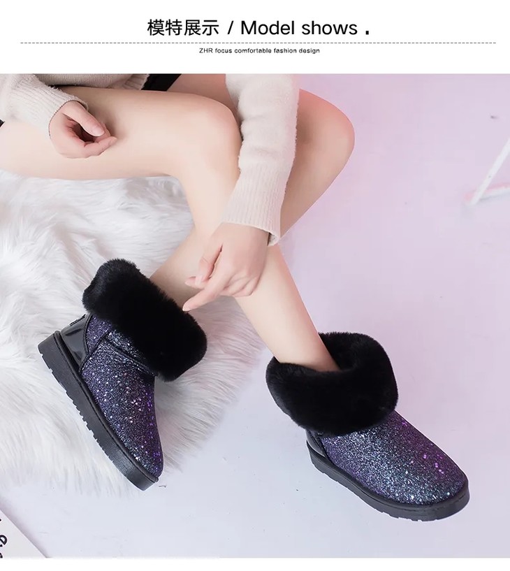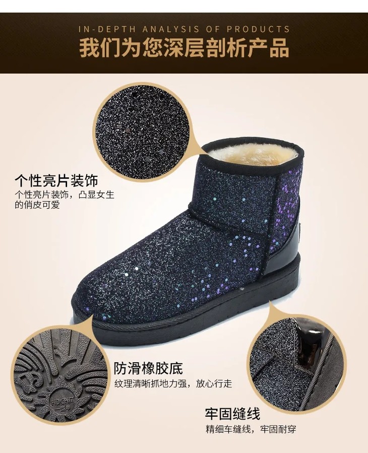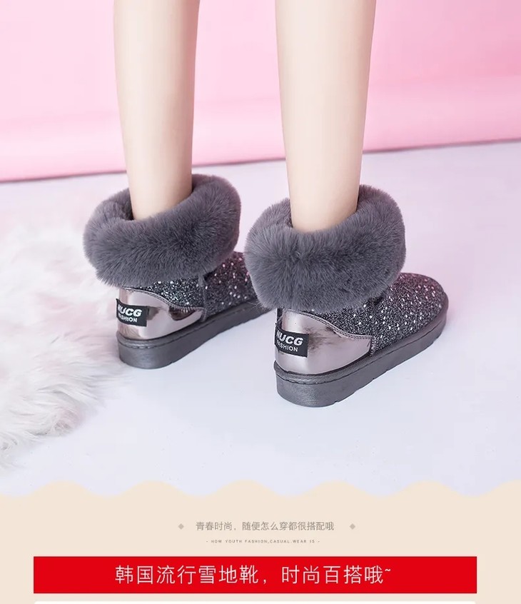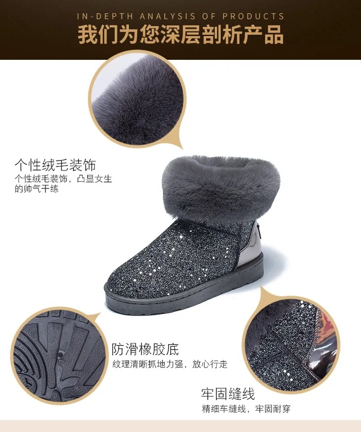 PDD-【加厚雪地靴】女短筒短靴带毛冬季新防滑加厚保暖棉鞋加绒靴子
