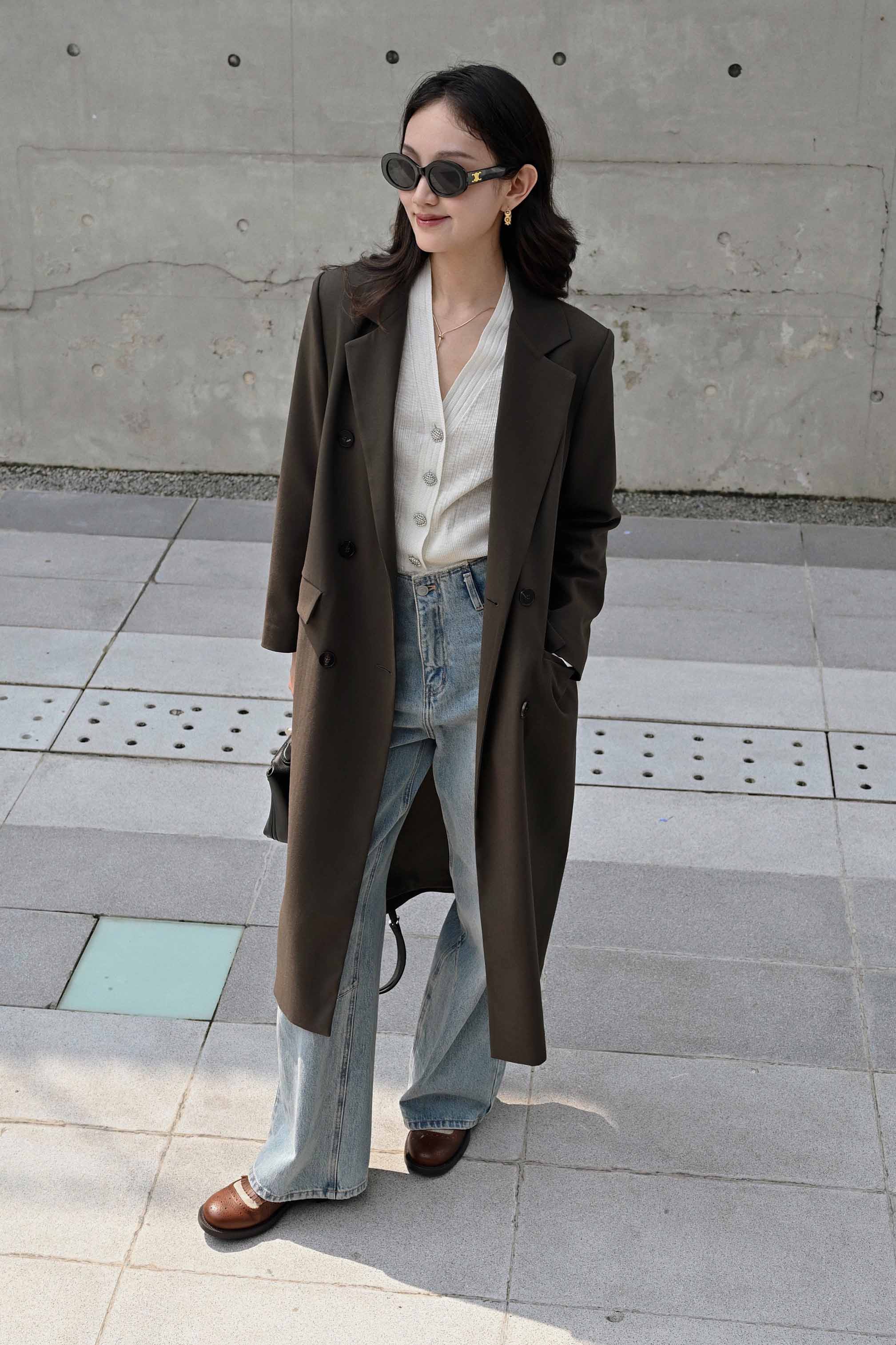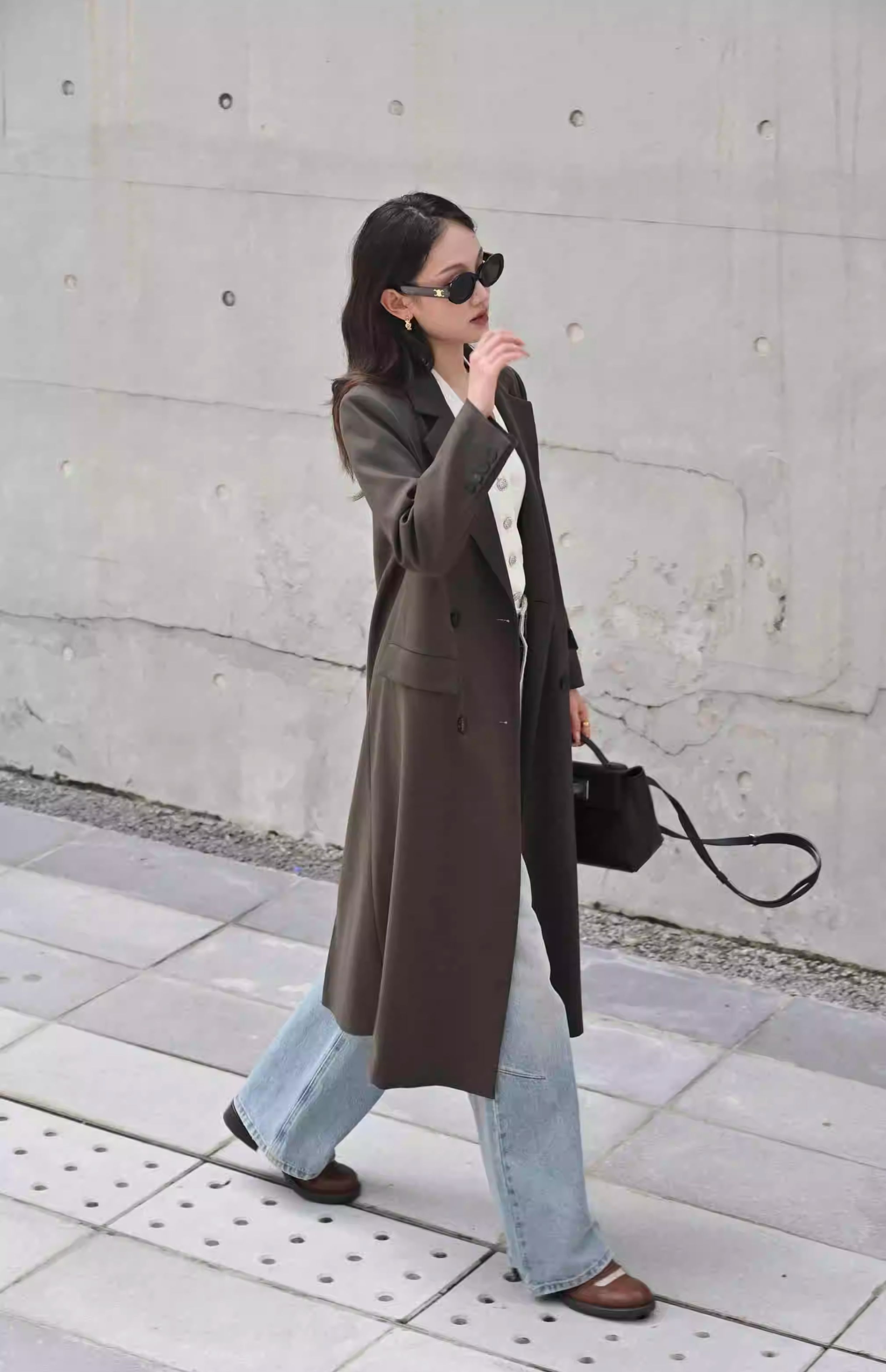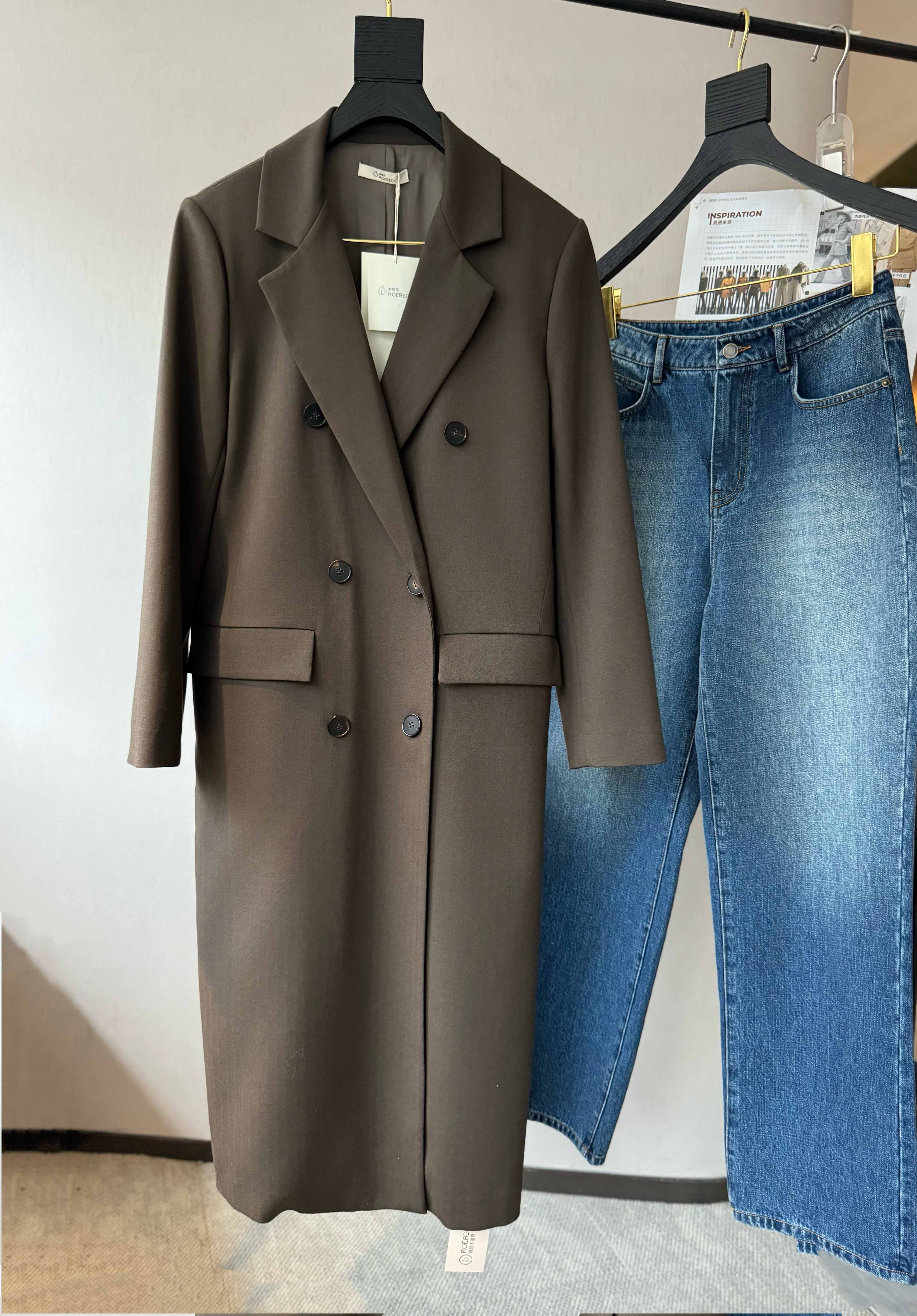 顺丰包邮洛诗琳54603春季新款轻奢风双排扣长款H型西装外套女623