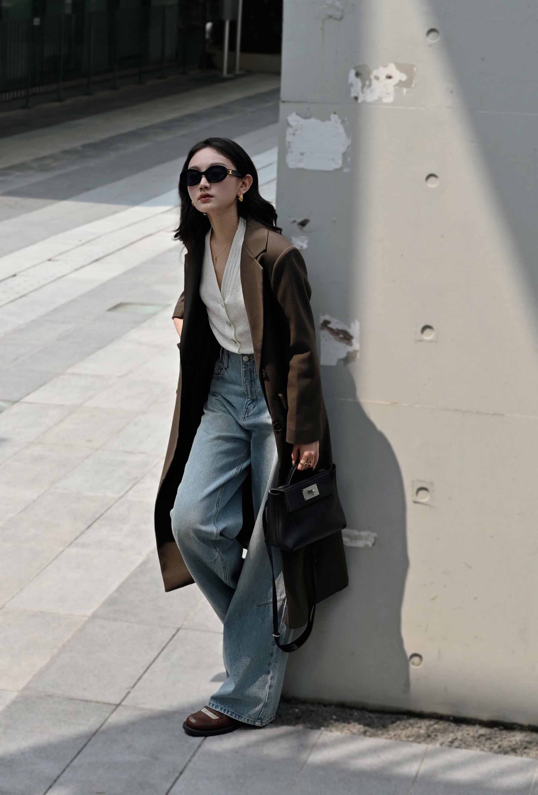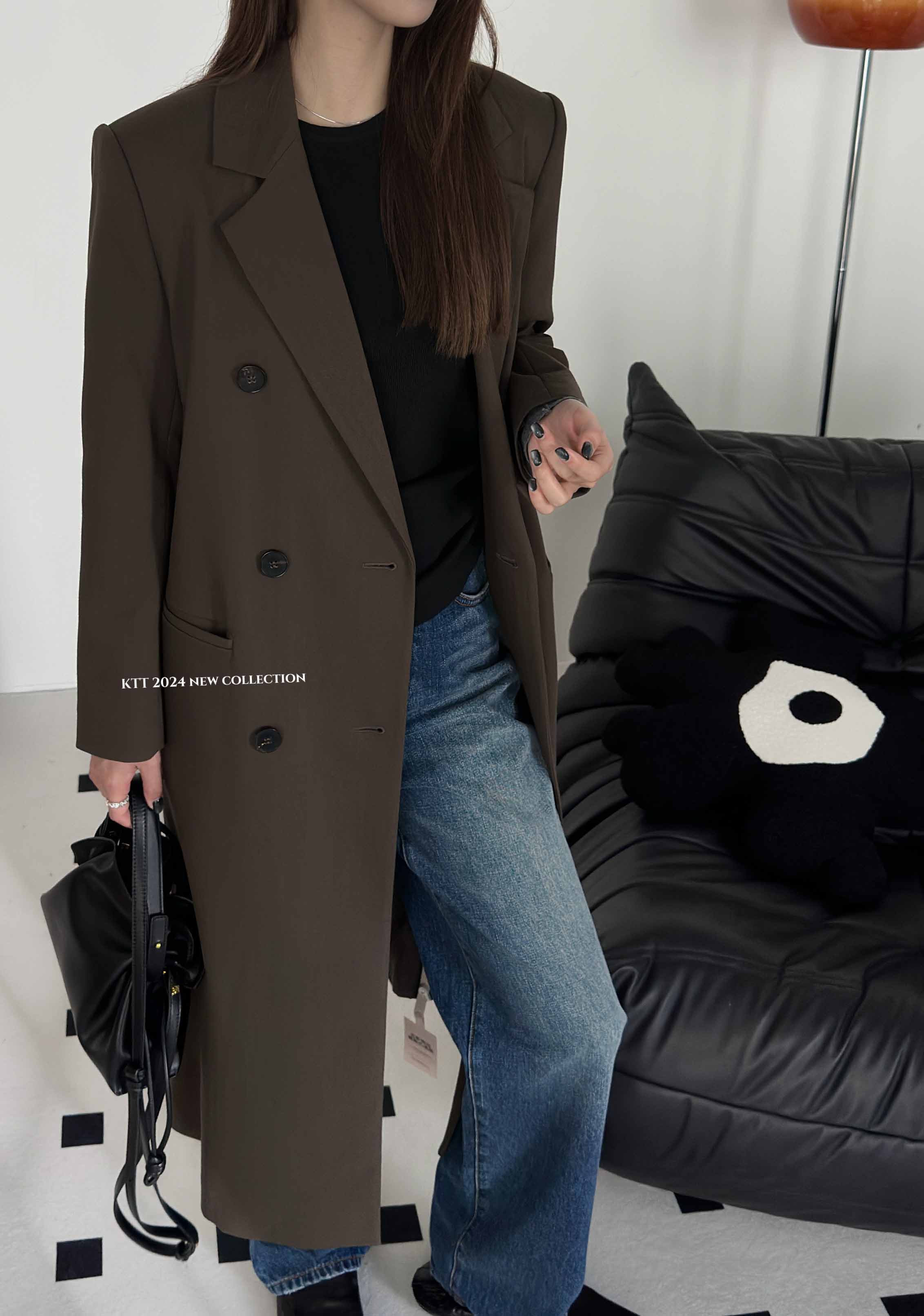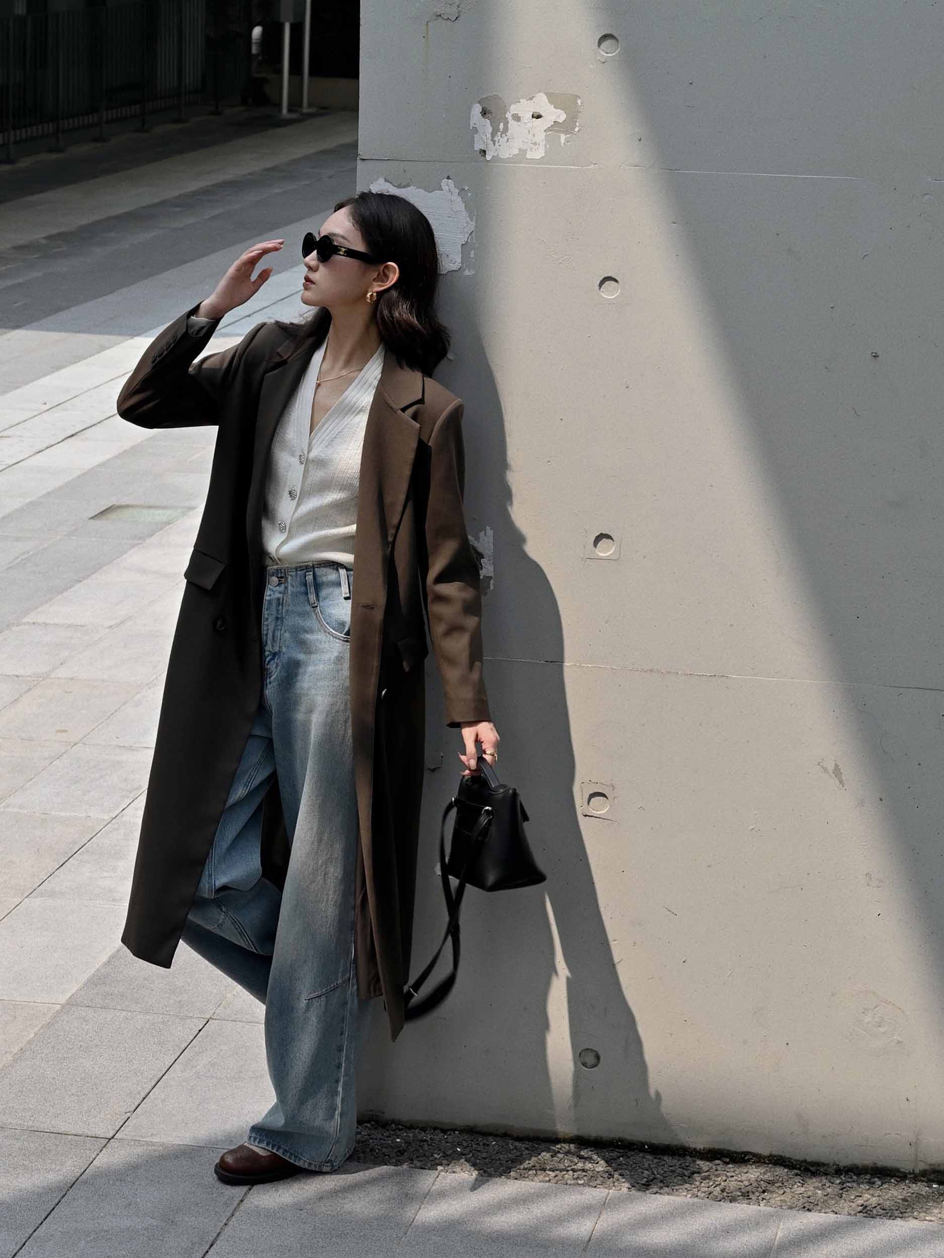 顺丰包邮洛诗琳54603春季新款轻奢风双排扣长款H型西装外套女623