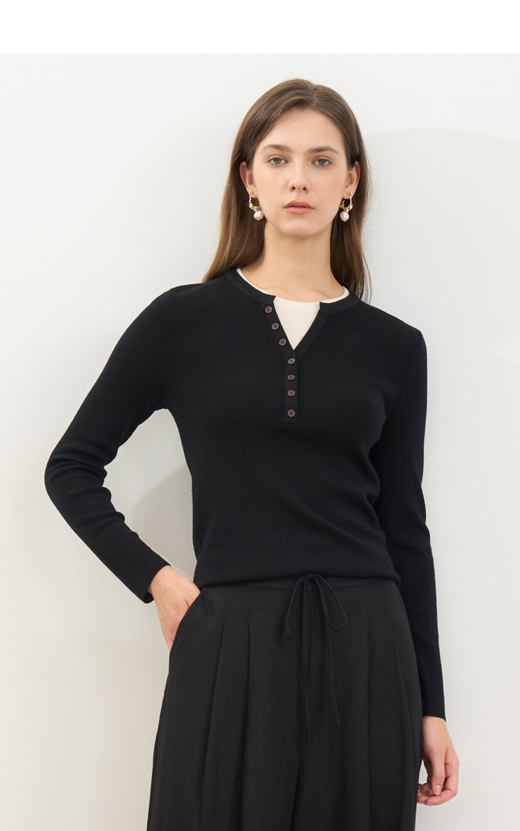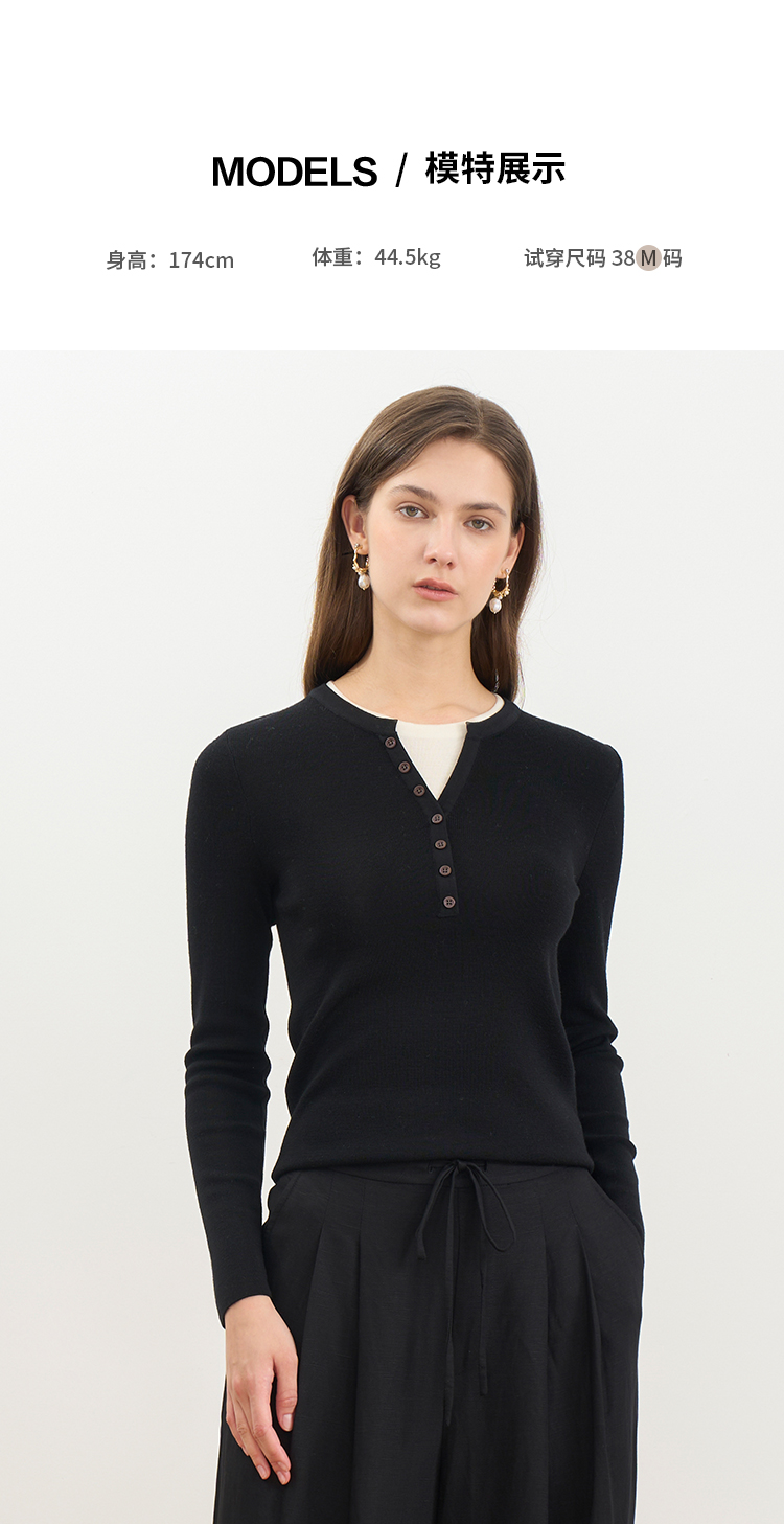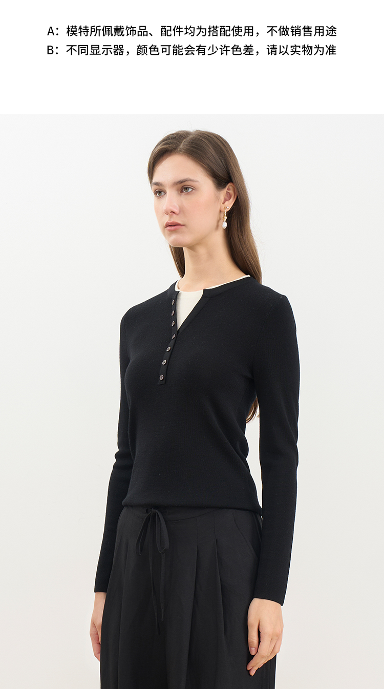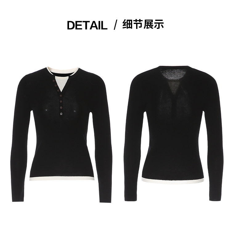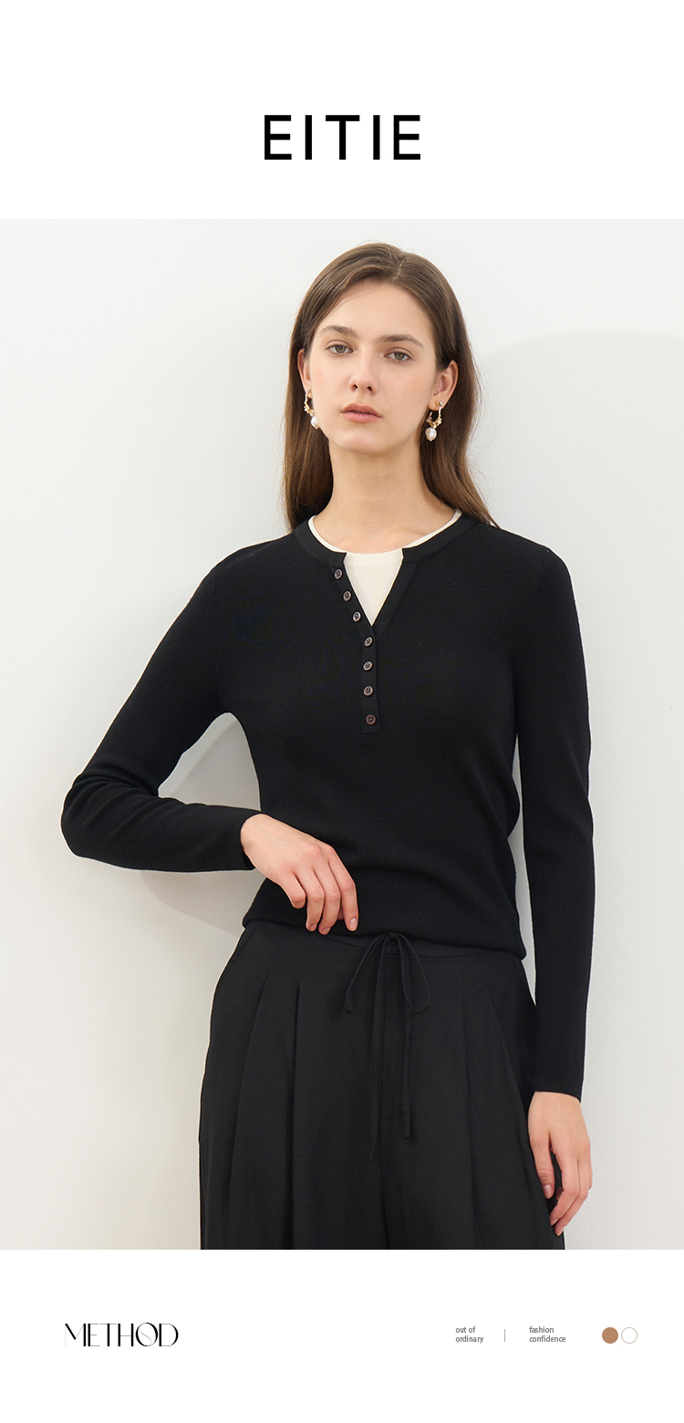 同款下架-【假两件打底针织衫】EITIE爱特爱时尚简约羊毛显瘦秋季新款针织衫D2501909