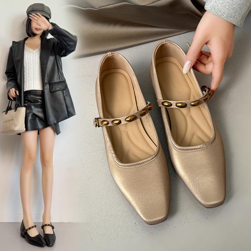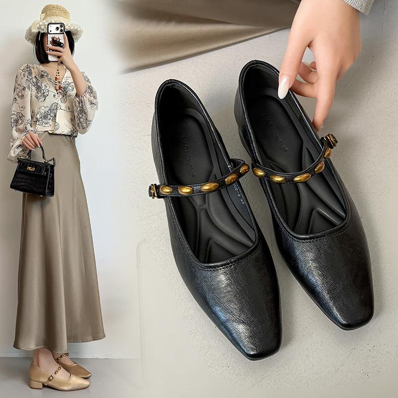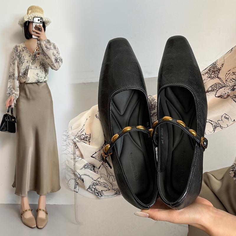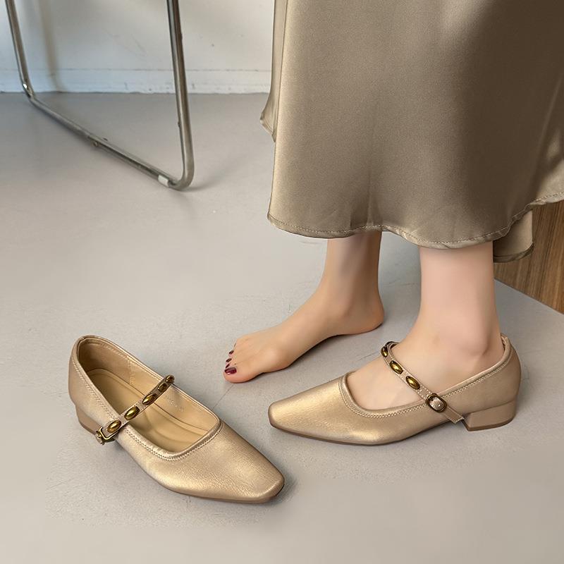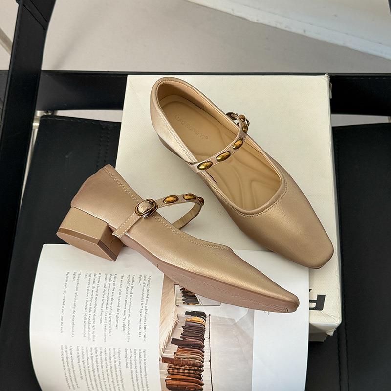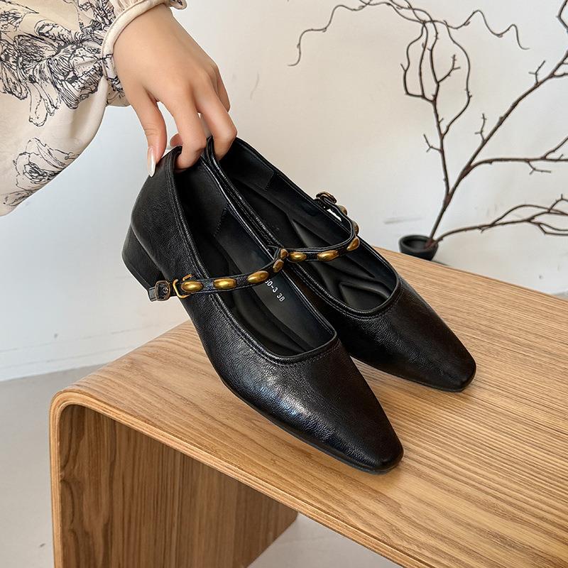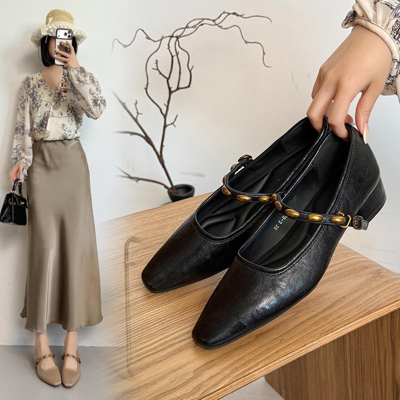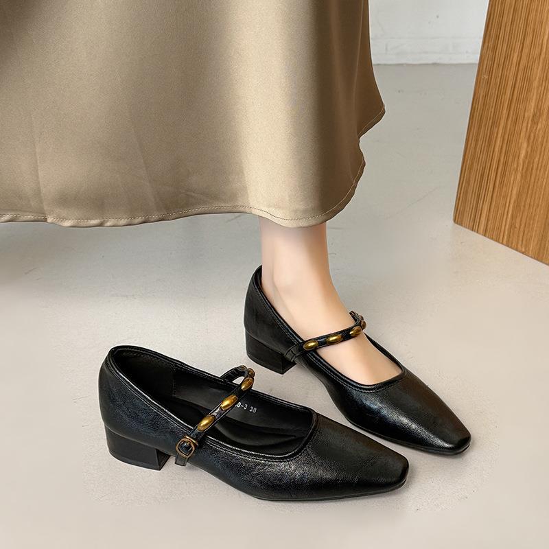 【秒杀】法式玛丽珍鞋女2026新款方头粗跟单鞋真皮浅口一字扣通勤气质女鞋