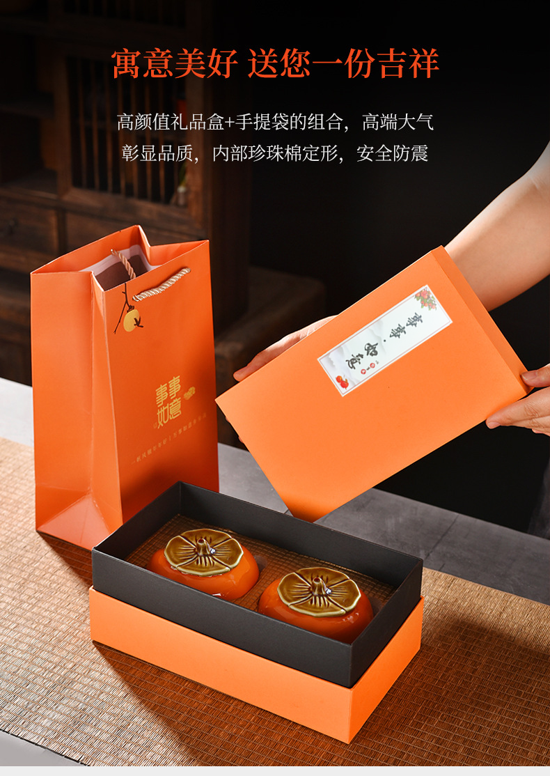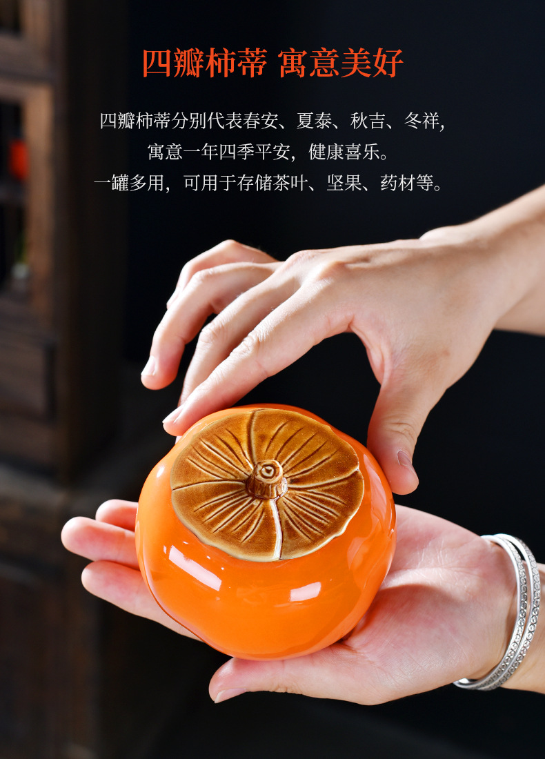 【寓意美好 送您吉祥】柿柿如意茶叶罐 造型逼真小巧便携一罐多用