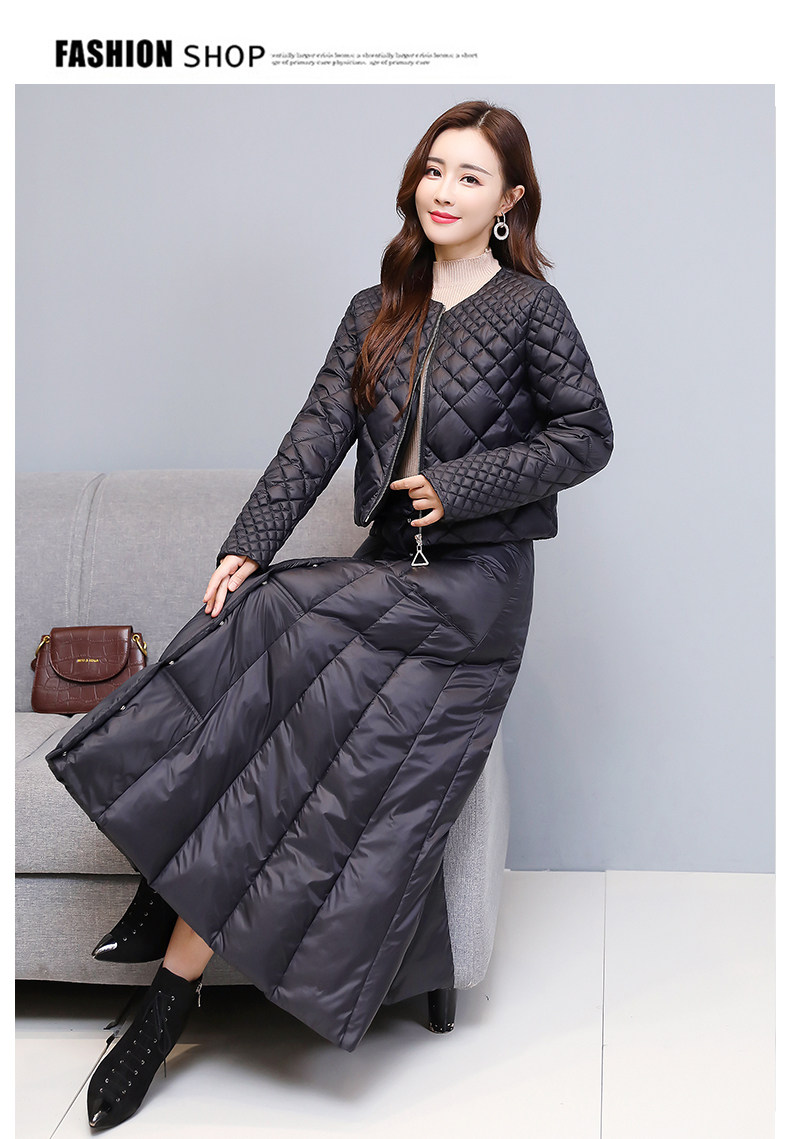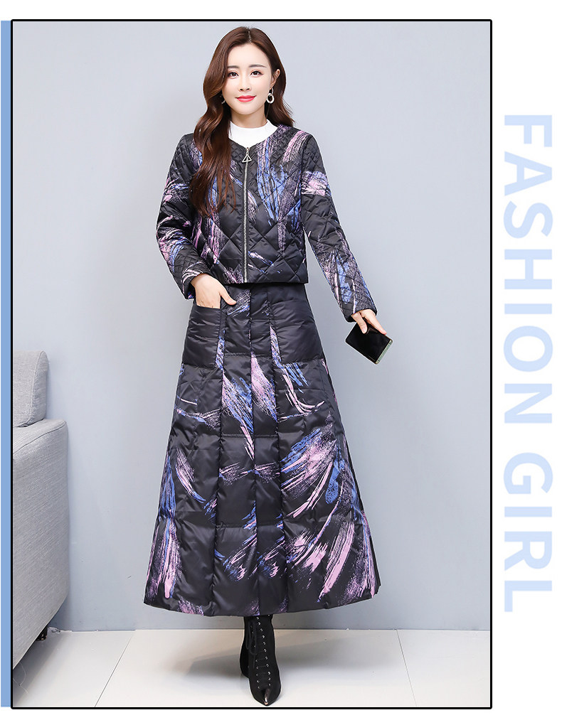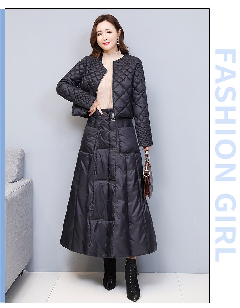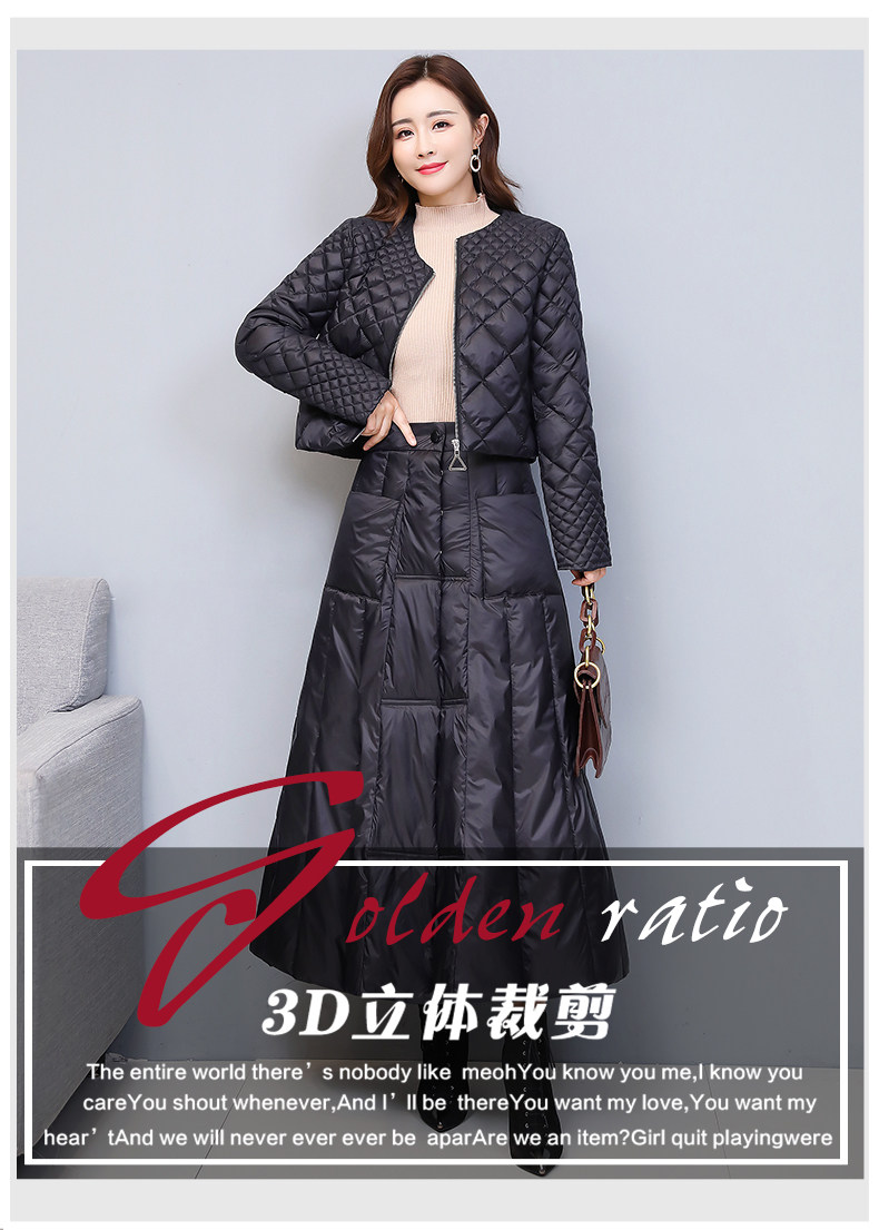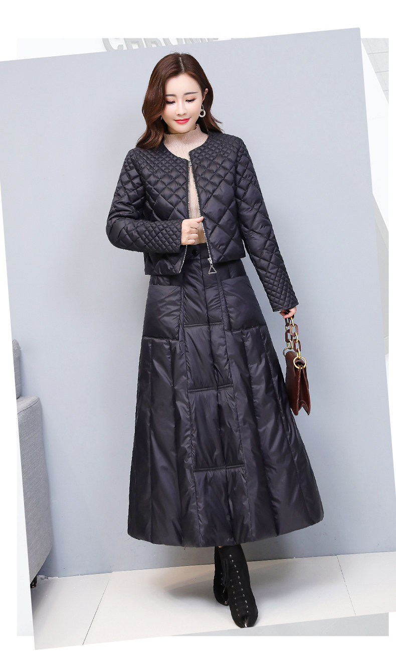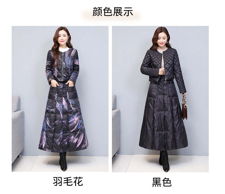 WZNH-YM2070A羽绒服套装裙女短款外套白鸭绒过膝冬装半身裙两件套