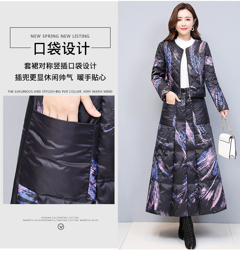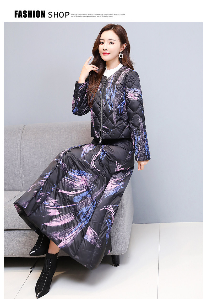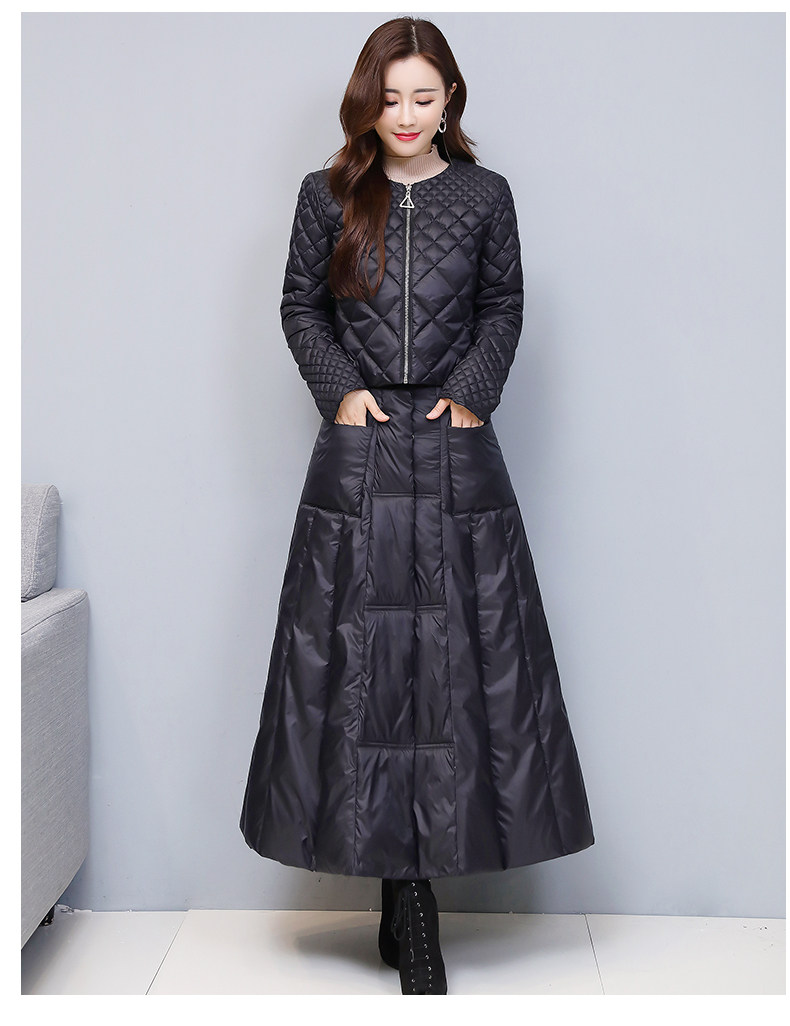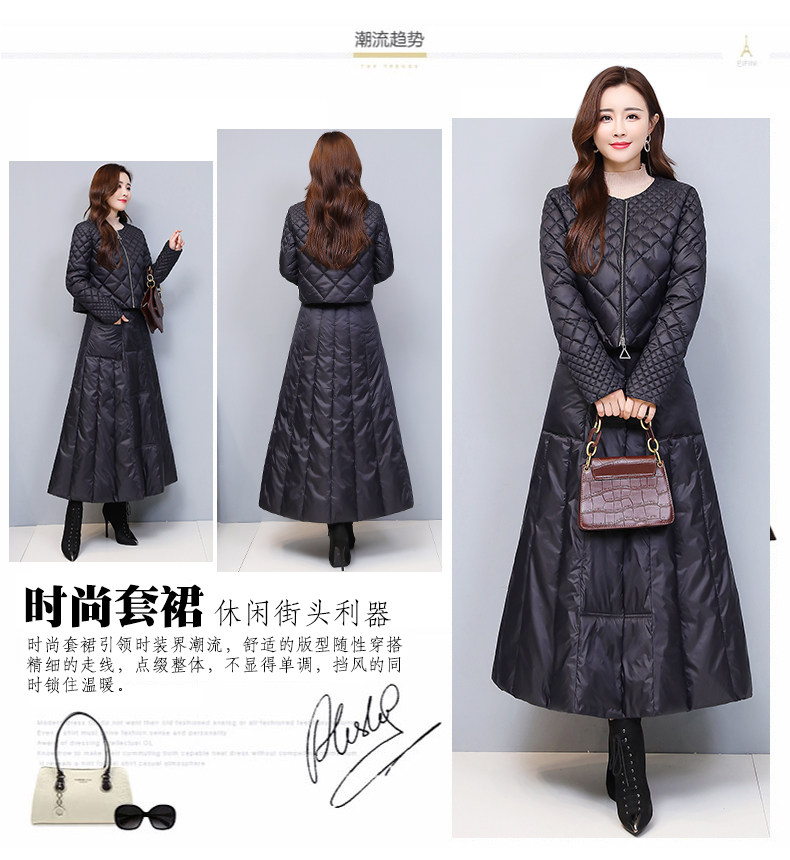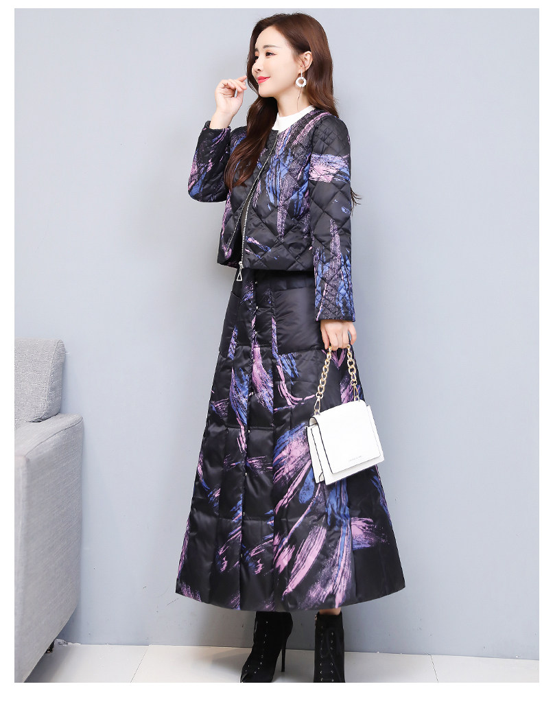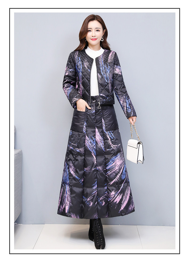 WZNH-YM2070A羽绒服套装裙女短款外套白鸭绒过膝冬装半身裙两件套