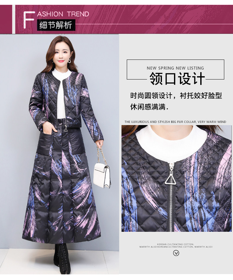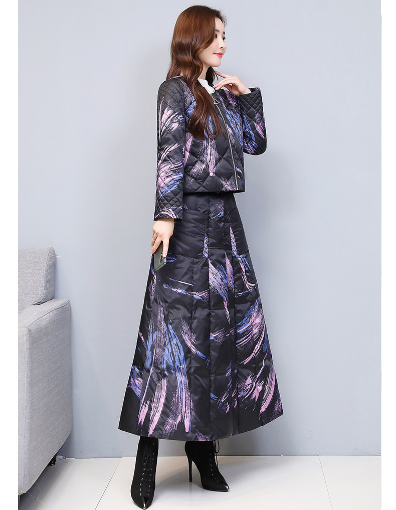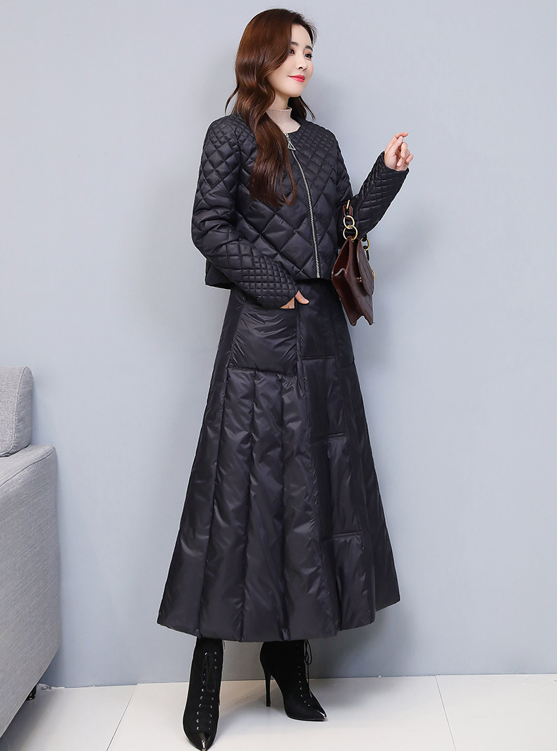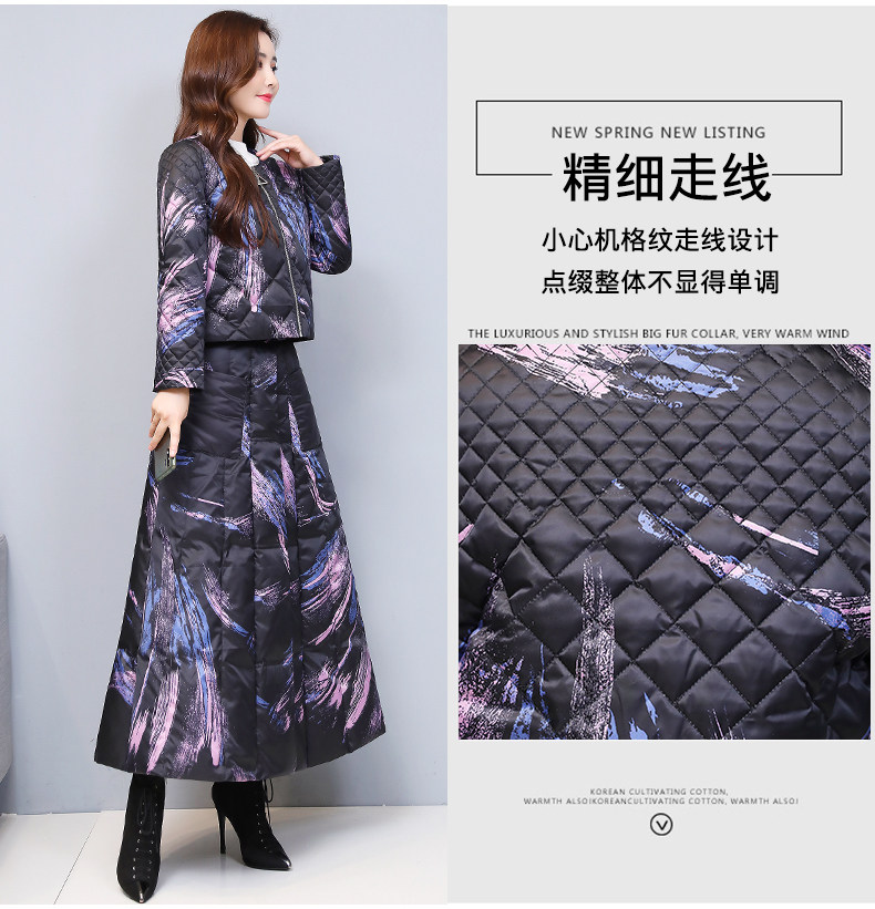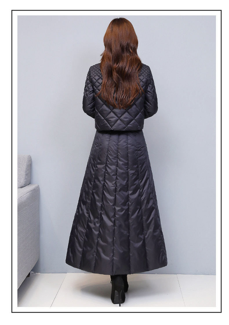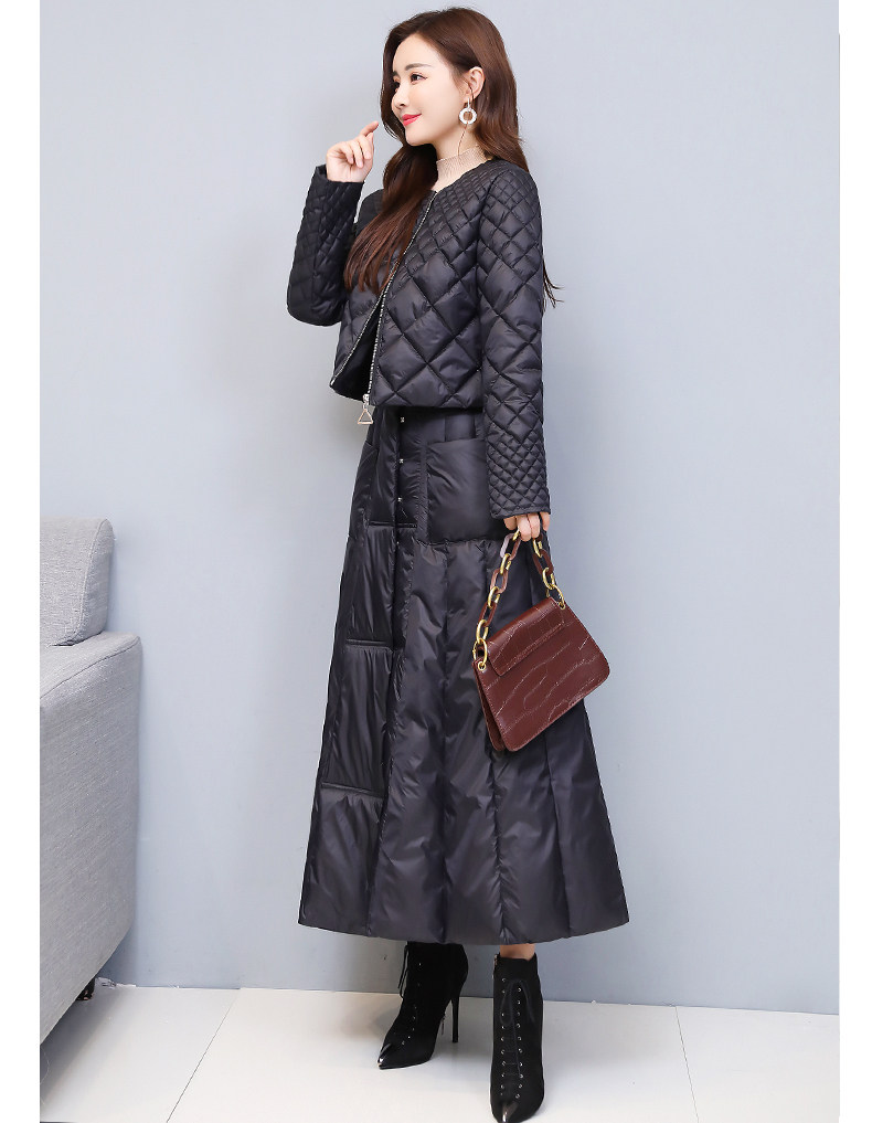 WZNH-YM2070A羽绒服套装裙女短款外套白鸭绒过膝冬装半身裙两件套