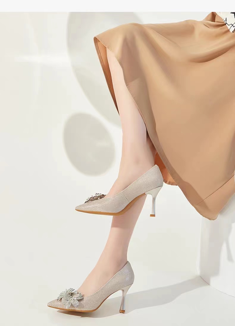 卡迪娜23年春季新款宴会浅口时装鞋优雅简约高跟女单鞋KS231576