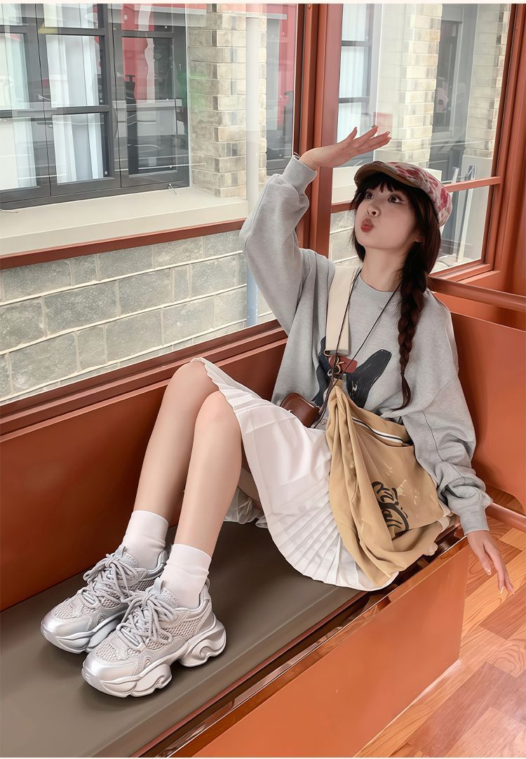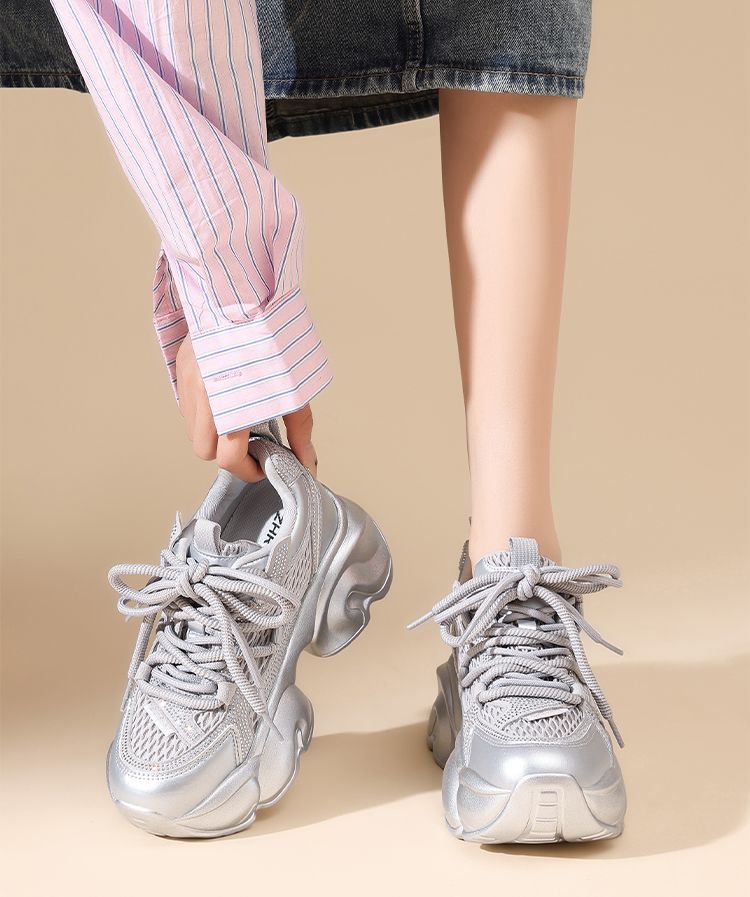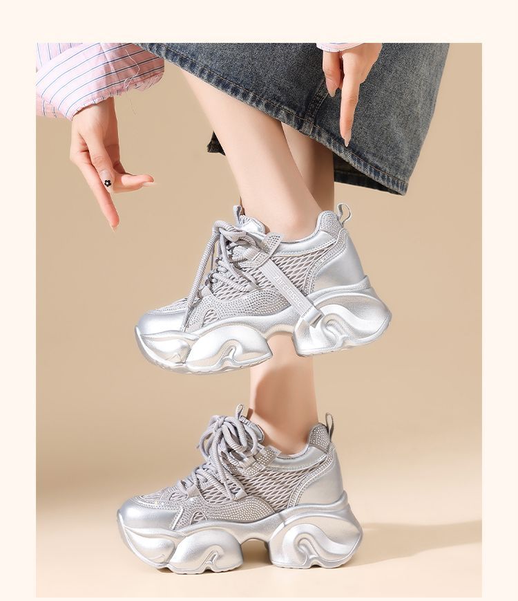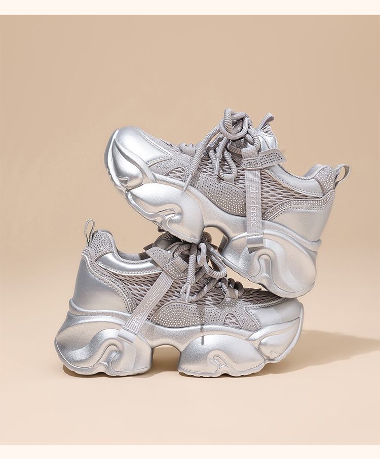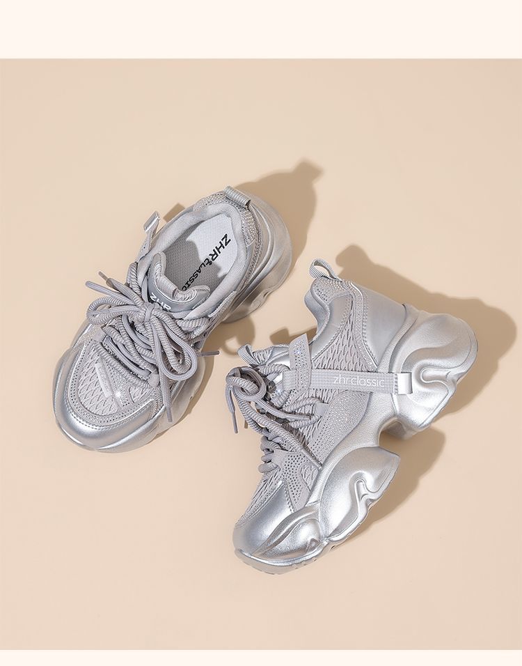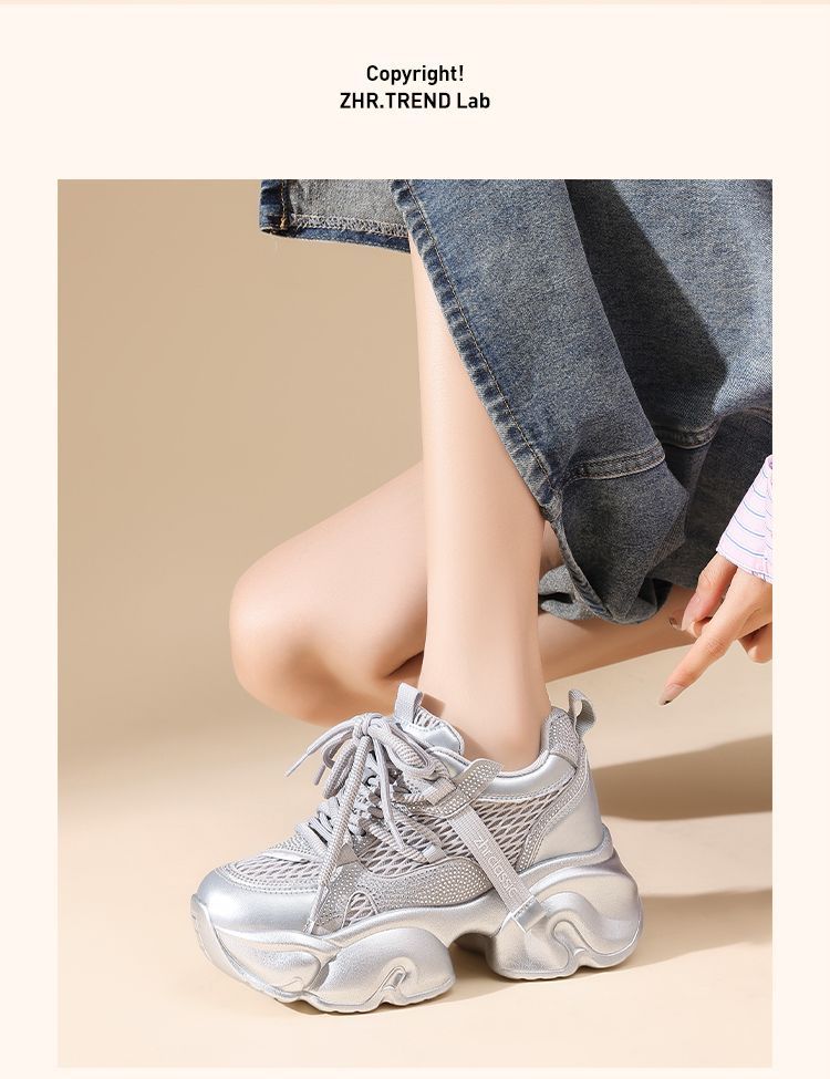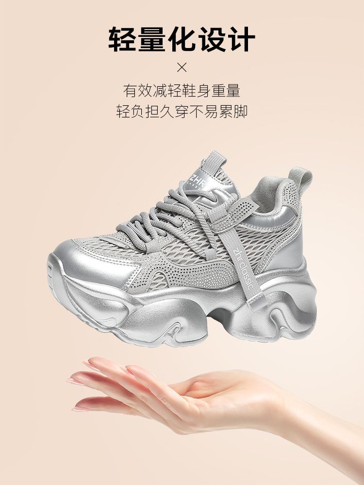 ZHR【增高8cm】厚底老爹鞋女2025秋季小个子显高透气运动休闲鞋女