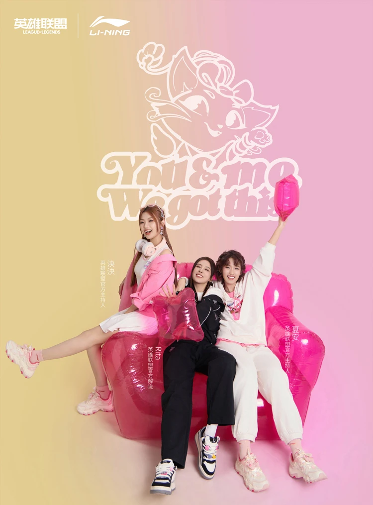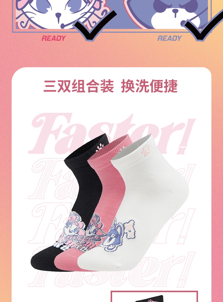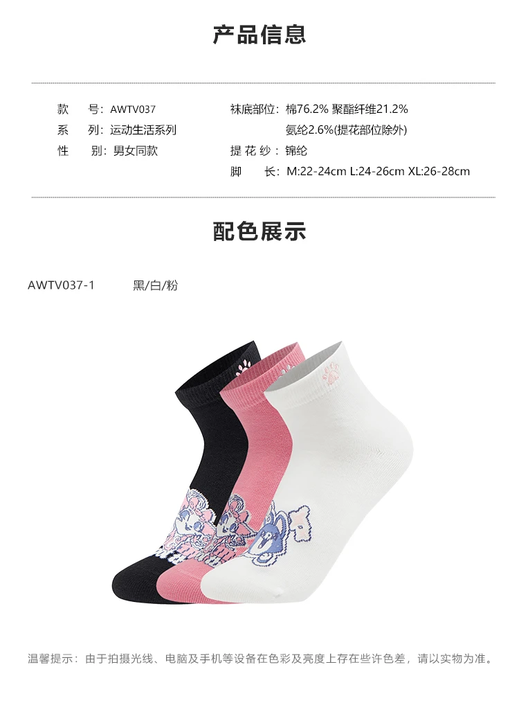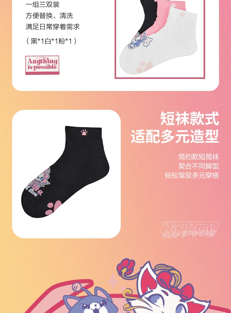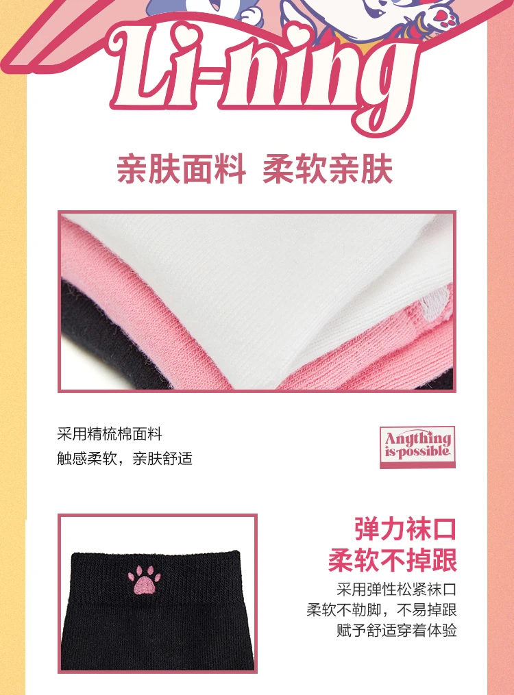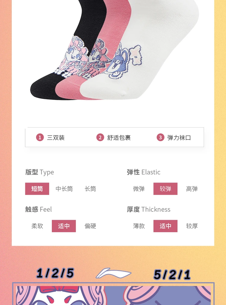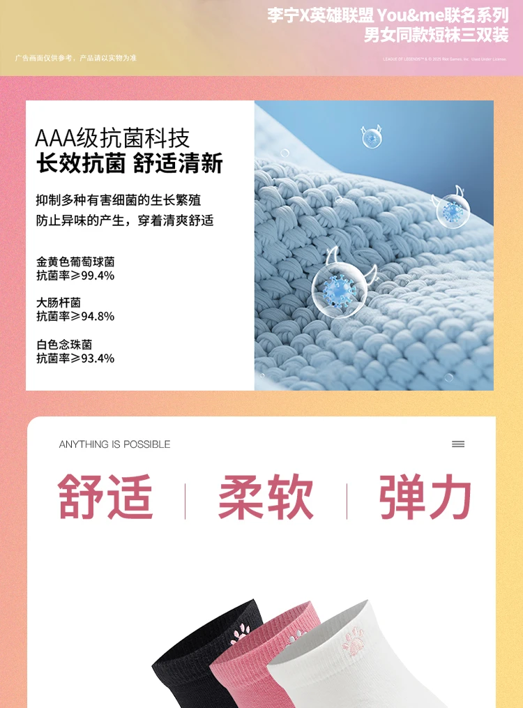 李宁X英雄联盟 You&me联名系列 悠米 抗菌短袜三双装AWTV037