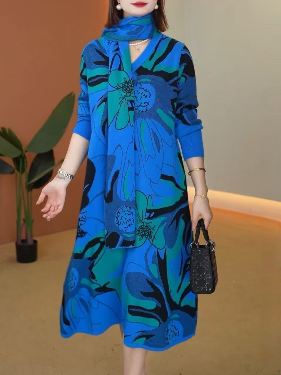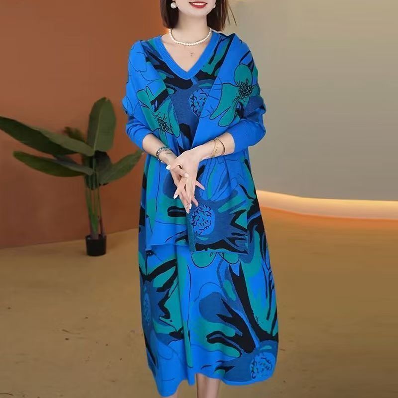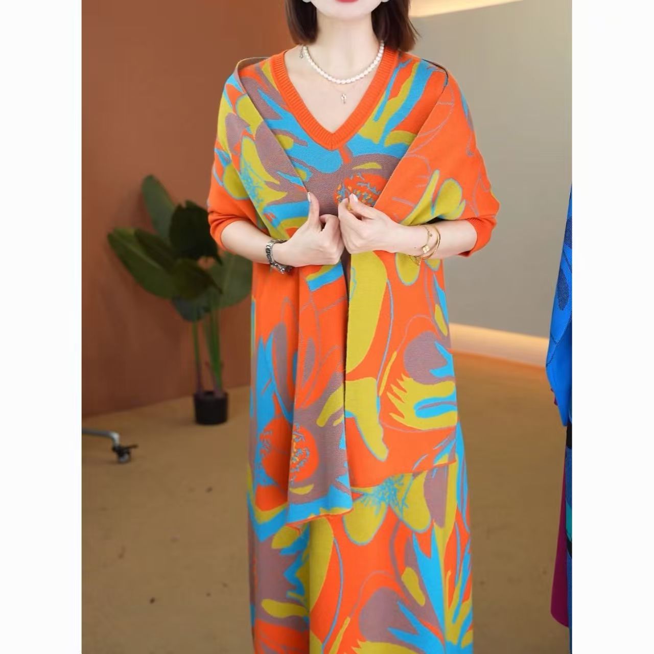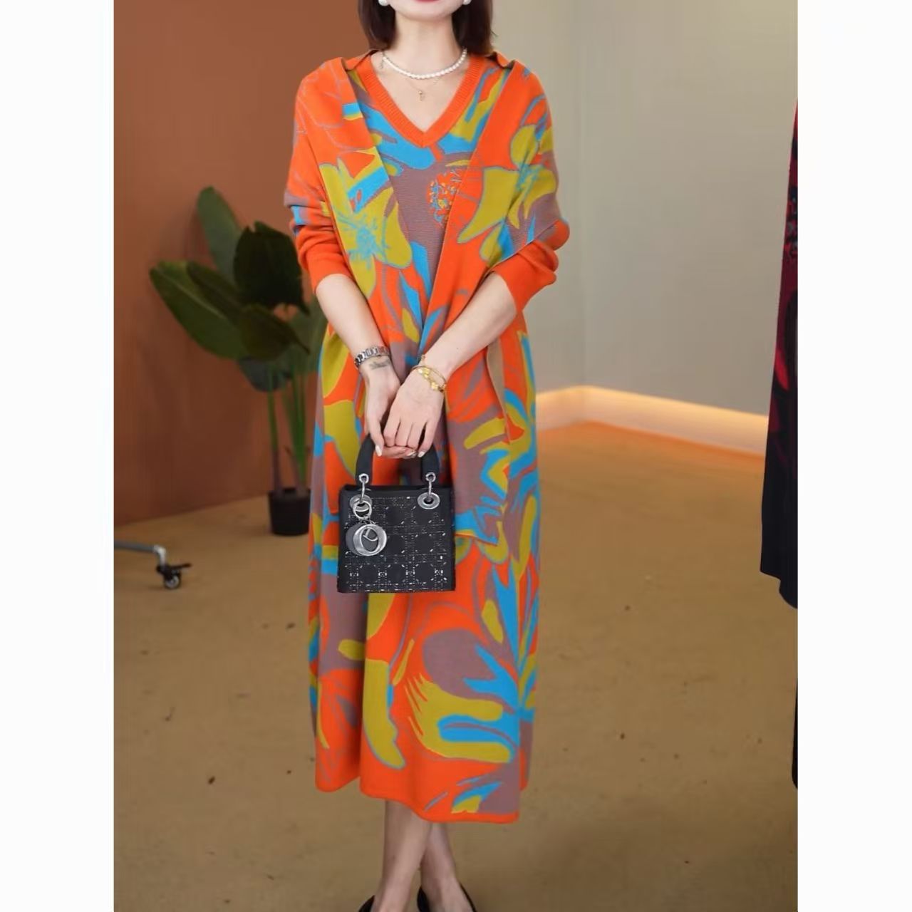 AHM wjnz8076气质宽松休闲时尚花色毛衣裙