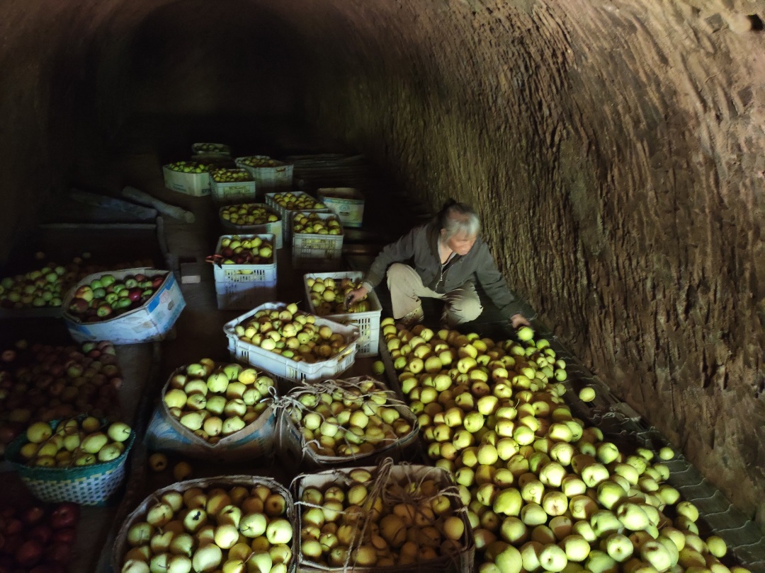 9月下旬采收后利用保温透气的窑洞储存,更能保留梨的风味。