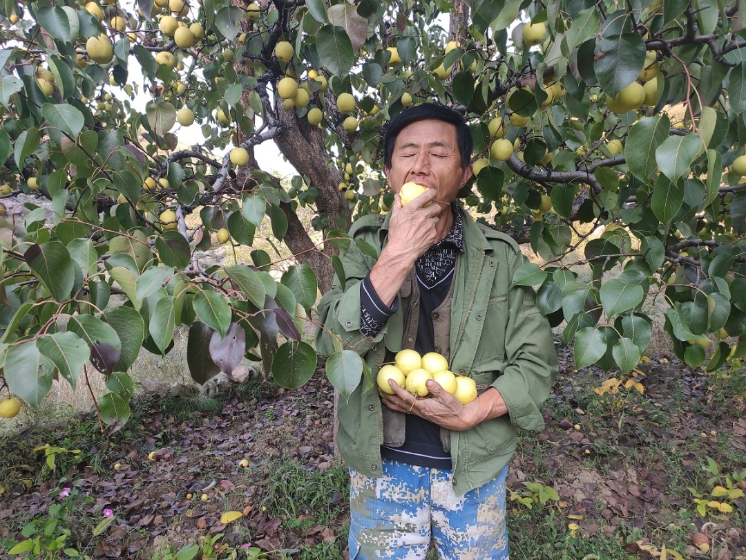 酥梨在村里种植了很多年,平均树龄有20多年以上。酥梨树这里一隅,那里一角,是分散种植的状态。分散种植带来的直观的影响就是病虫害较少,不会集中爆发。