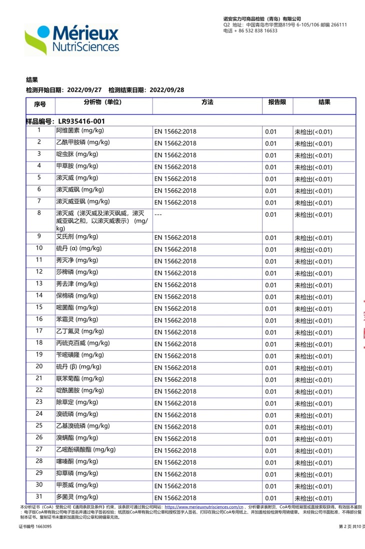 酥梨2022年检测报告