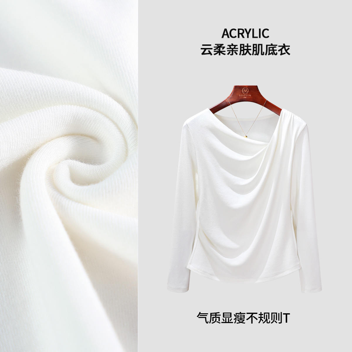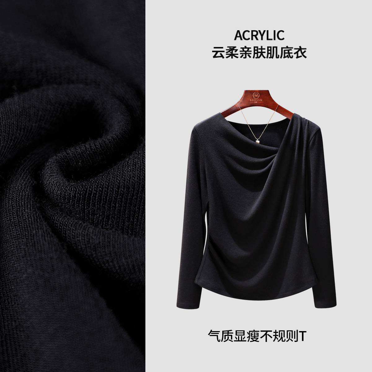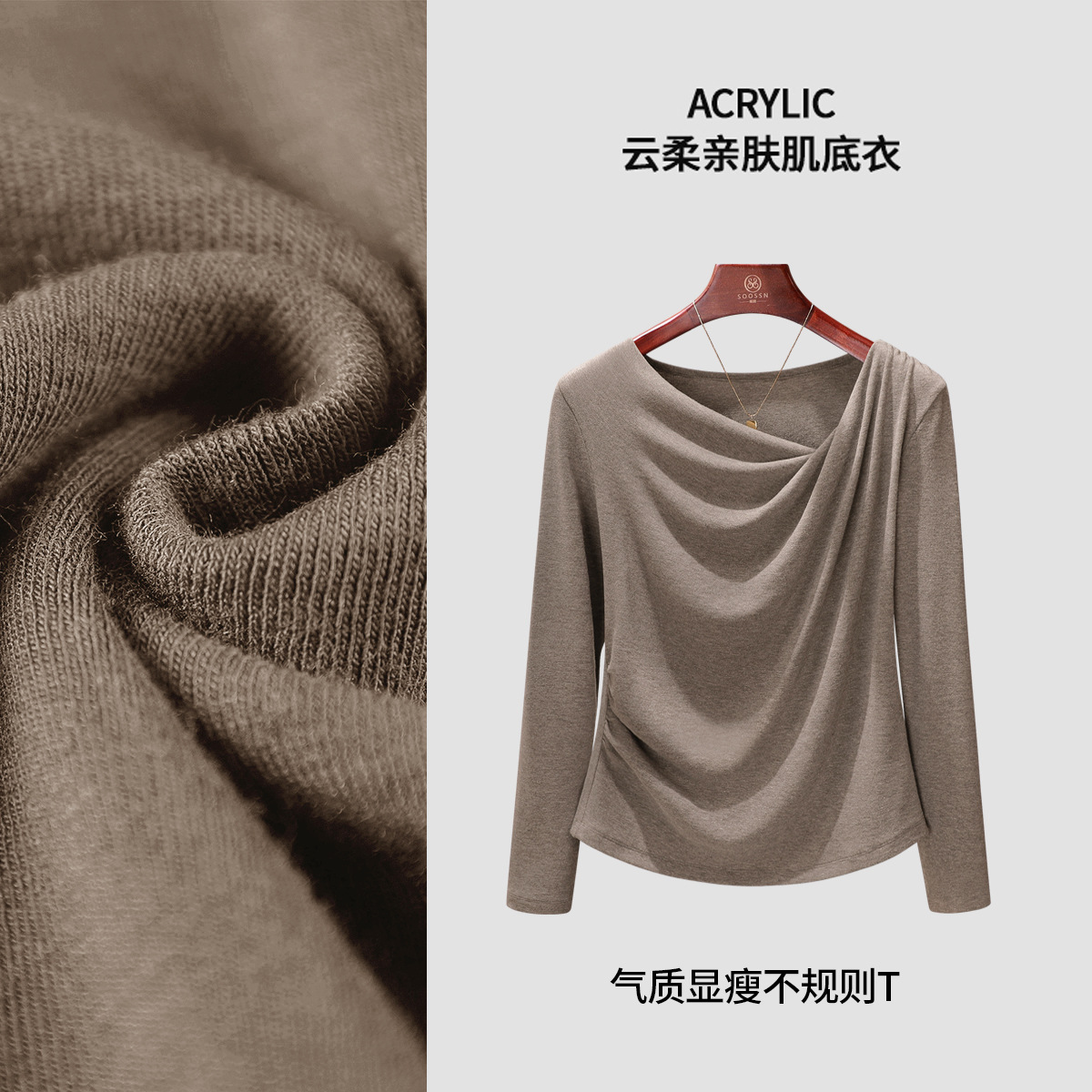 「自j」全新升级【铂金会员119/天猫159/差价40】(93203)洛诗琳新款设计感皱褶显瘦T恤2025秋季不规则荡领气质上衣女