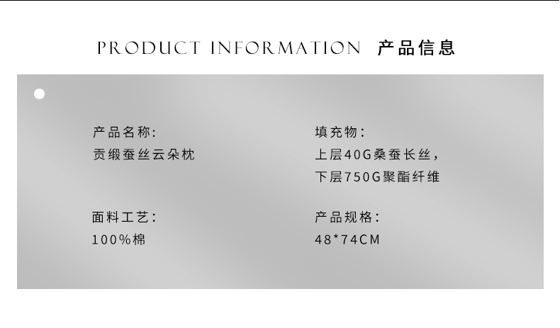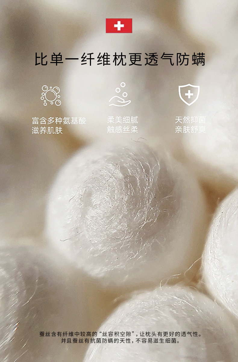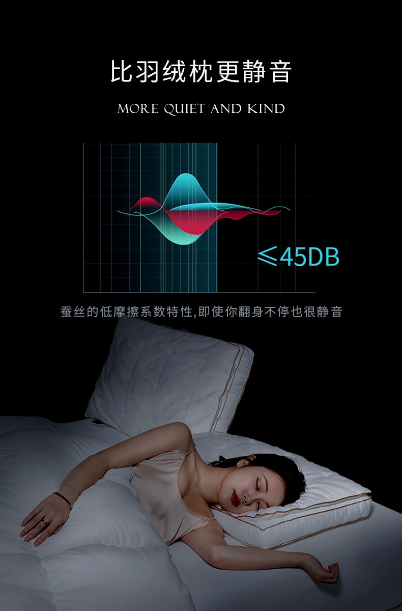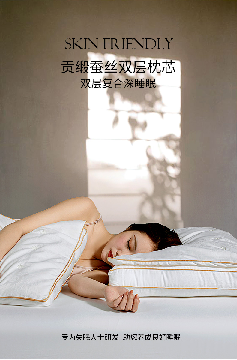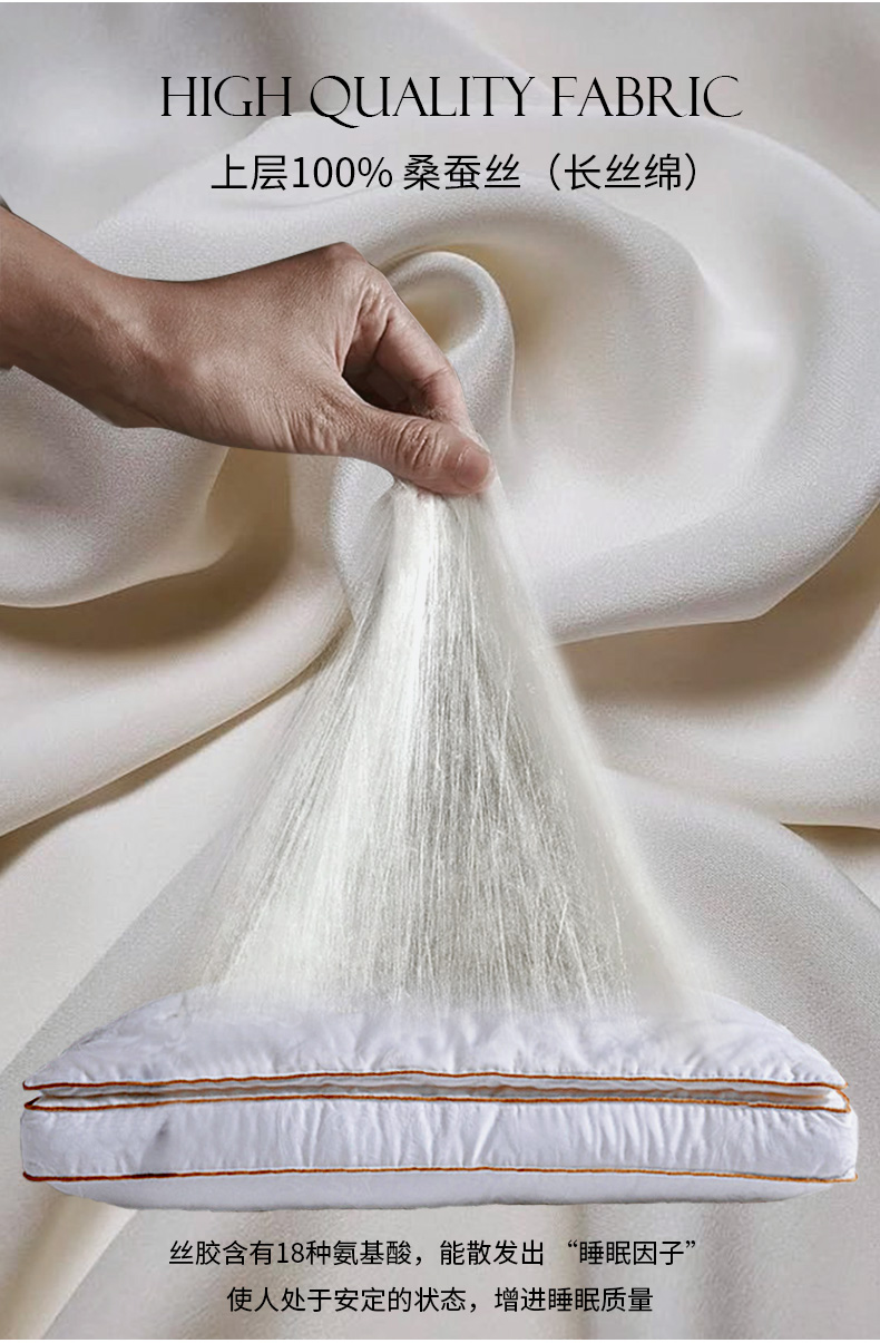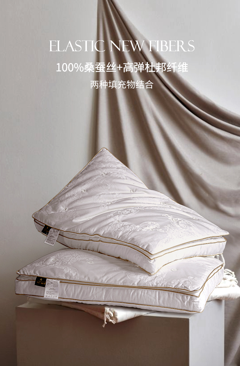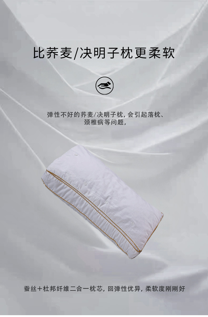 钱皇&Kingsilk 桑蚕丝深睡眠亲肤云朵枕 48*74cm 80支新疆长绒棉 桑蚕丝+高弹杜邦纤维填充 持久回弹 柔软体验