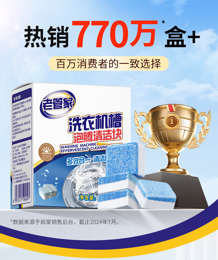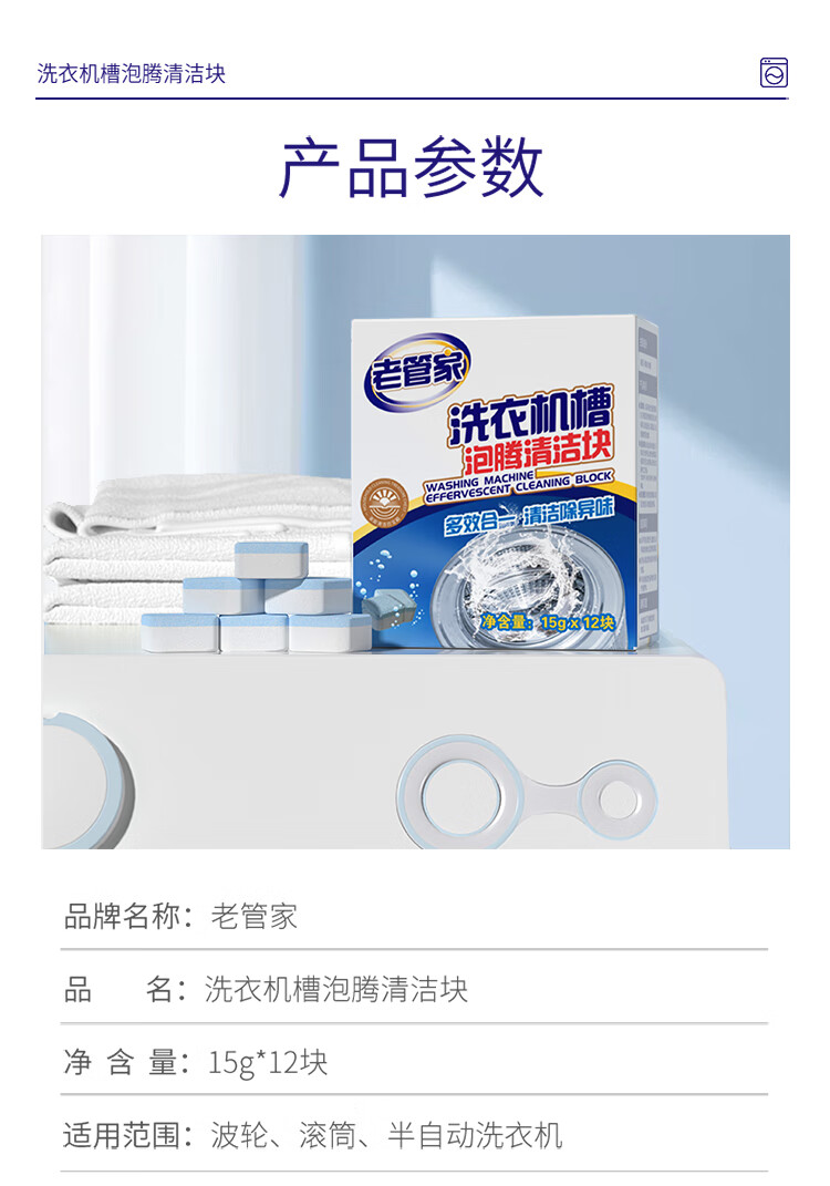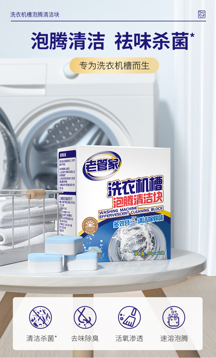 【预售-12月29日配送】老管家洗衣机槽泡腾清洁块/1份(2盒,单盒12块)限用日期:28年9月