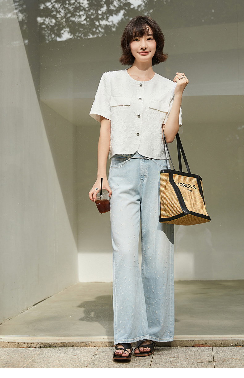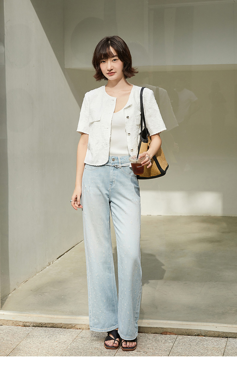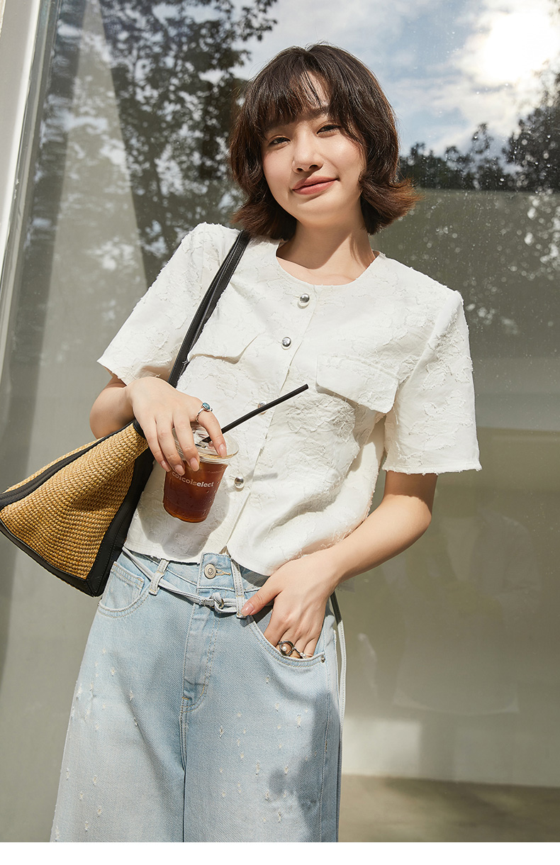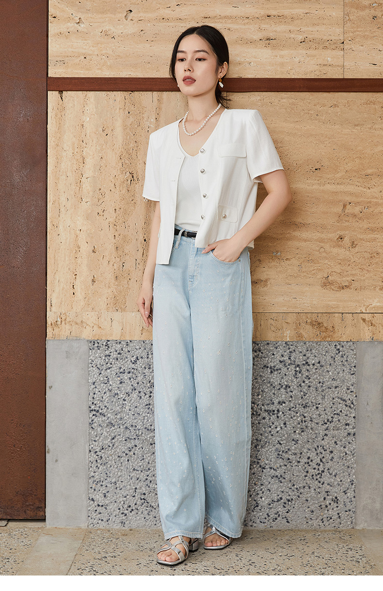 挺括质感小香风外套 春季米白色遮肉百搭气质短款上衣