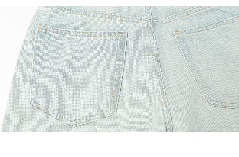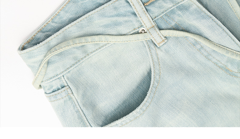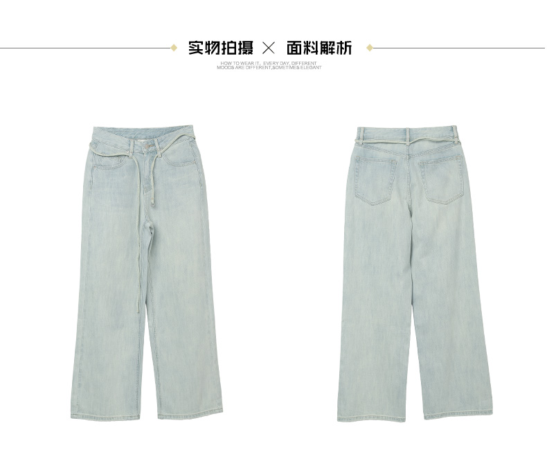 浅蓝水洗抽绳阔腿牛仔裤女 高腰垂感直筒裤 显瘦遮肉拖地长裤