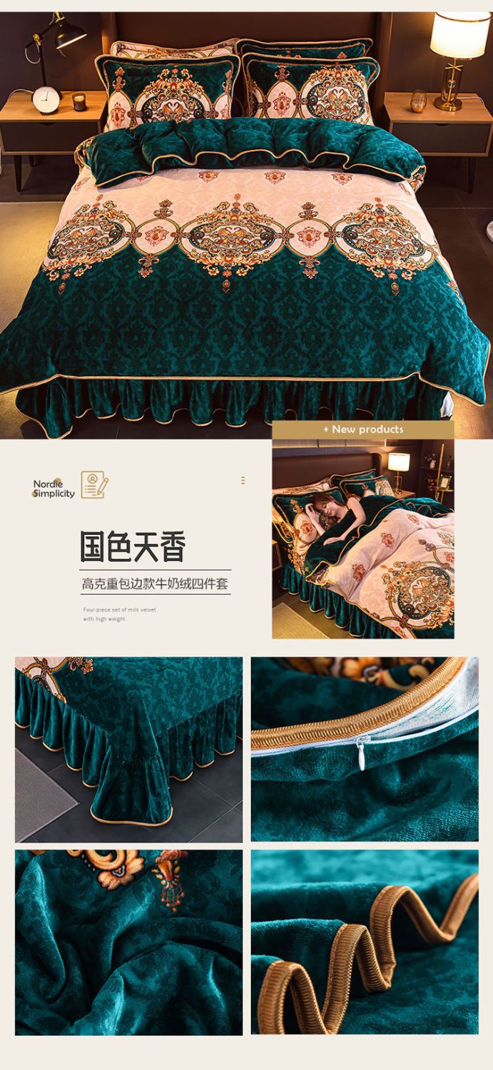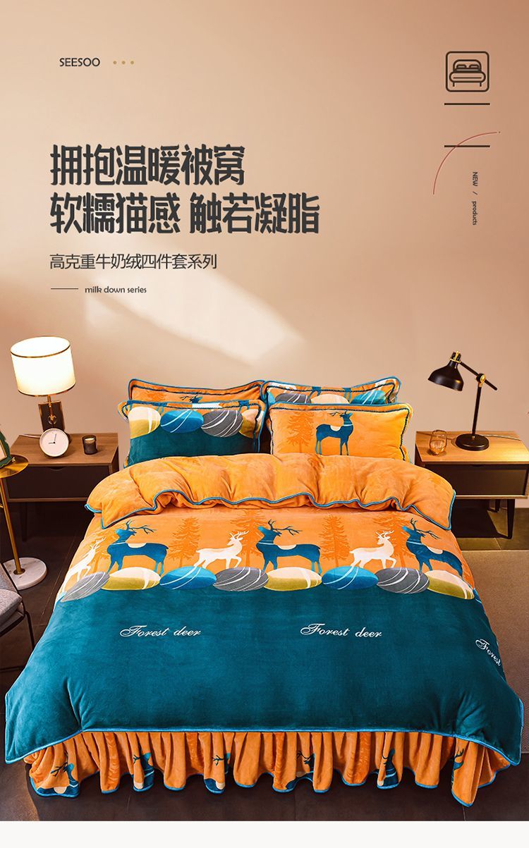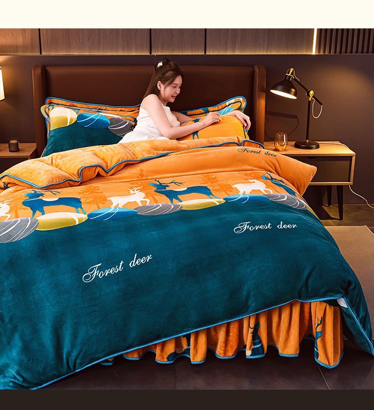 冬季牛奶绒四件套法莱绒珊瑚床上毛绒加厚双面绒高档防静电四件套