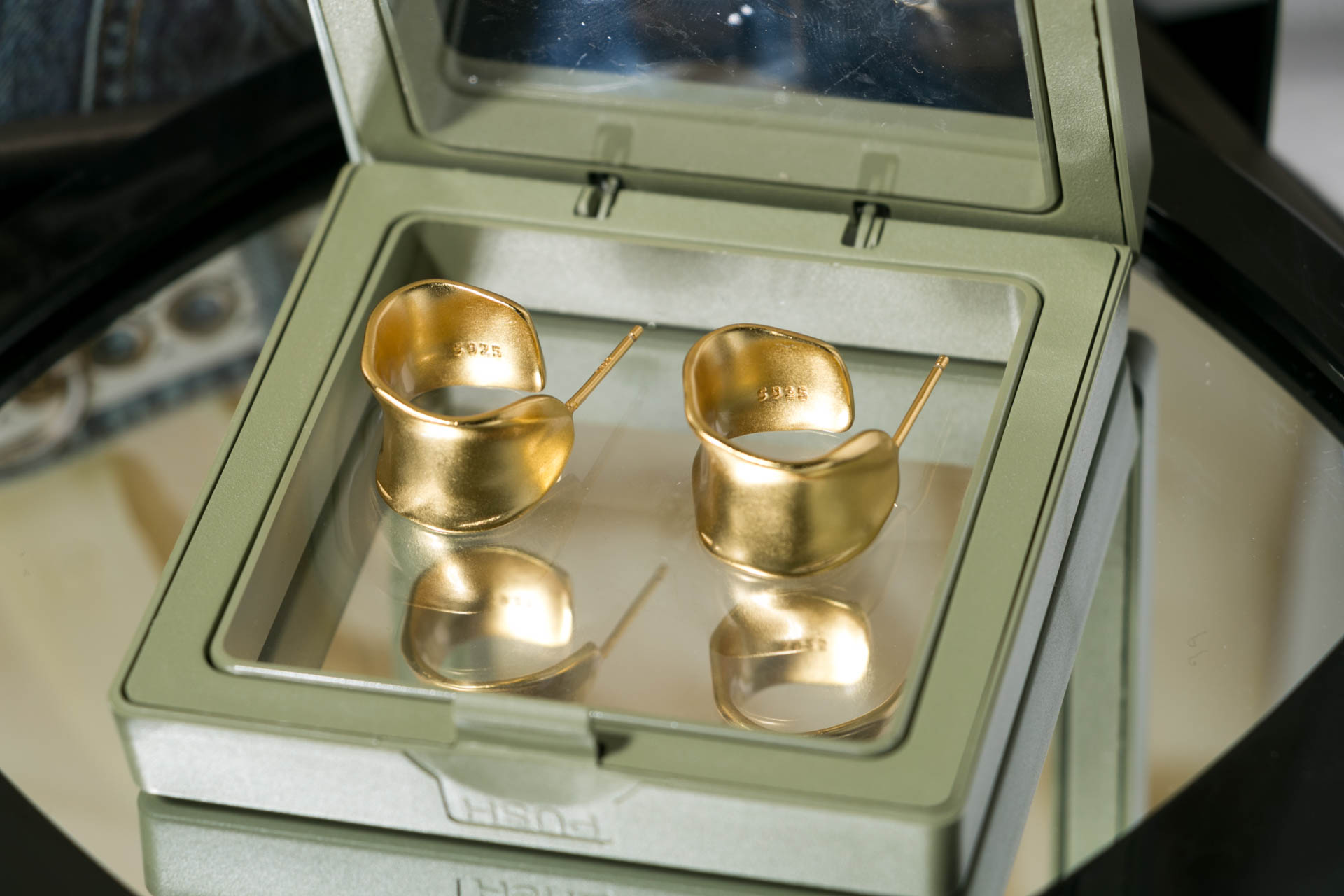 心心念念必有回响,弧形开口耳环,纯银镀真金,镀金厚实非普通。非18K金,真金,密封保存,可有效防止氧化。