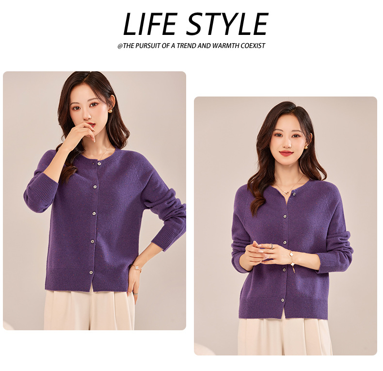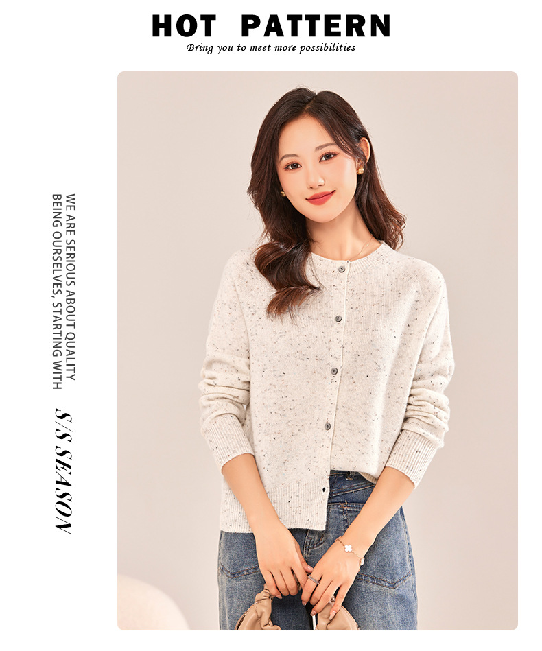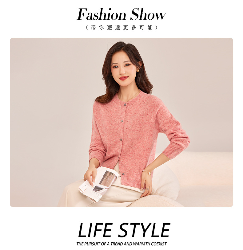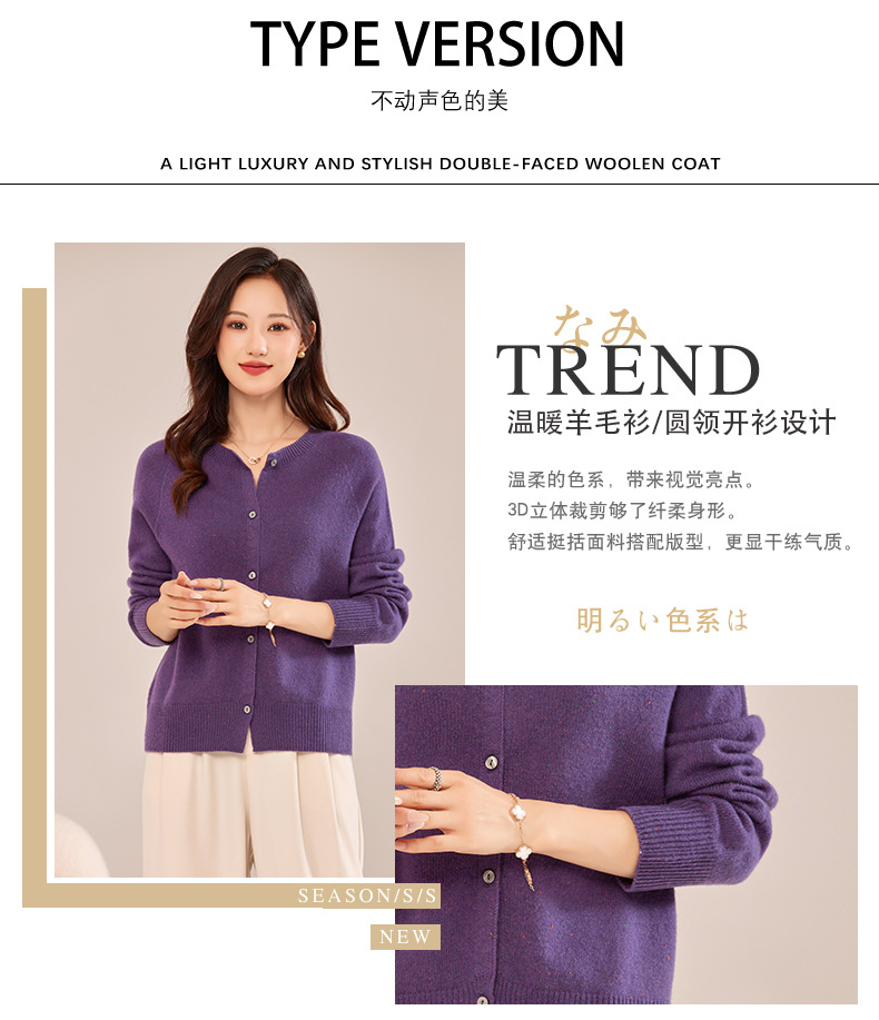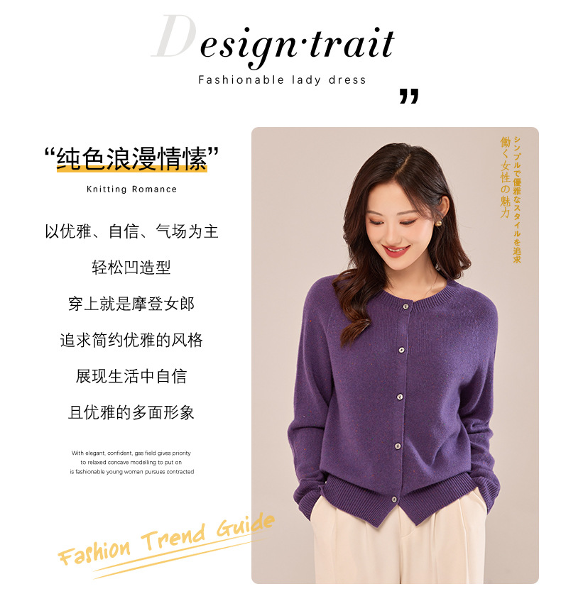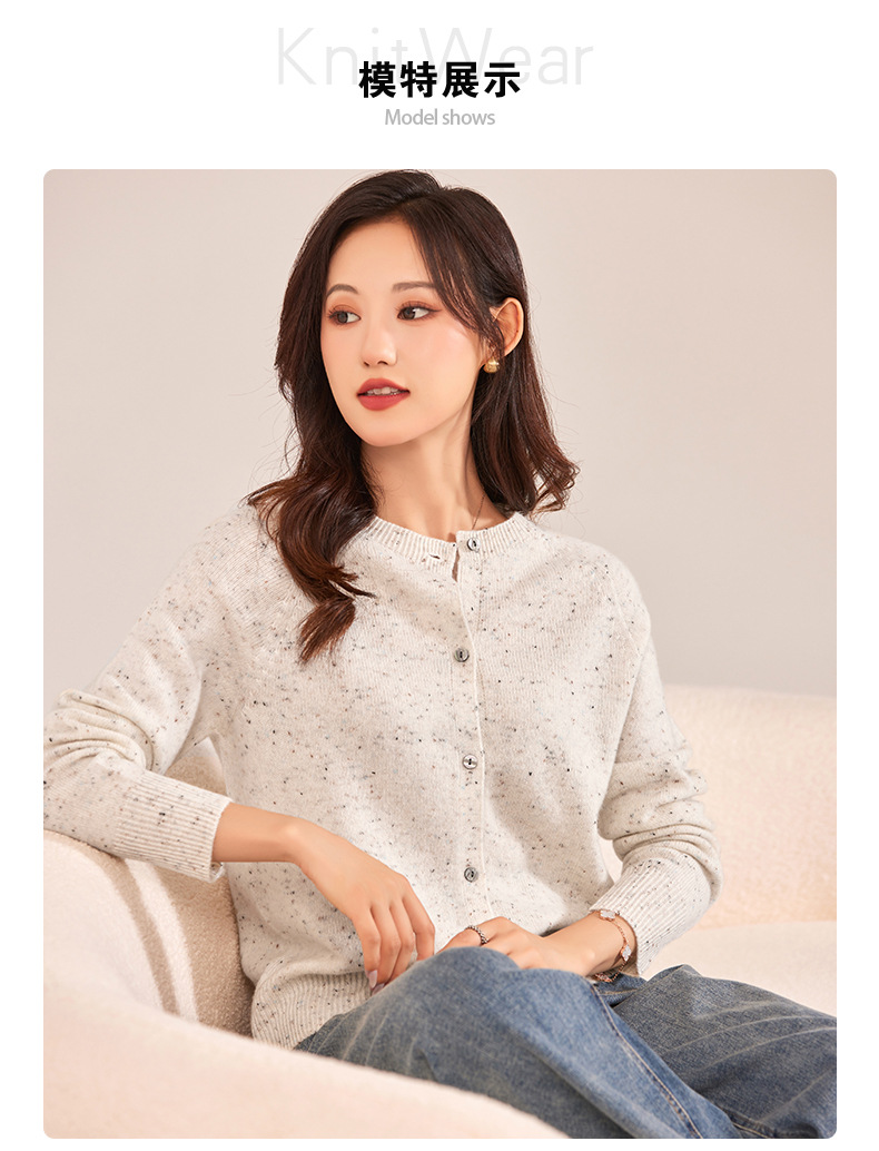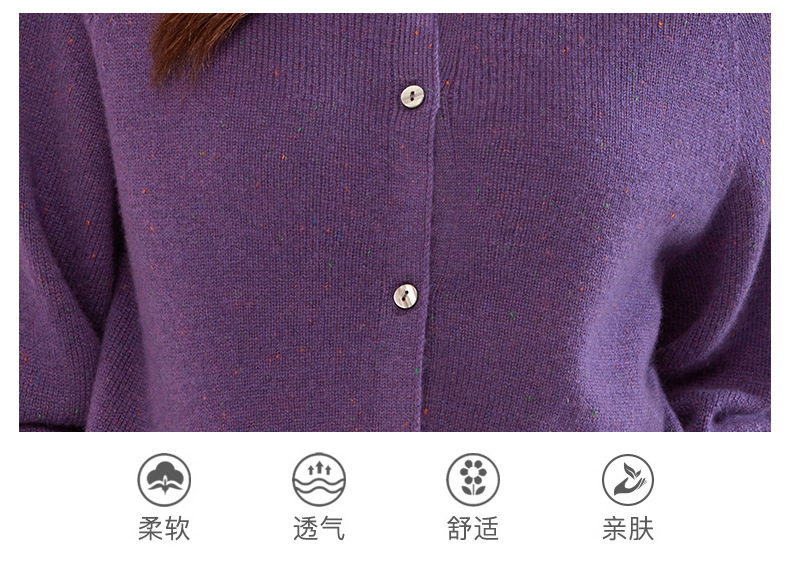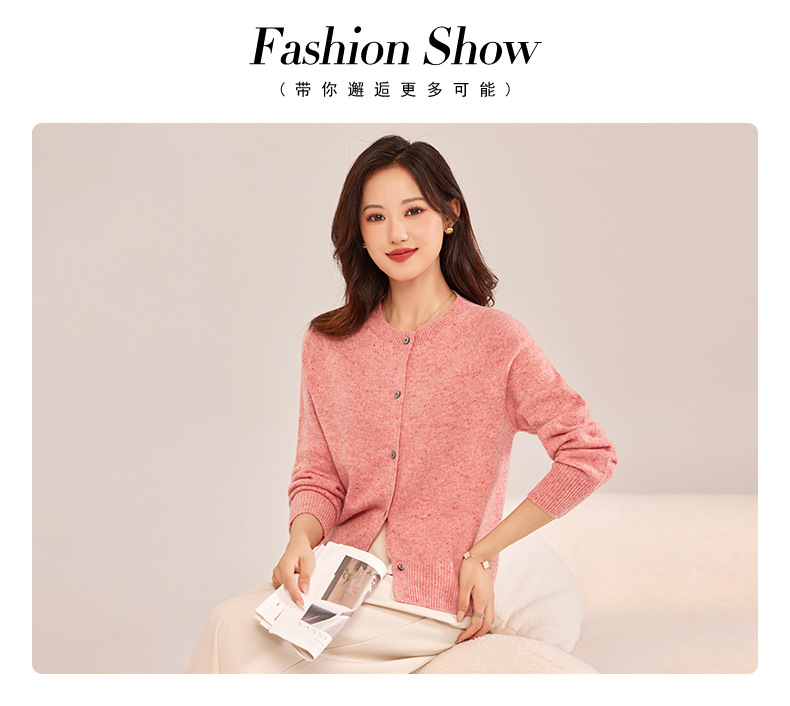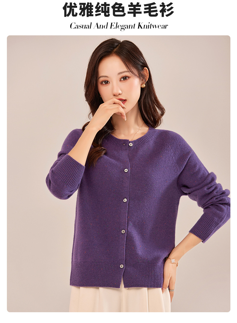 秋冬宽松大码针织开衫,无缝一体点子纱100纯羊毛衫女圆领毛衣外套CC-5831