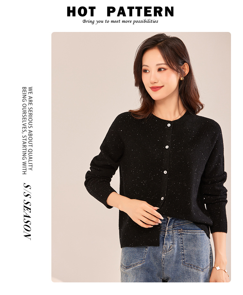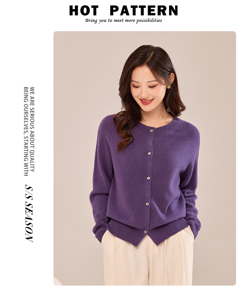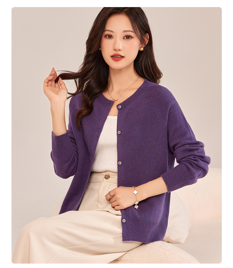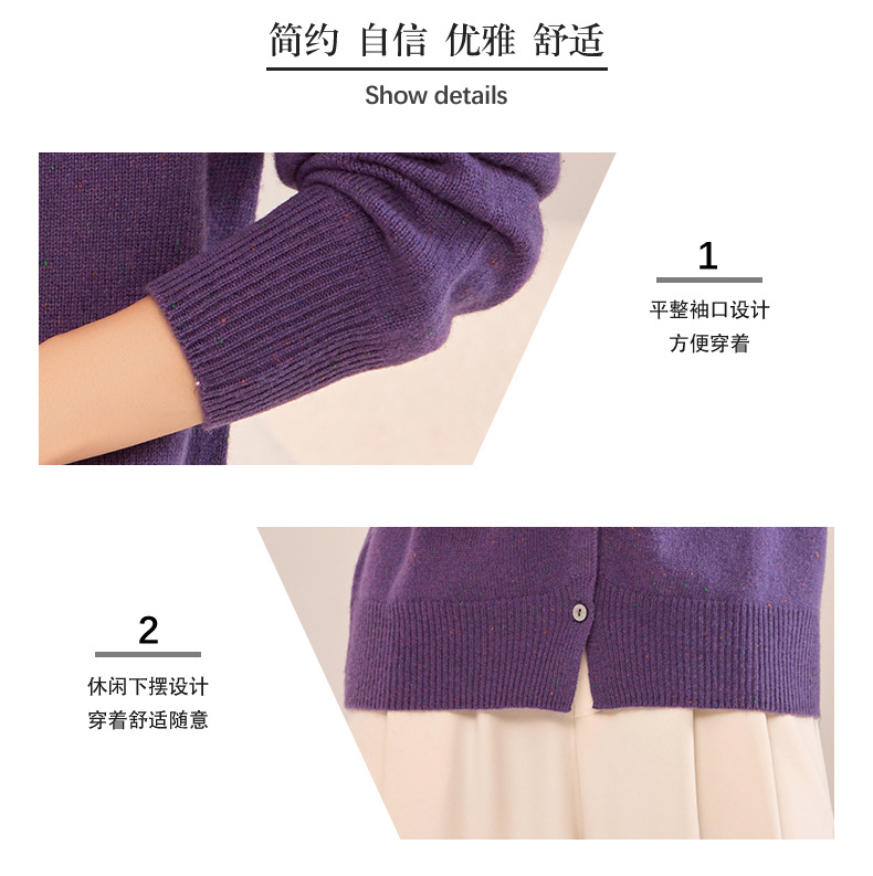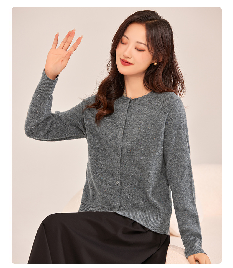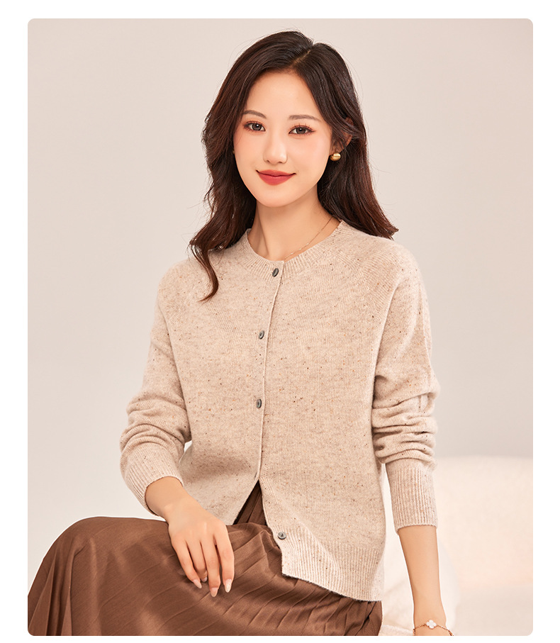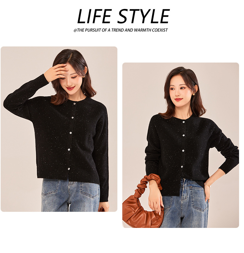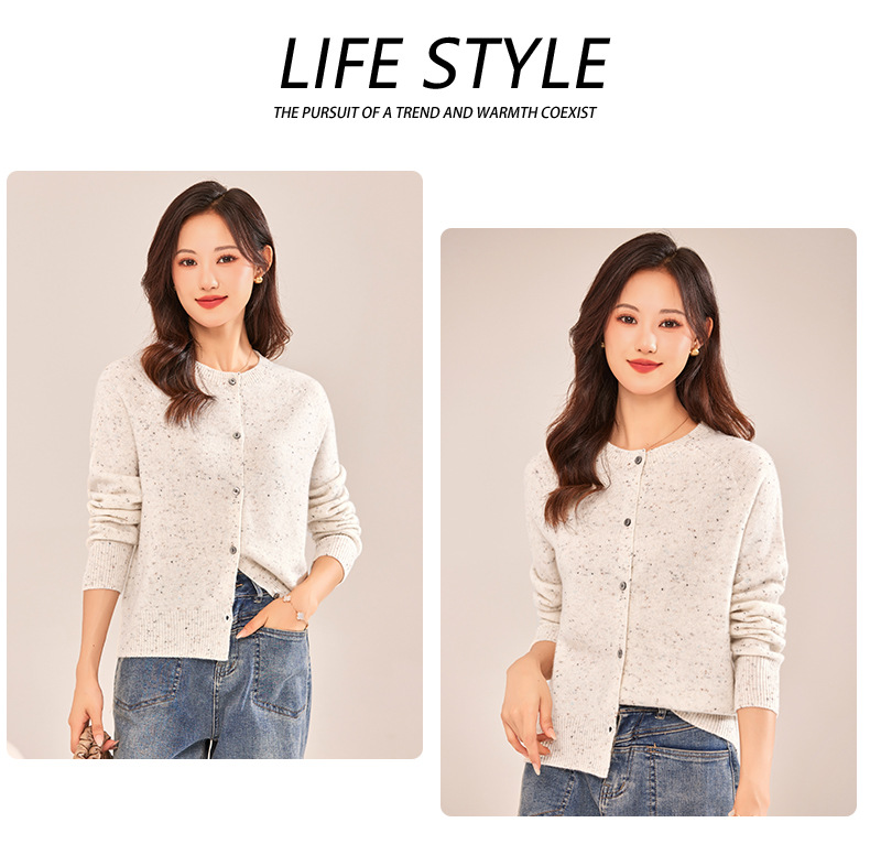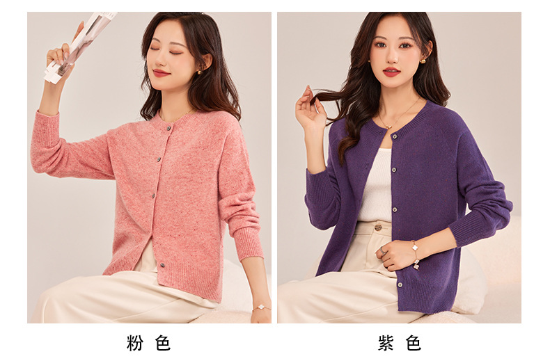 秋冬宽松大码针织开衫,无缝一体点子纱100纯羊毛衫女圆领毛衣外套CC-5831