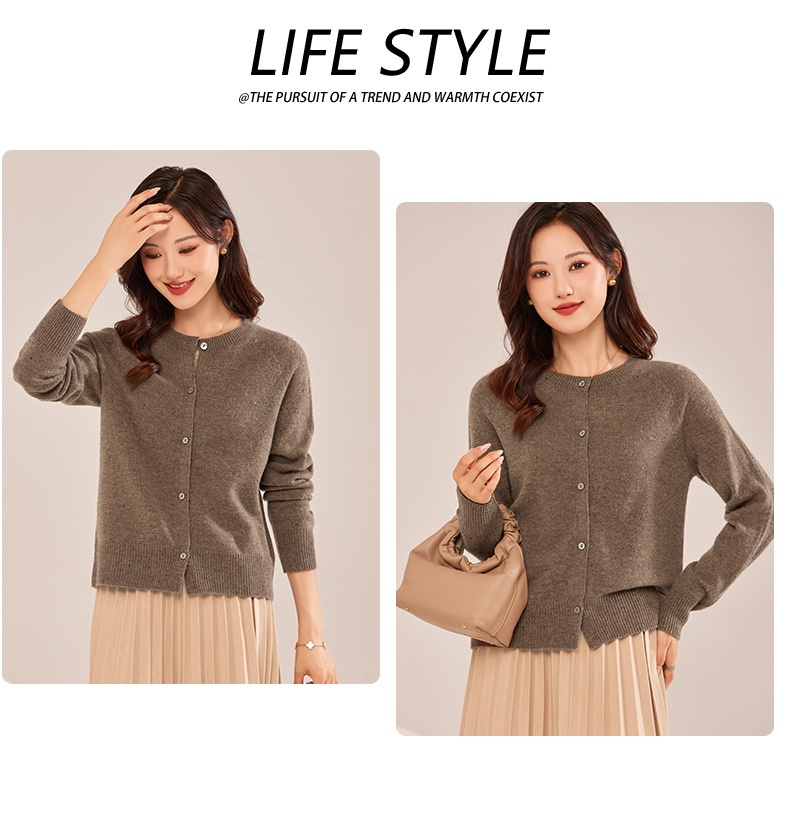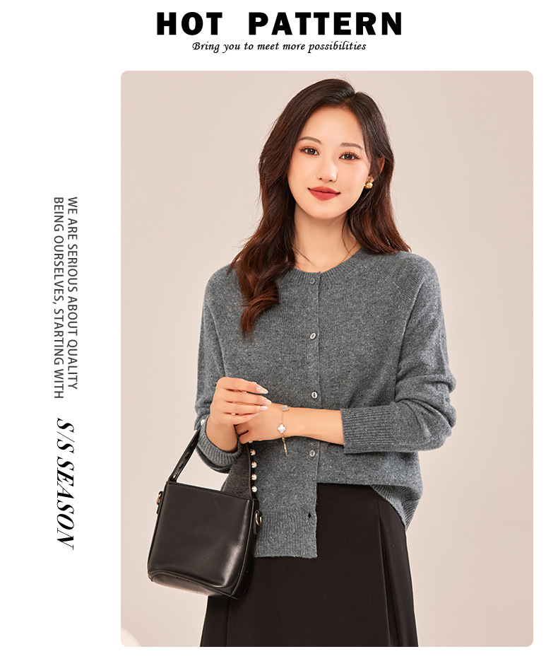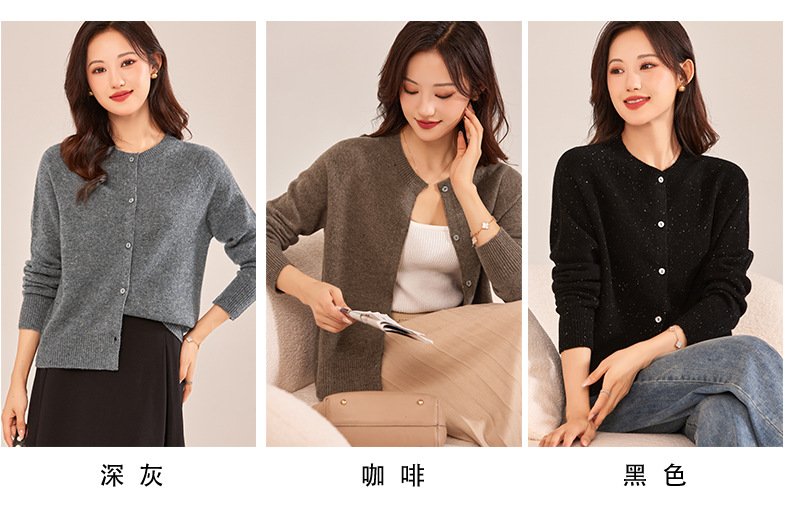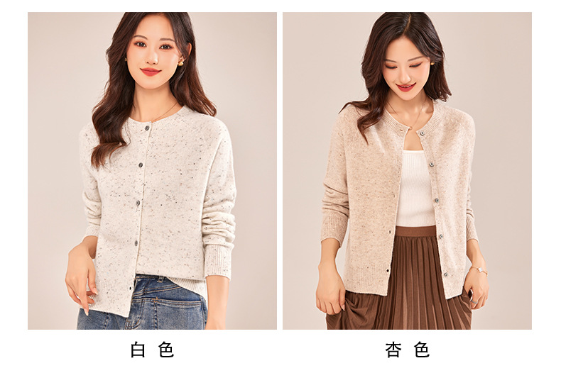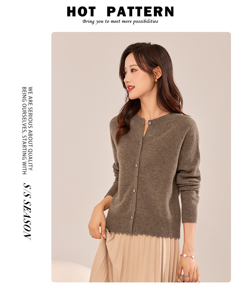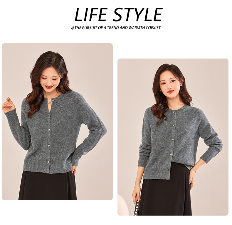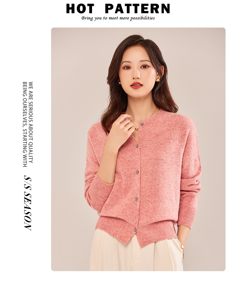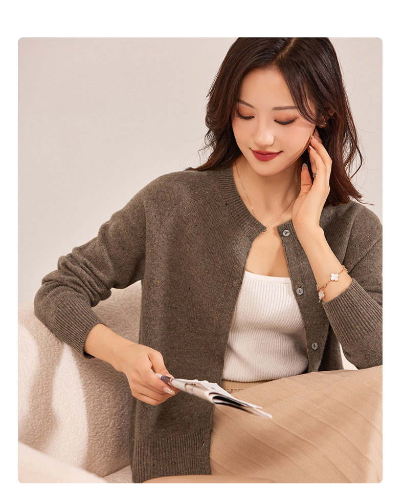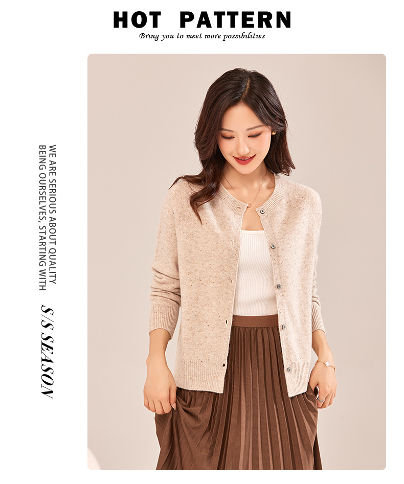 秋冬宽松大码针织开衫,无缝一体点子纱100纯羊毛衫女圆领毛衣外套CC-5831