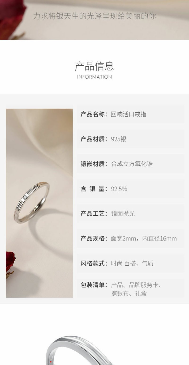 Winy925纯银回响活口戒指送女友闺蜜节日生日礼物