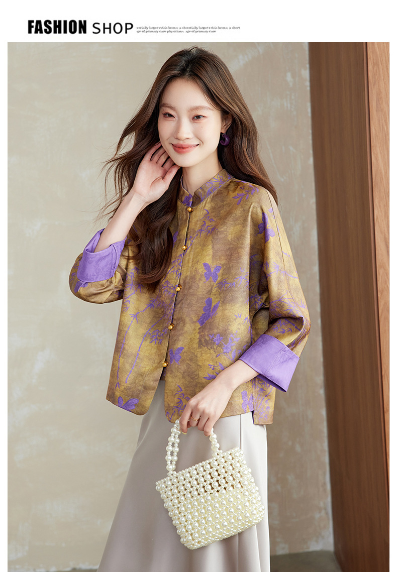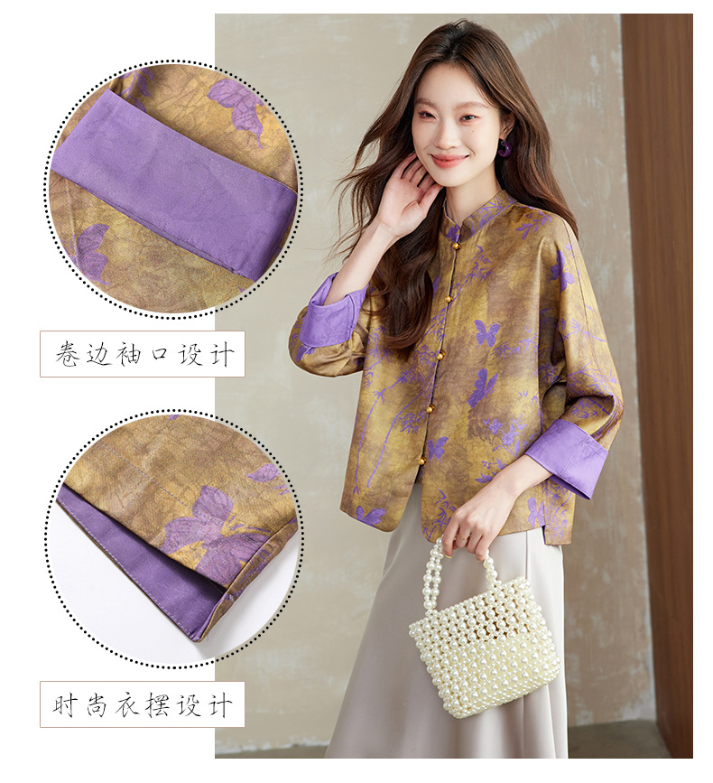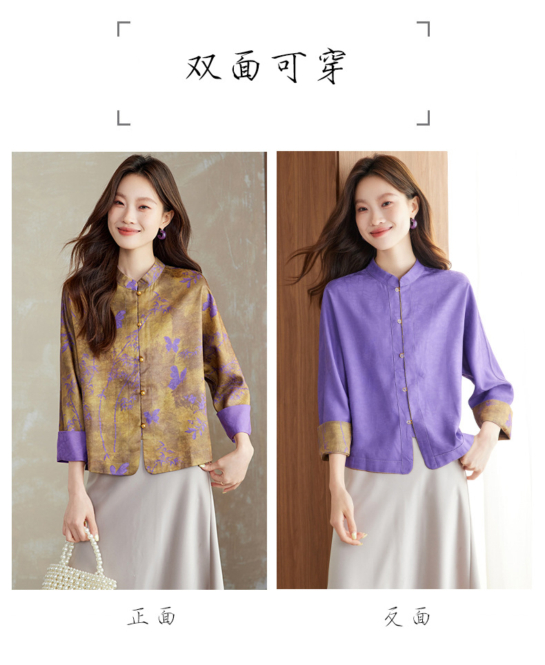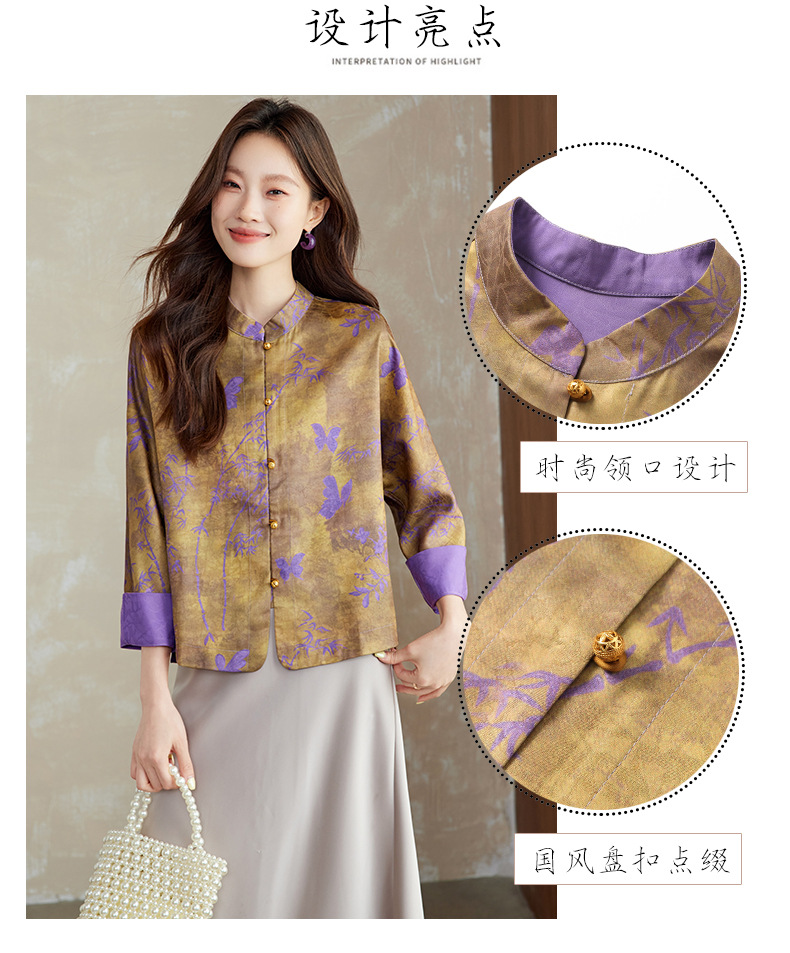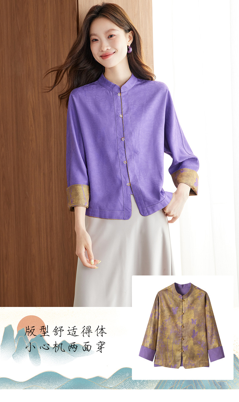 百媚生 新中式上衣唐装女装小衫宋锦盘扣薄款外套6076 商品图1