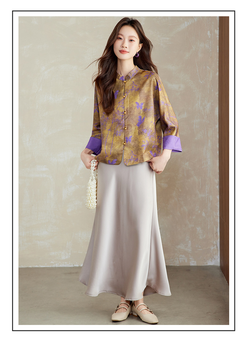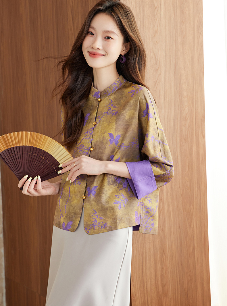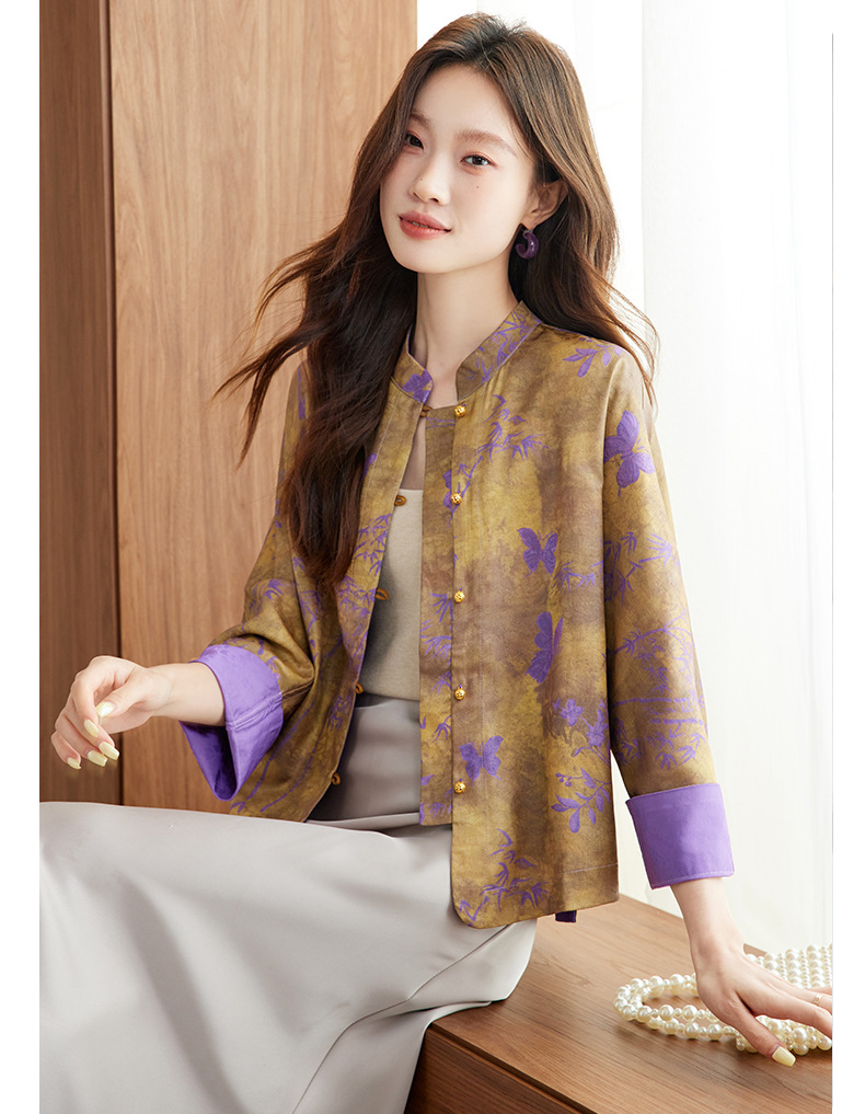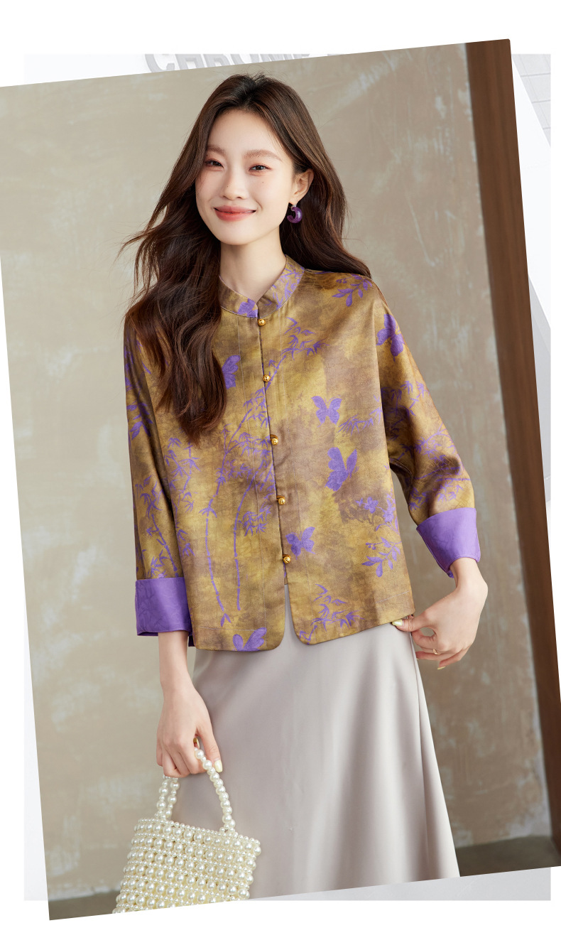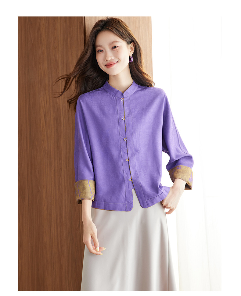 百媚生 新中式上衣唐装女装小衫宋锦盘扣薄款外套6076 商品图1