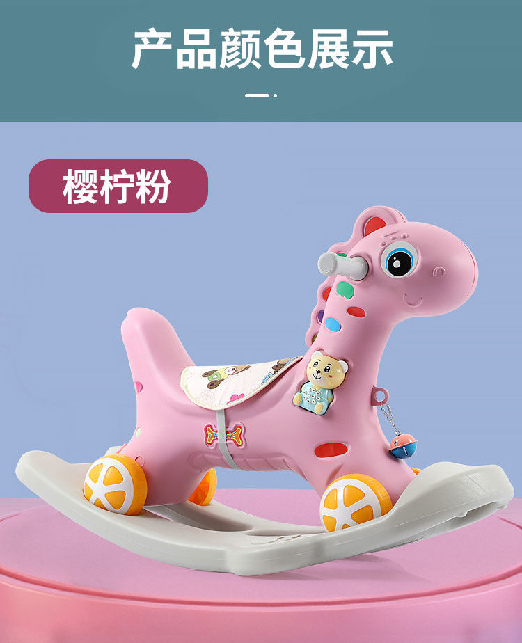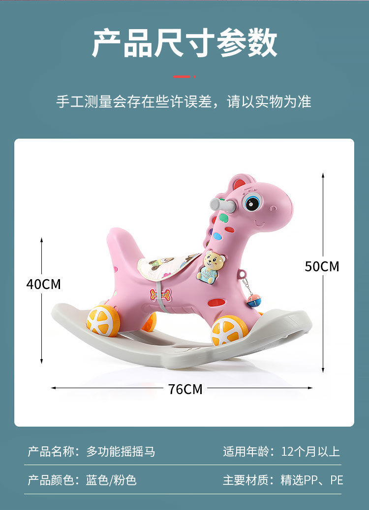 儿童大号木马 1-5岁宝宝生日礼物玩具摇摇车大号两用带音乐摇摇马-W仓