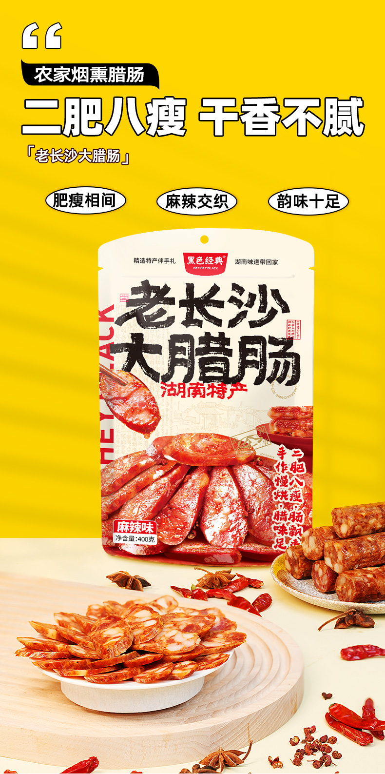 【周三会员日限时折扣】黑色经典老长沙大腊肠400g/袋