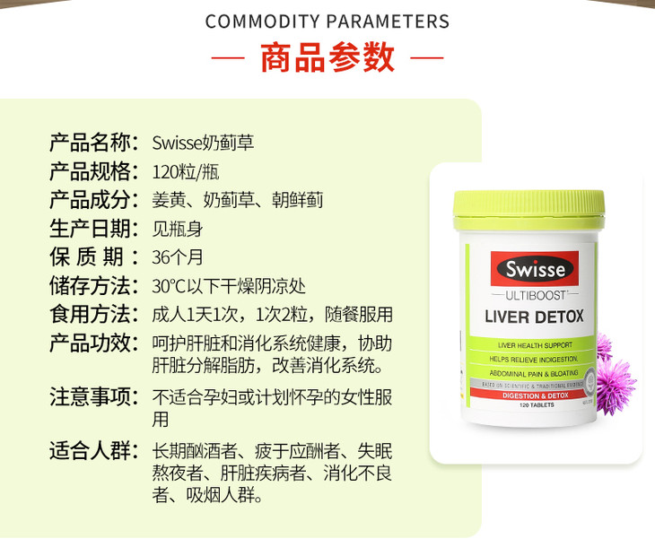 Swisse斯维诗 奶蓟草护肝片120片/瓶 成人养肝护肝 加班熬夜烟酒人士常备