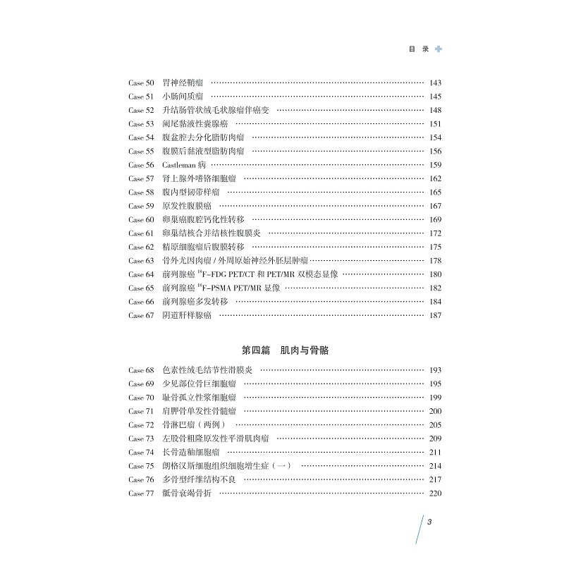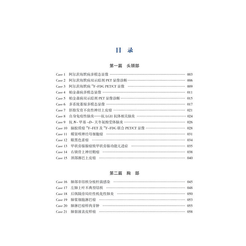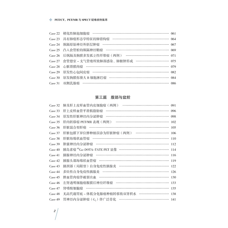 本书精选了近几年浙江省内外多家医院的部分PET/CT、PET/MR与SPECT疑难病例并予以解析总结, 尤其是PET/MR,是目前分子影像最前沿的研究方向和临床先进技术。每个病例临床资料完整,图像清晰,描述准确,诊断分析思路逻辑性强,对临床医务人员提高核医学疑难病例精确诊断水平以及对核医学疑难病例的综合分析能力大有裨益。本书所选疾病几乎涵盖身体所有部位和器官系统的肿瘤,还有少量心脏、感染和炎症及神经系统疾病。通过这些病例如实地介绍了疾病的发生、发展过程及其在核医学显像中的表现。