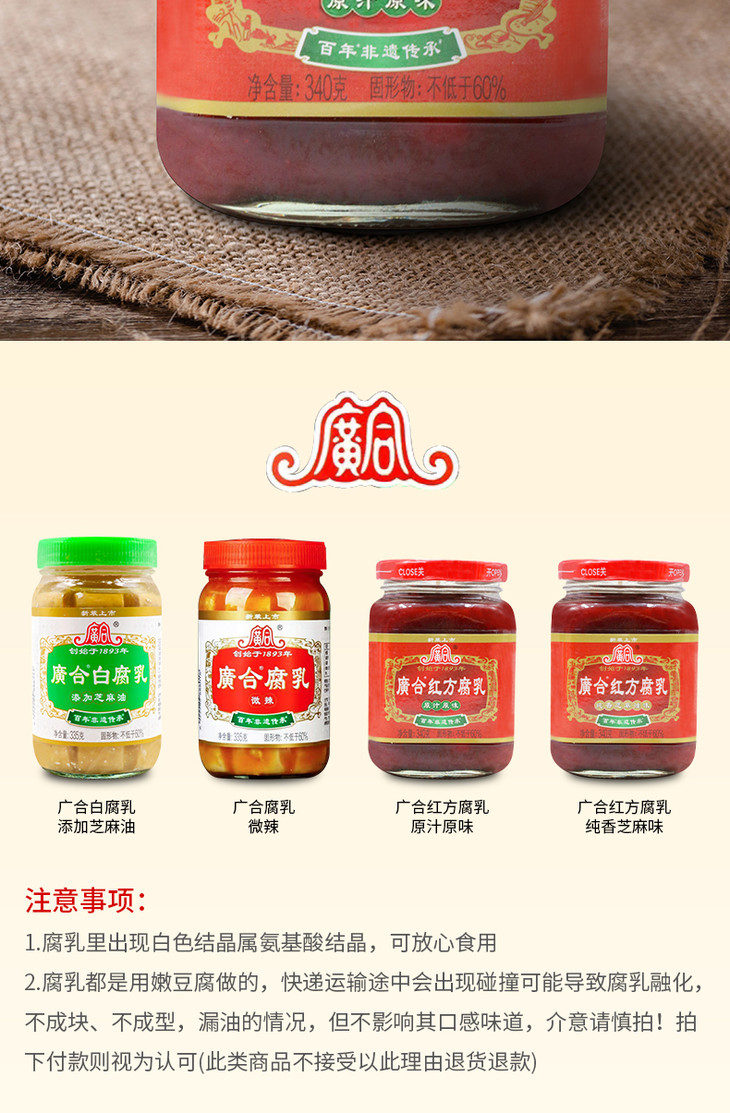 340g广合红方腐乳(原汁原味) 黄豆精酿 口感丰富