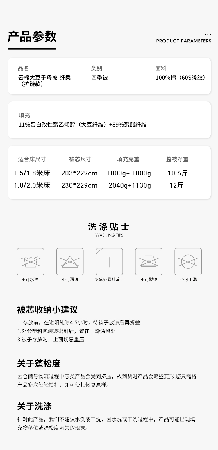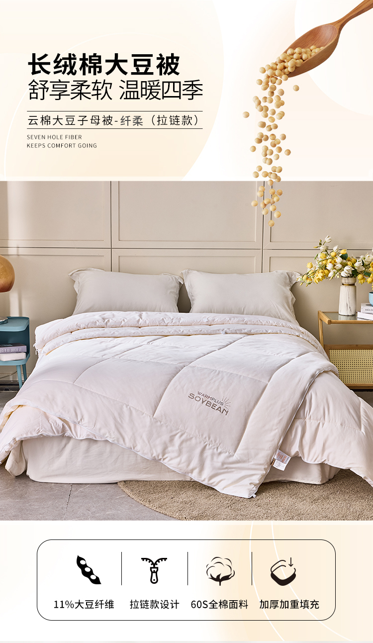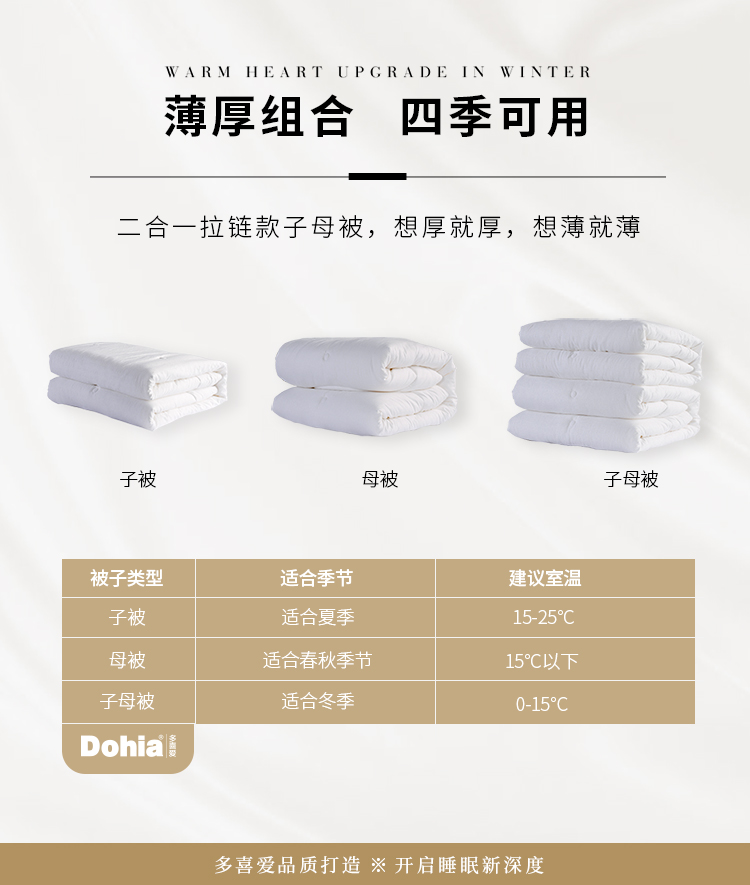 【会员礼】多喜爱 云棉大豆拉链款子母被-纤柔 【全棉面料】【60S缎纹】【大豆纤维】【拉链设计】提花工艺 精美烫钻 分区绗缝 不跑绵 蓬松保暖 加厚填充